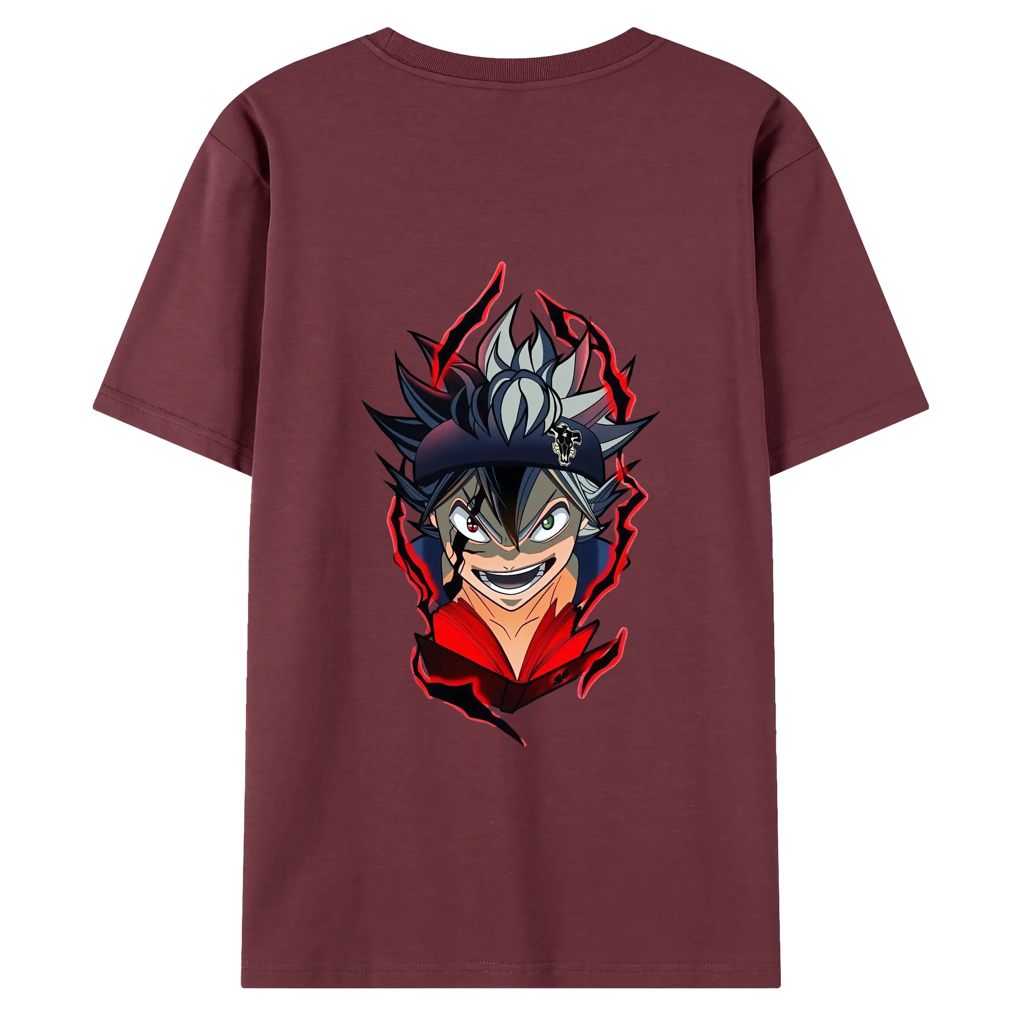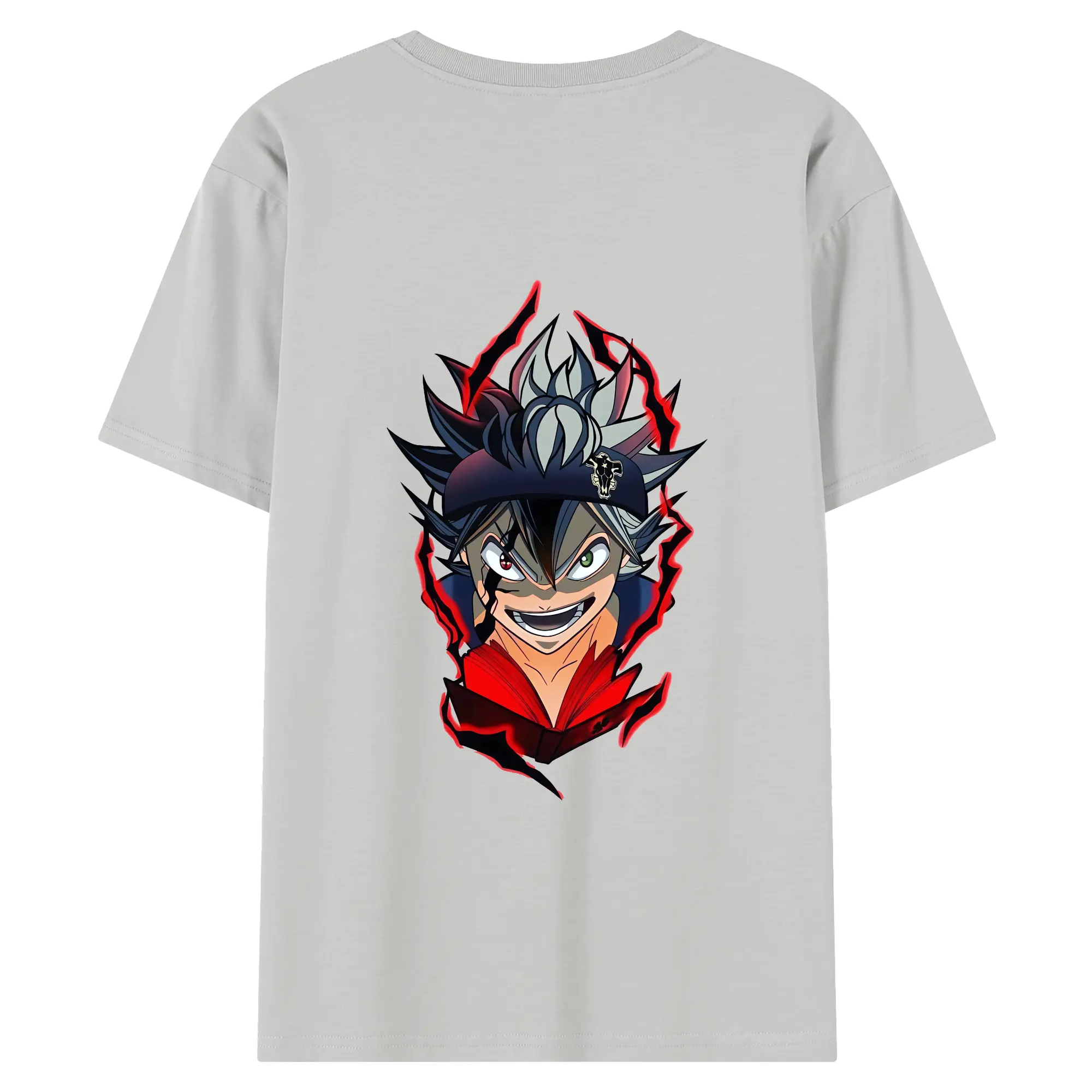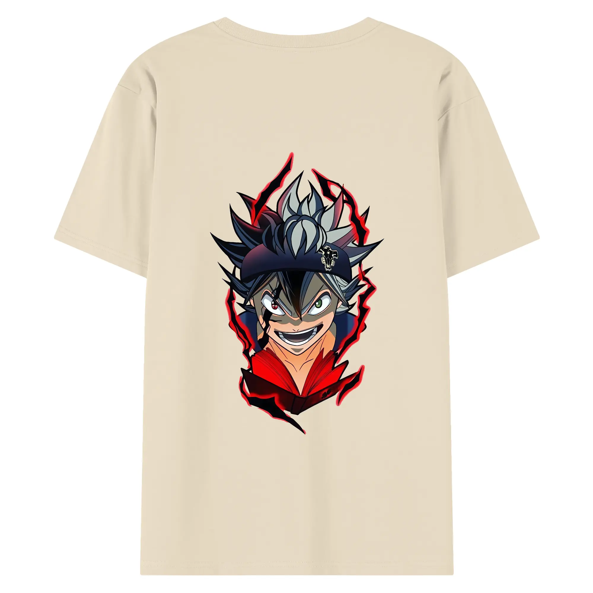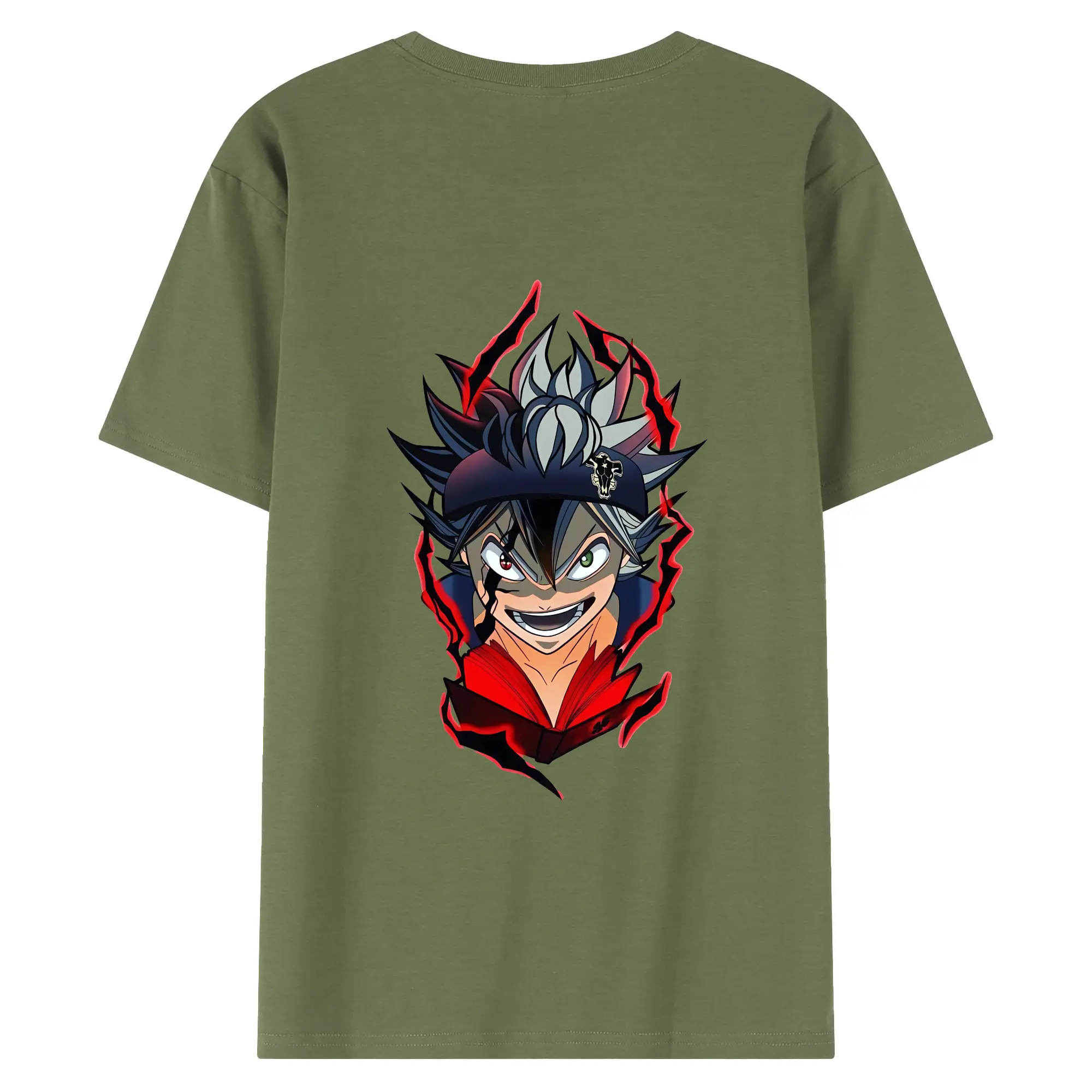 ブラッククローバー グッズ アスタ - 綿100% ヴィンテージ風 半袖Tシャツ ・ 背面プリント ・ 柔らか肌触り ・ 通気性 快適 ・ スポーツ カジュアル 外出用