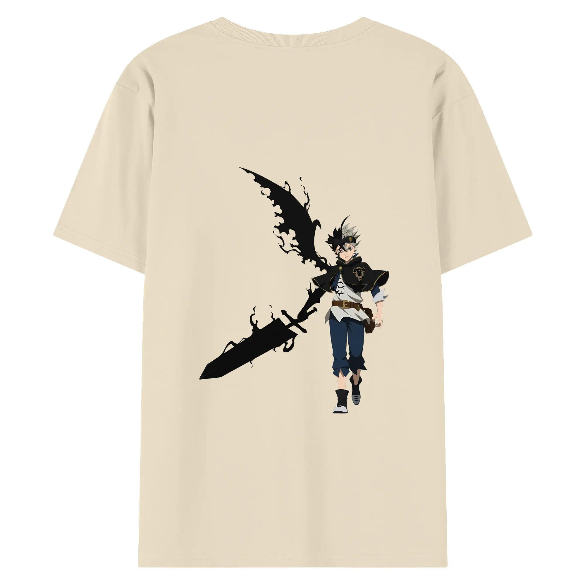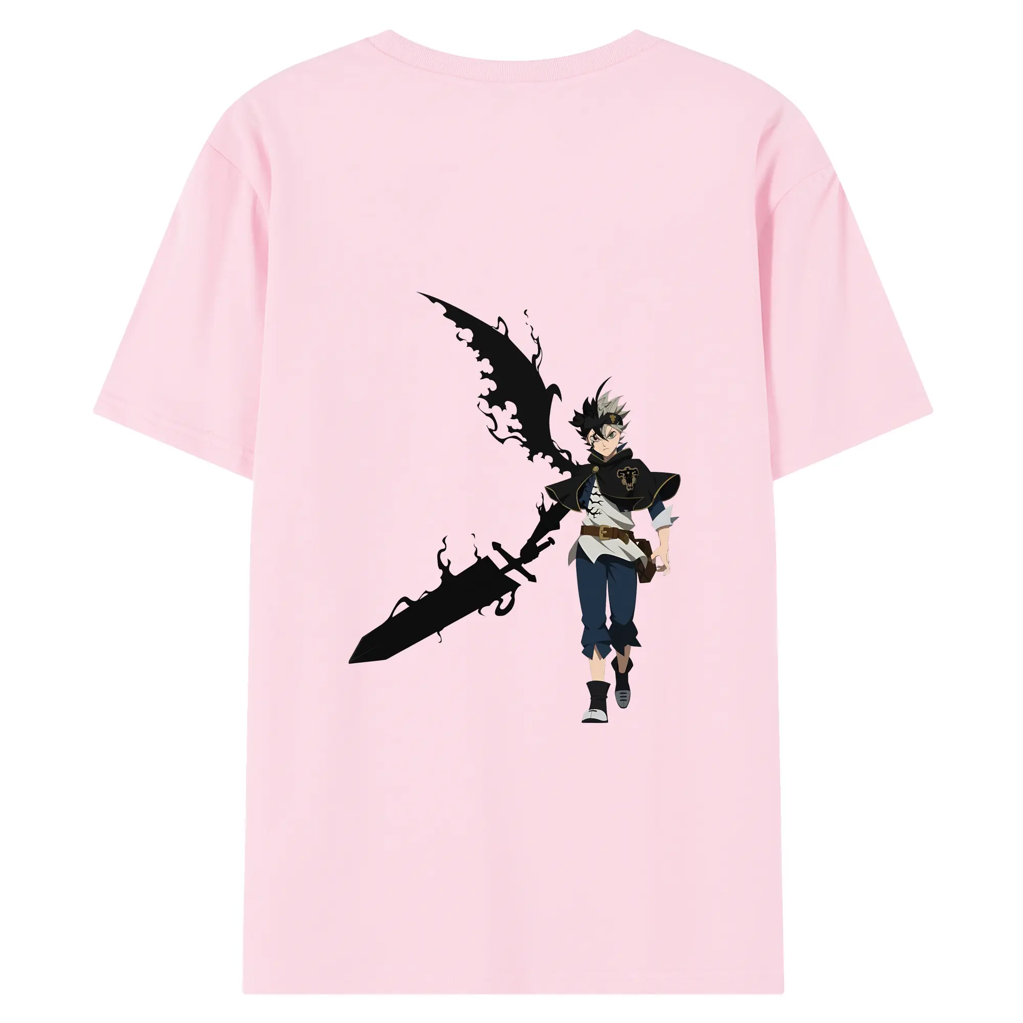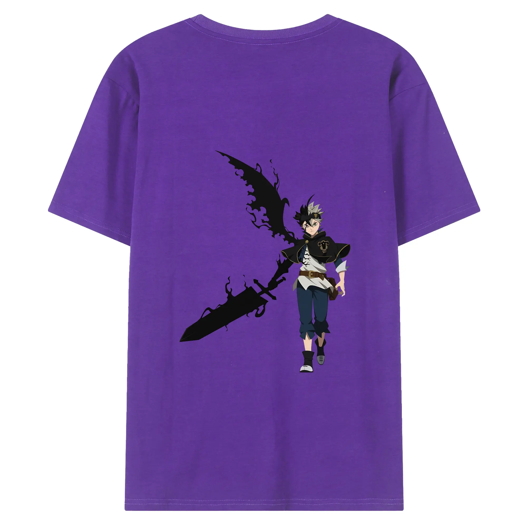ブラッククローバー グッズ アスタ - 綿100% ヴィンテージ風 半袖Tシャツ ・ 背面プリント ・ 柔らか肌触り ・ 通気性 快適 ・ スポーツ カジュアル 外出用