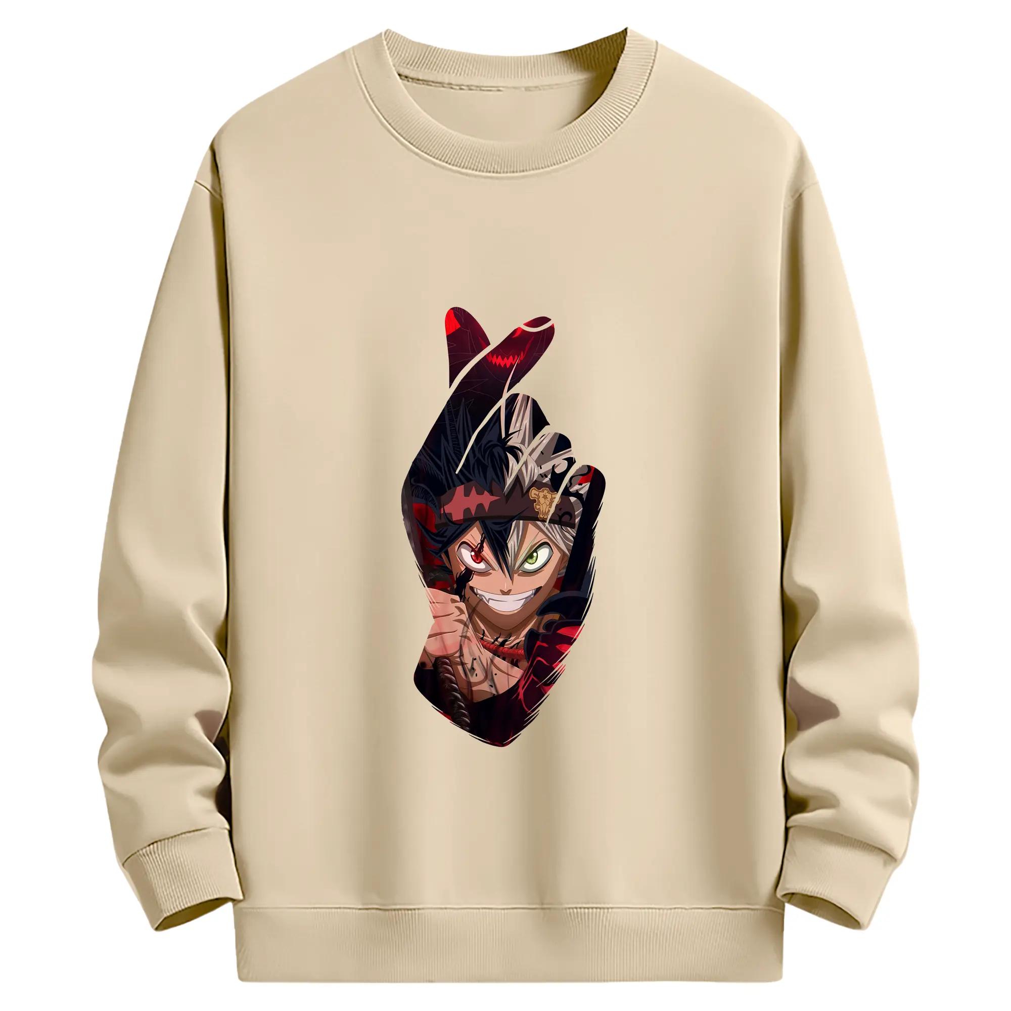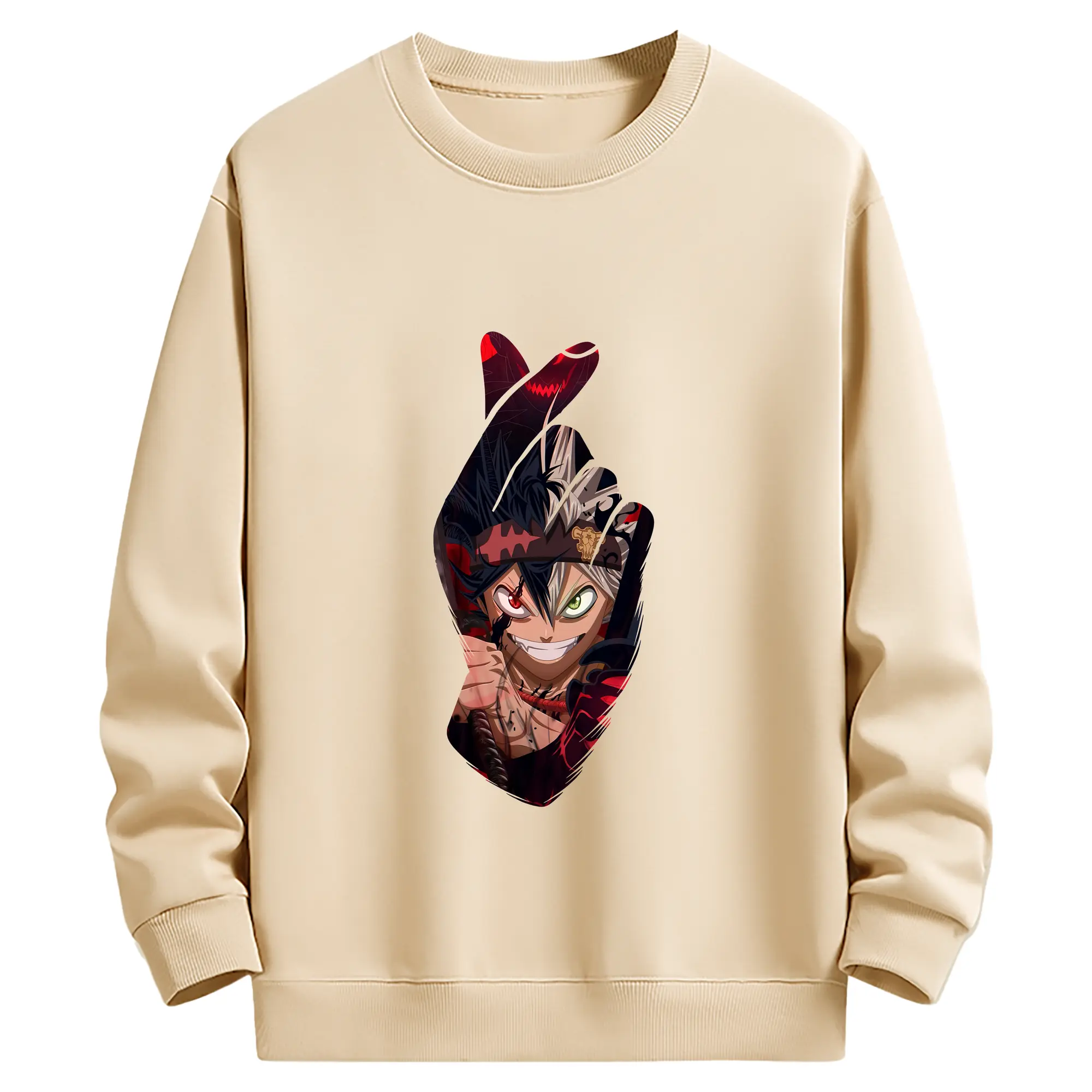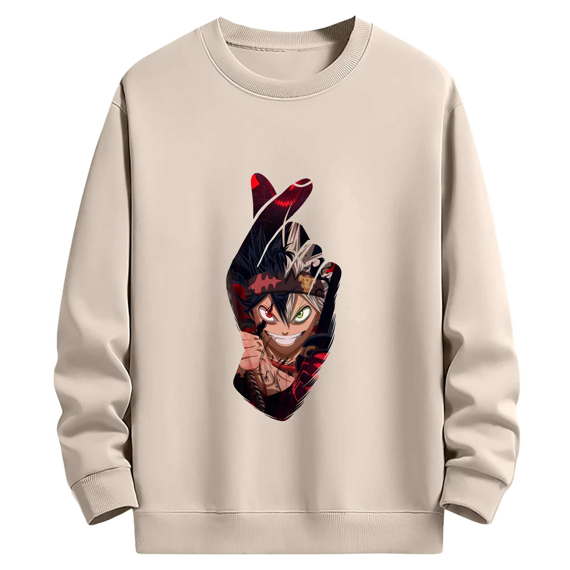 ブラッククローバー グッズ アスタ - 薄手 クルーネック スウェット 裏毛260g · ポリエステル 春秋向け カジュアル 男女兼用 · トレーナー デイリー スポーツ 散歩に最適
