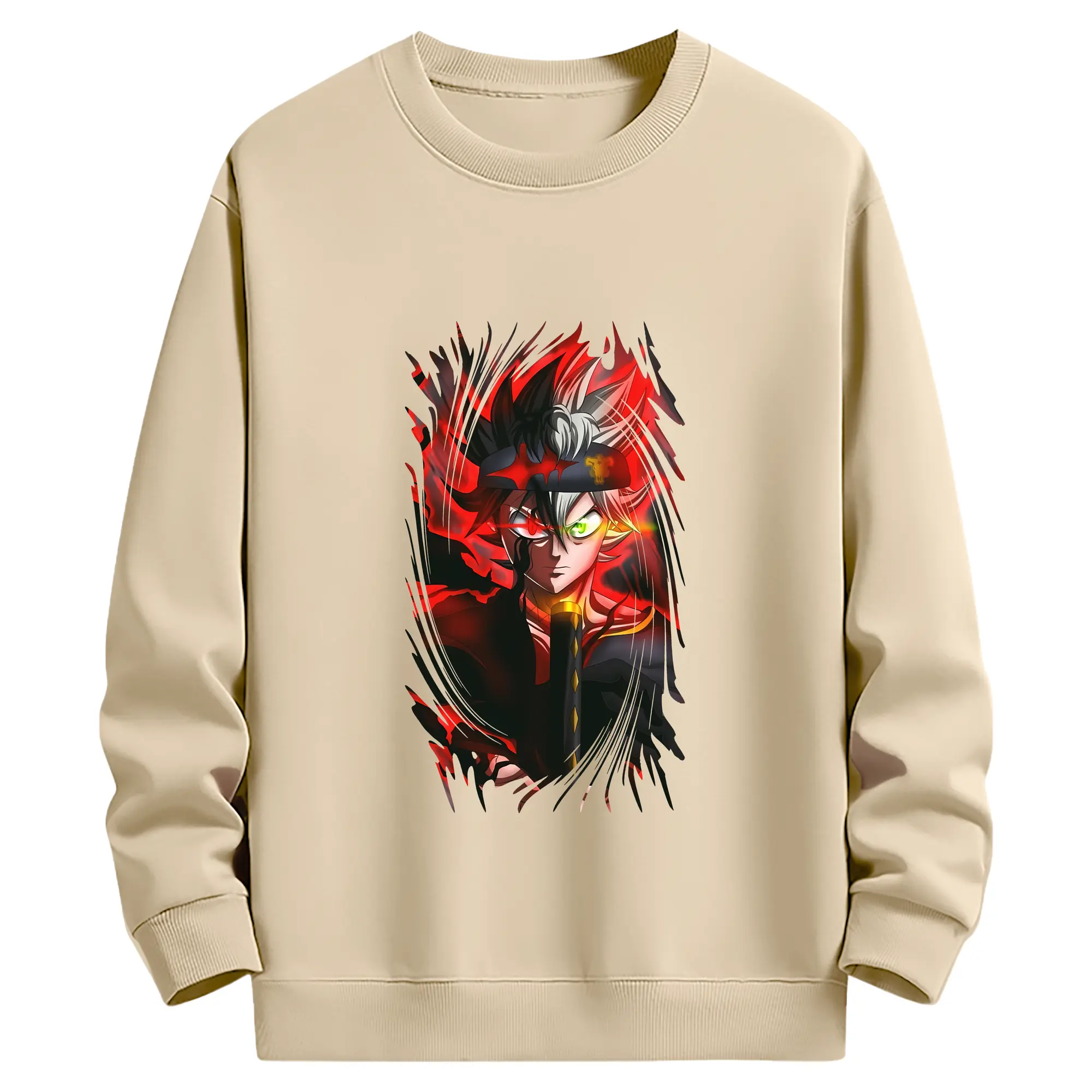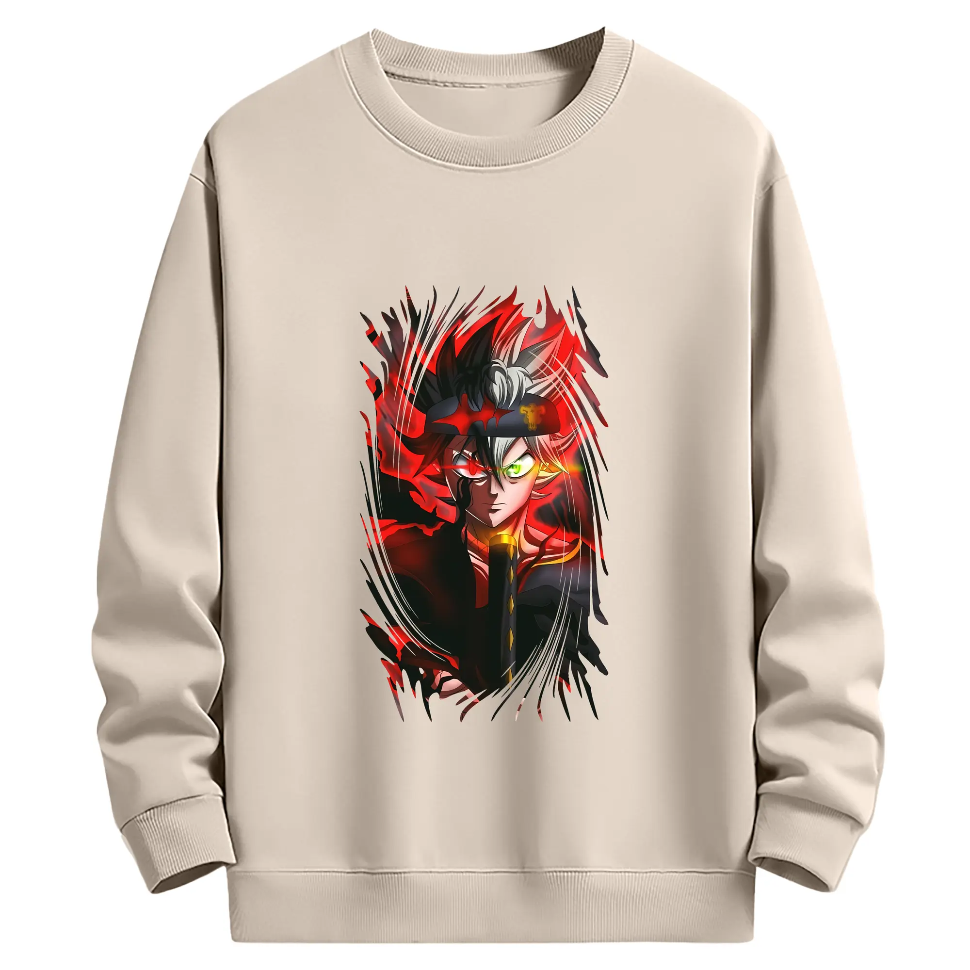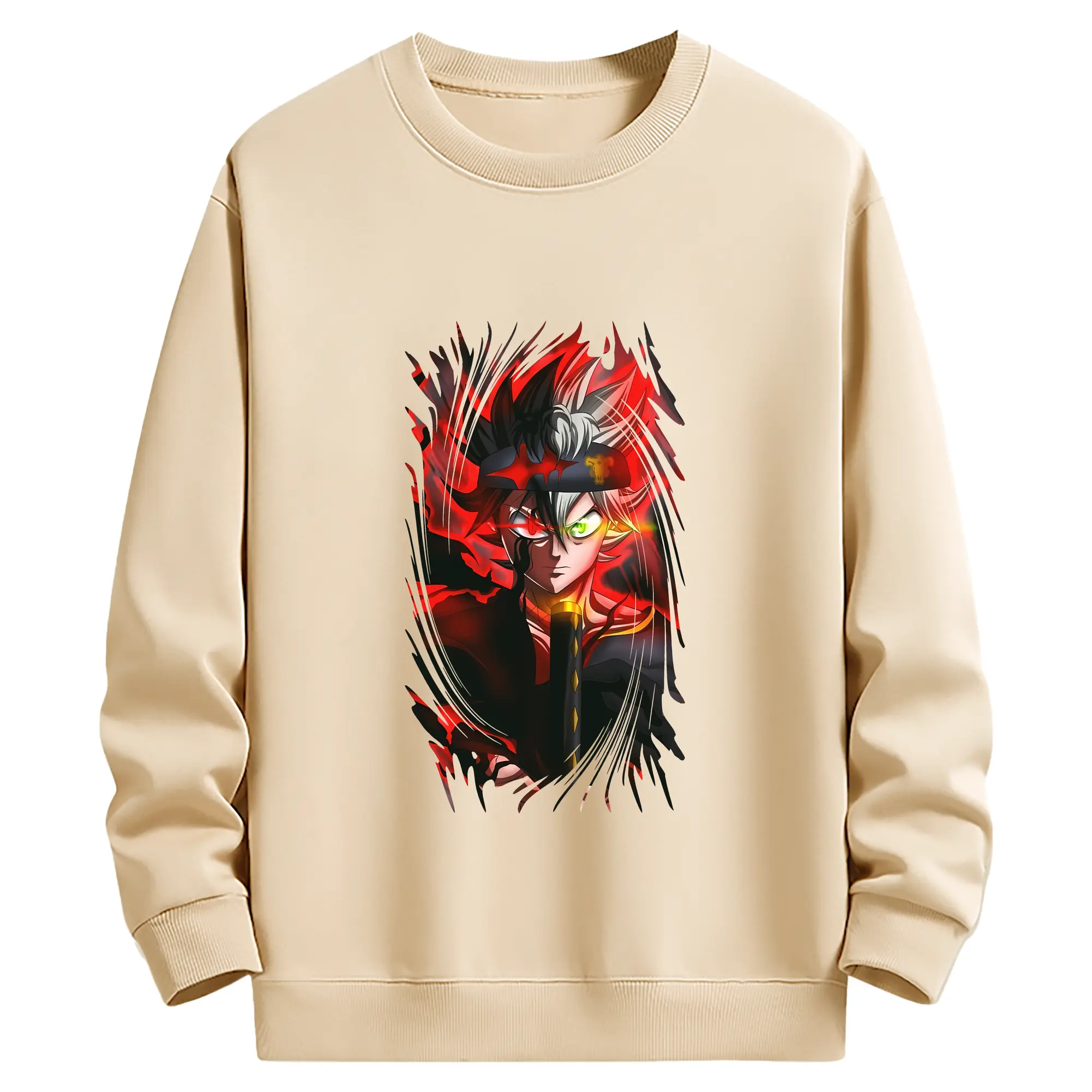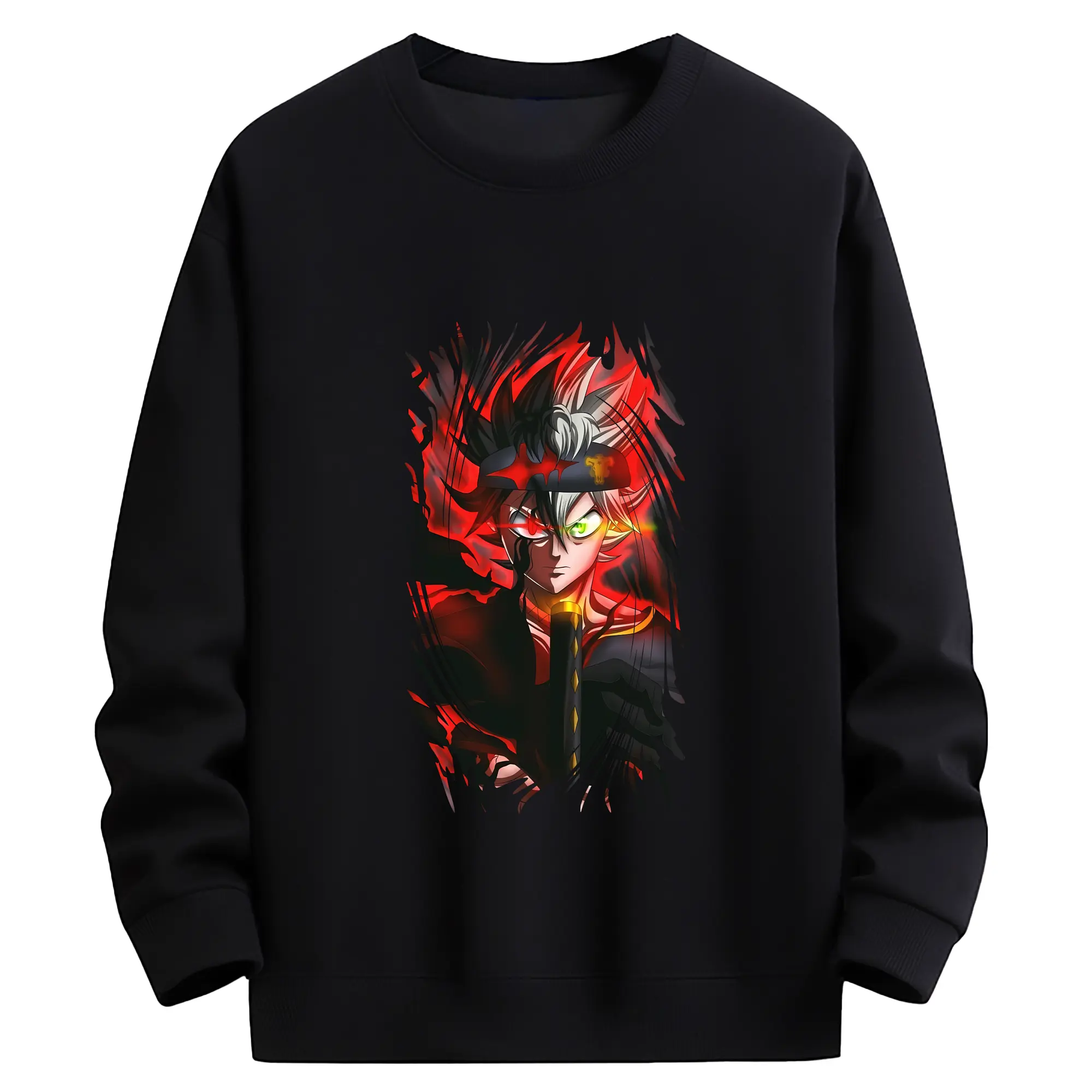 ブラッククローバー グッズ アスタ - 薄手 クルーネック スウェット 裏毛260g · ポリエステル 春秋向け カジュアル 男女兼用 · トレーナー デイリー スポーツ 散歩に最適