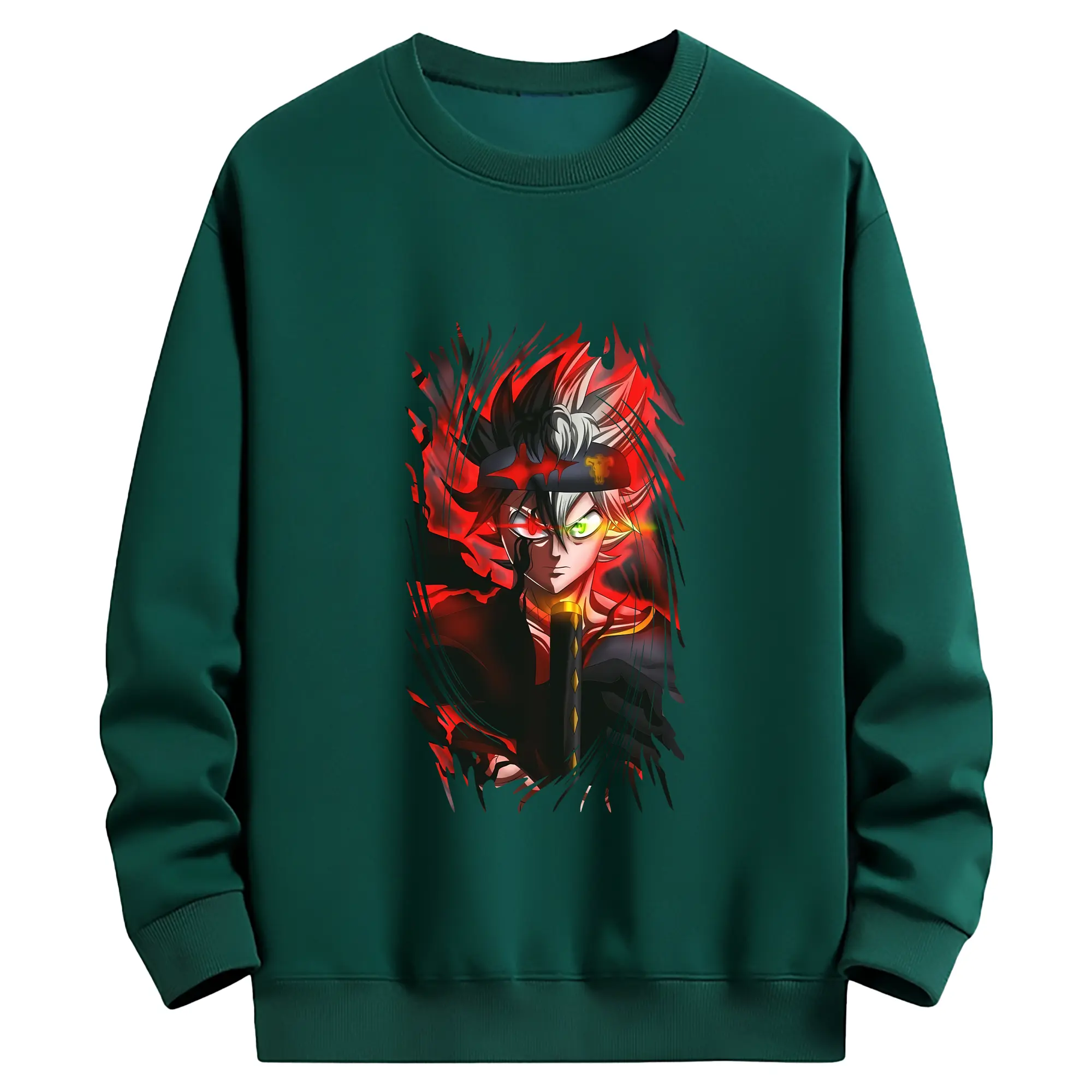 ブラッククローバー グッズ ユノ・グリンベリオール - 高品質 クルーネック スウェット ・ コットン59% ポリエステル41% ・ ユニセックス 長袖 トレーナー ・ カジュアル デイリー スポーツ 散歩用