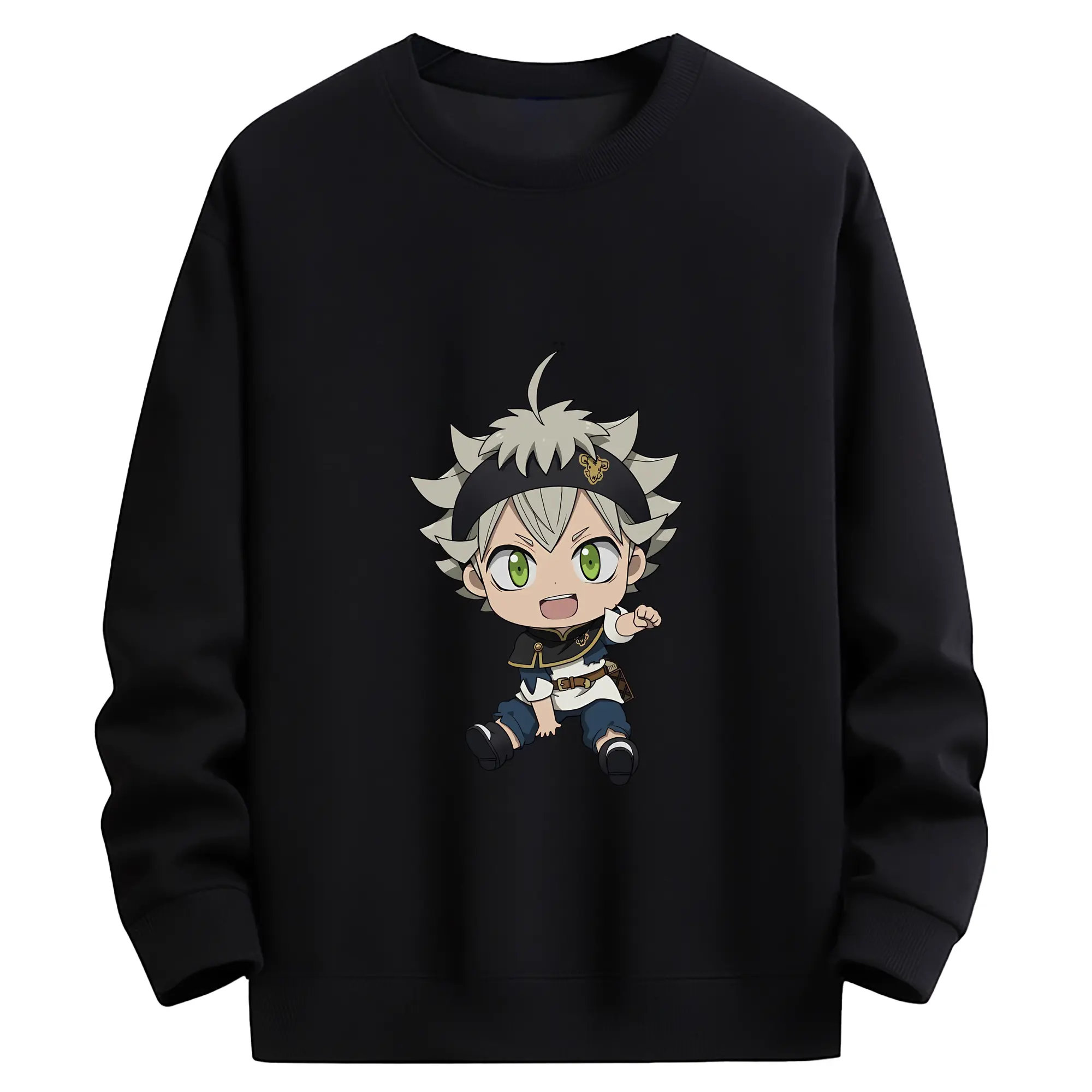 ブラッククローバー グッズ アスタ - キッズ クルーネックスウェットシャツ ・ フロントプリント ・ 綿80% ポリエステル20% ・ 快適 通学 スポーツ 日常使い お散歩用