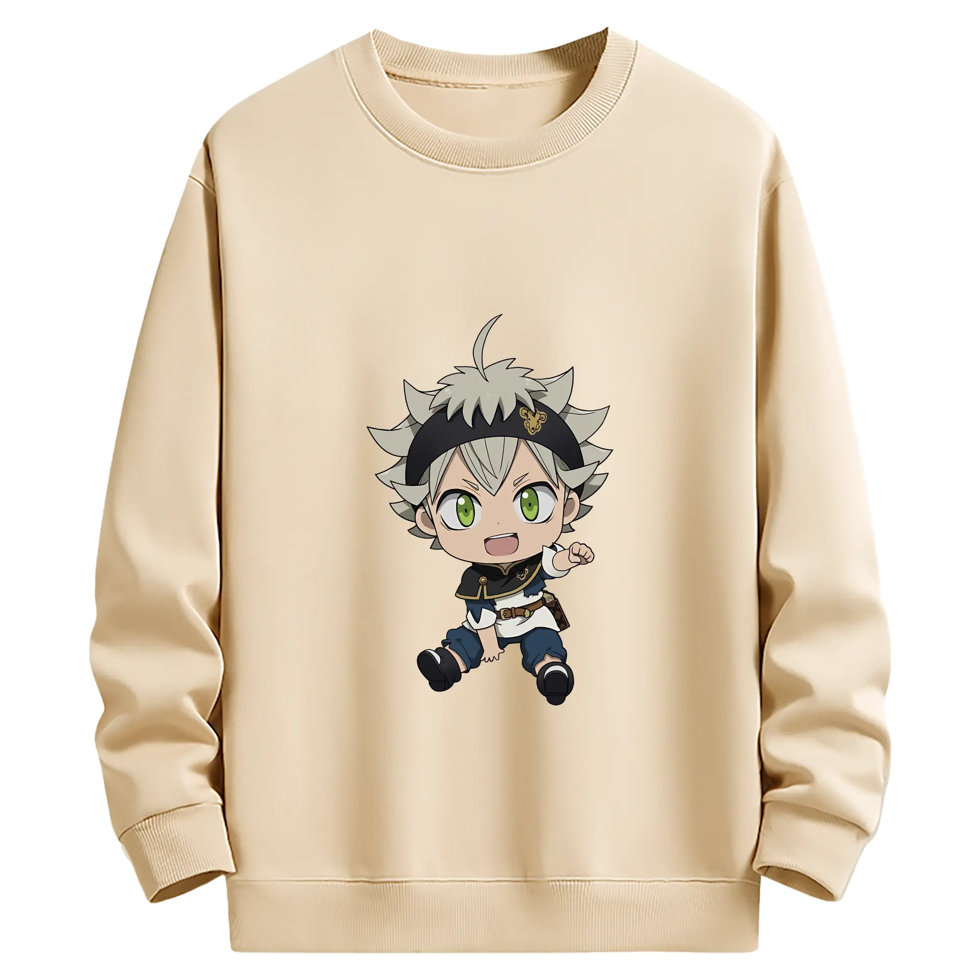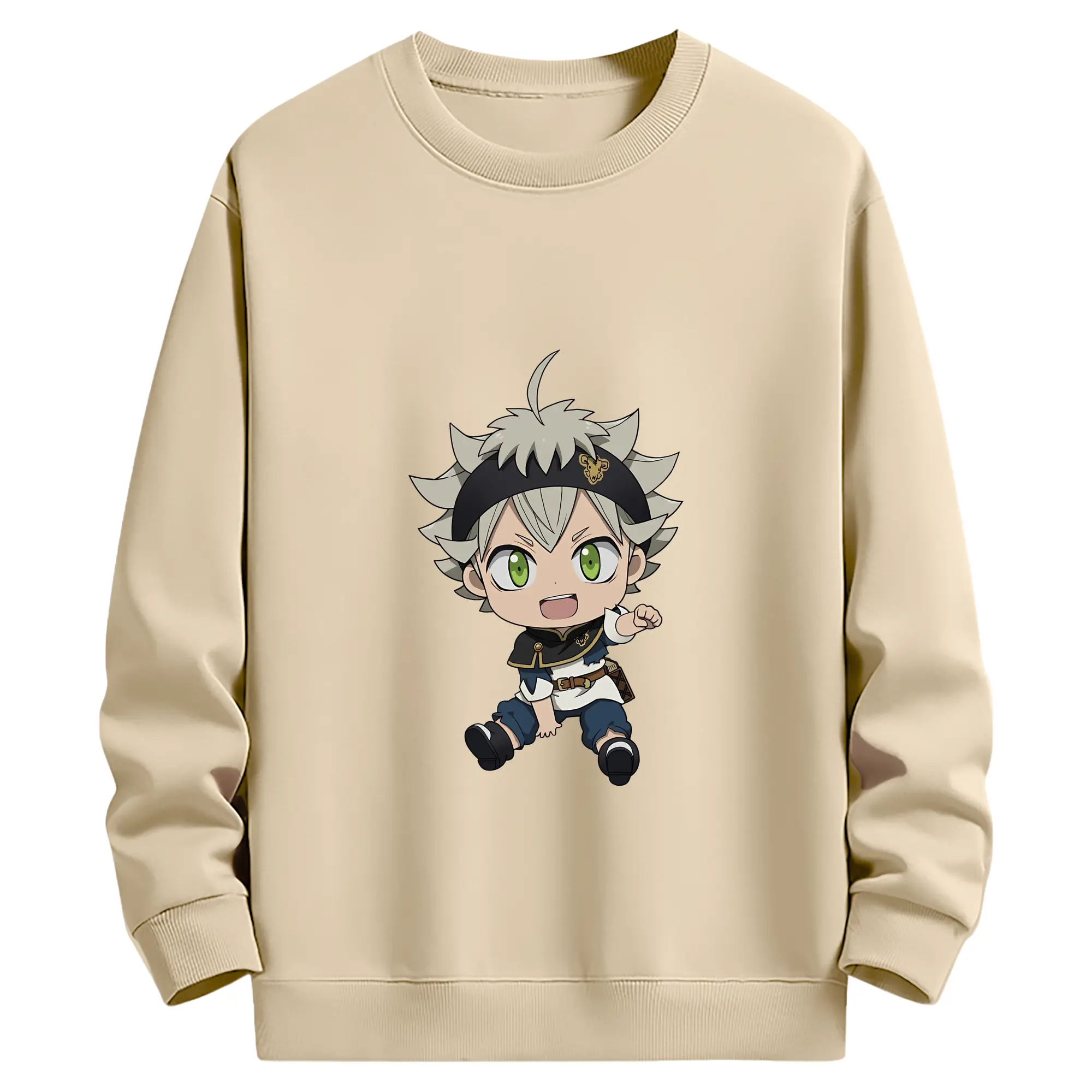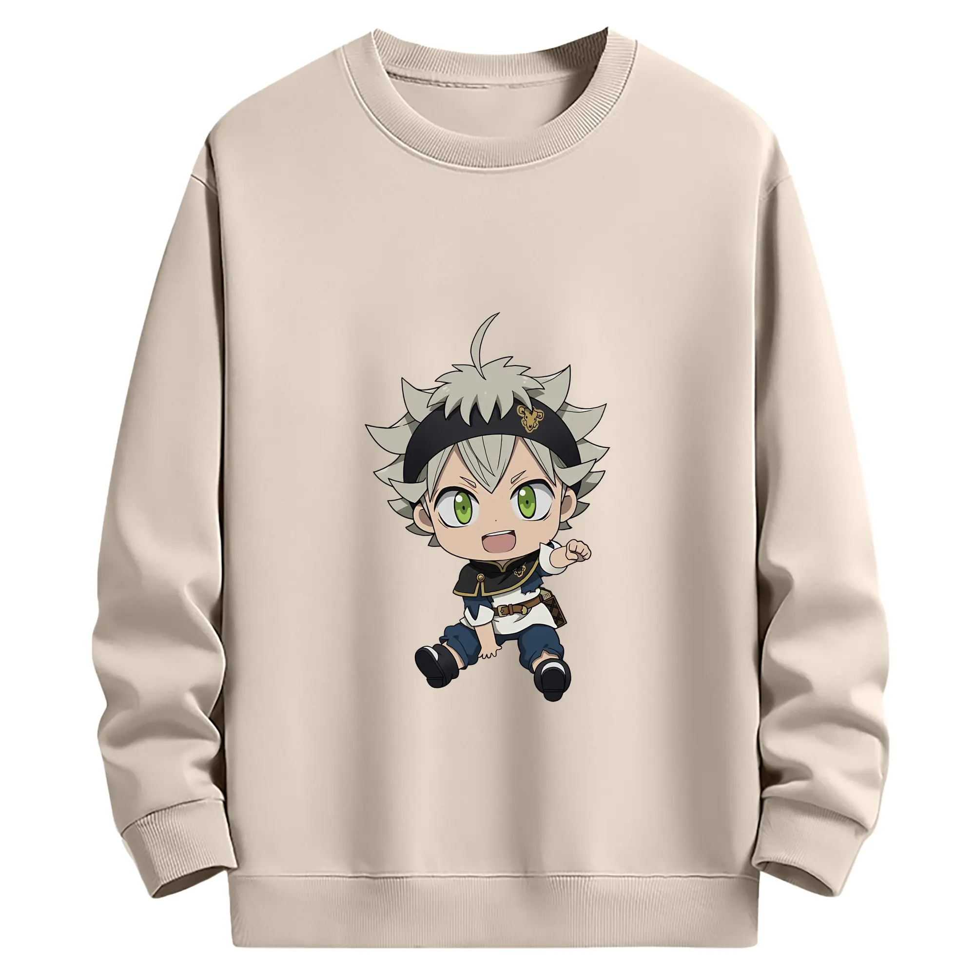 ブラッククローバー グッズ アスタ - 薄手 クルーネック スウェット 裏毛260g · ポリエステル 春秋向け カジュアル 男女兼用 · トレーナー デイリー スポーツ 散歩に最適