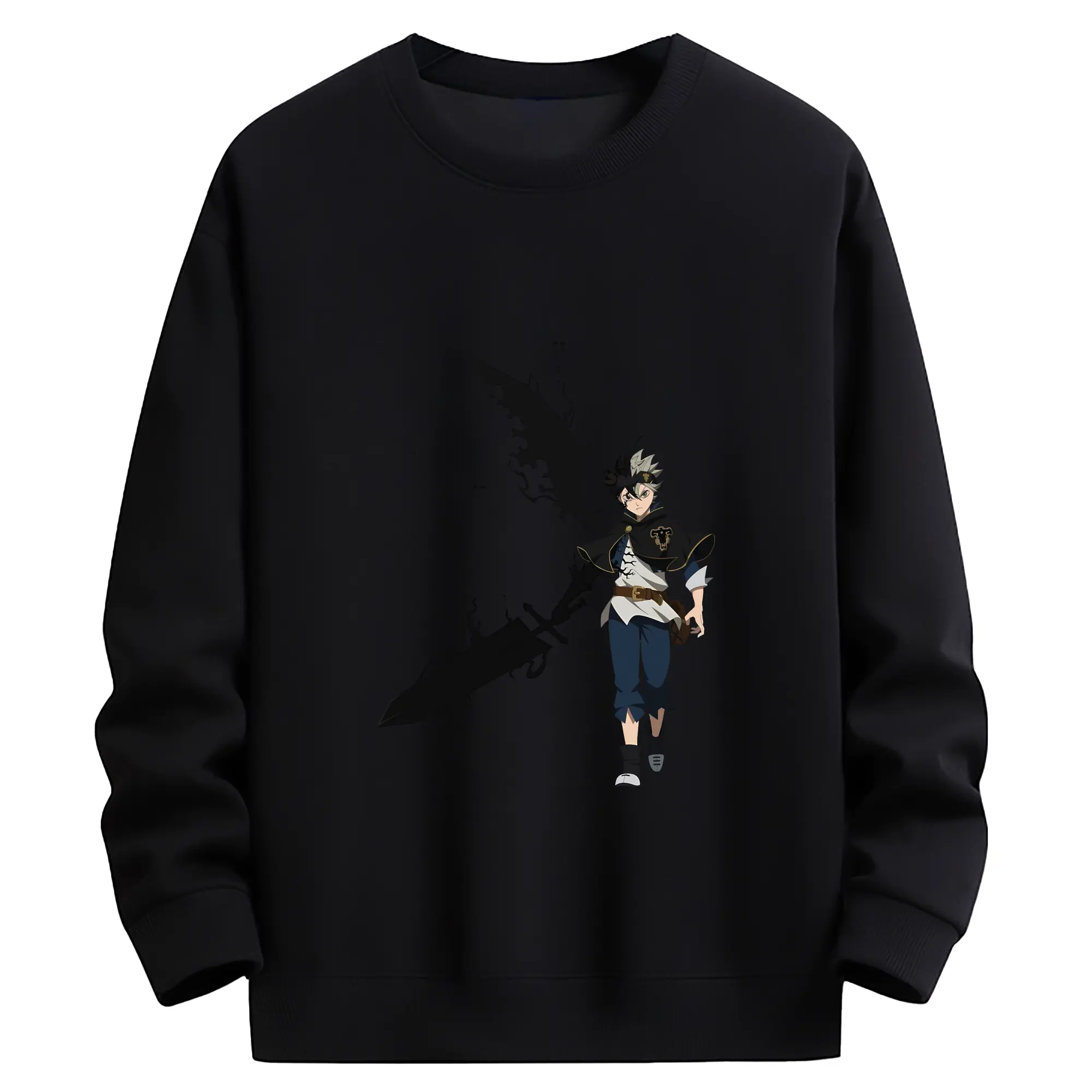 ブラッククローバー グッズ アスタ - キッズ クルーネックスウェットシャツ ・ フロントプリント ・ 綿80% ポリエステル20% ・ 快適 通学 スポーツ 日常使い お散歩用