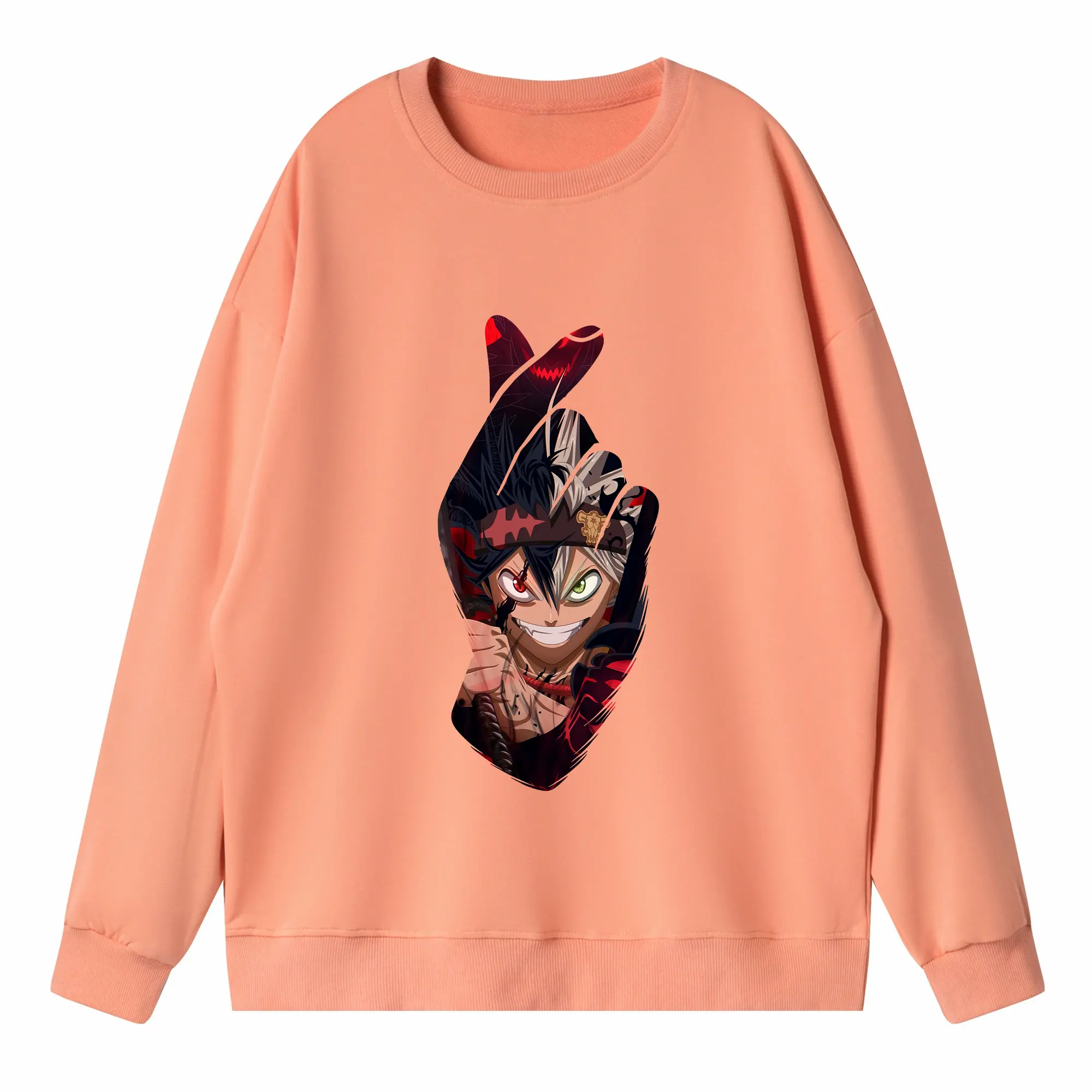 ブラッククローバー グッズ アスタ - 高品質 クルーネック スウェット ・ コットン59% ポリエステル41% ・ ユニセックス 長袖 トレーナー ・ カジュアル デイリー スポーツ 散歩用