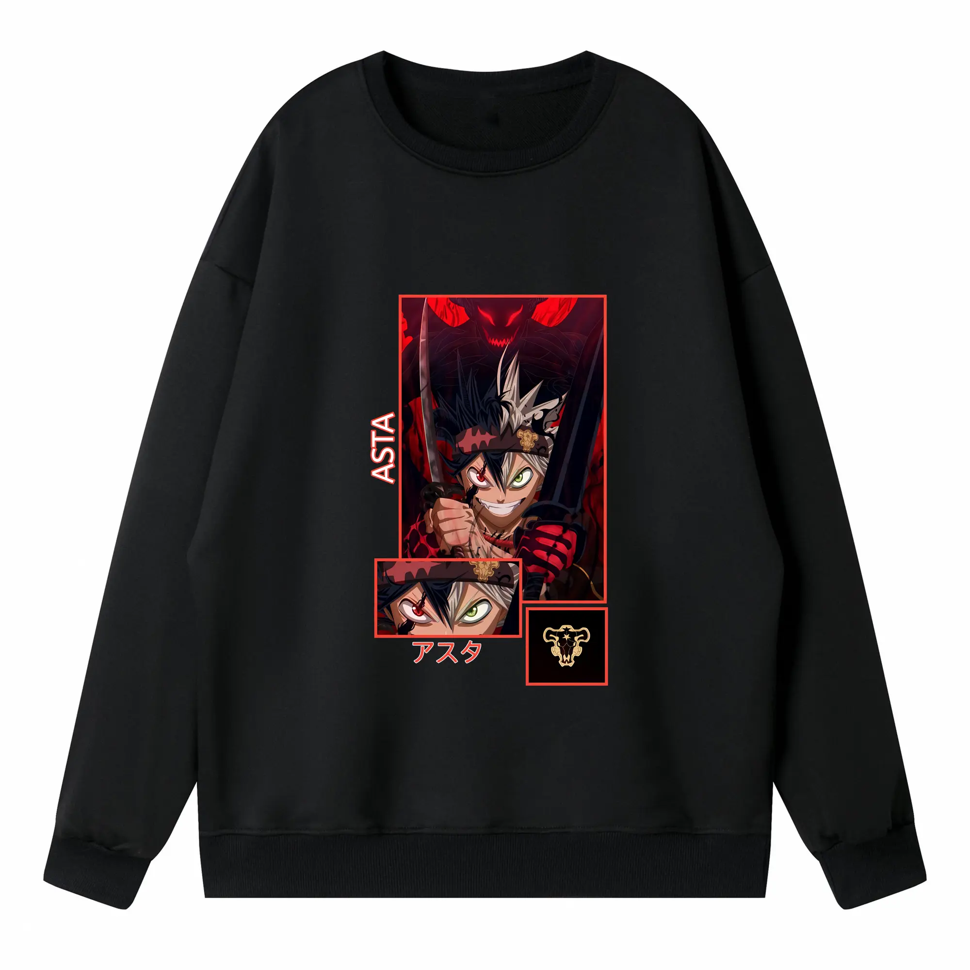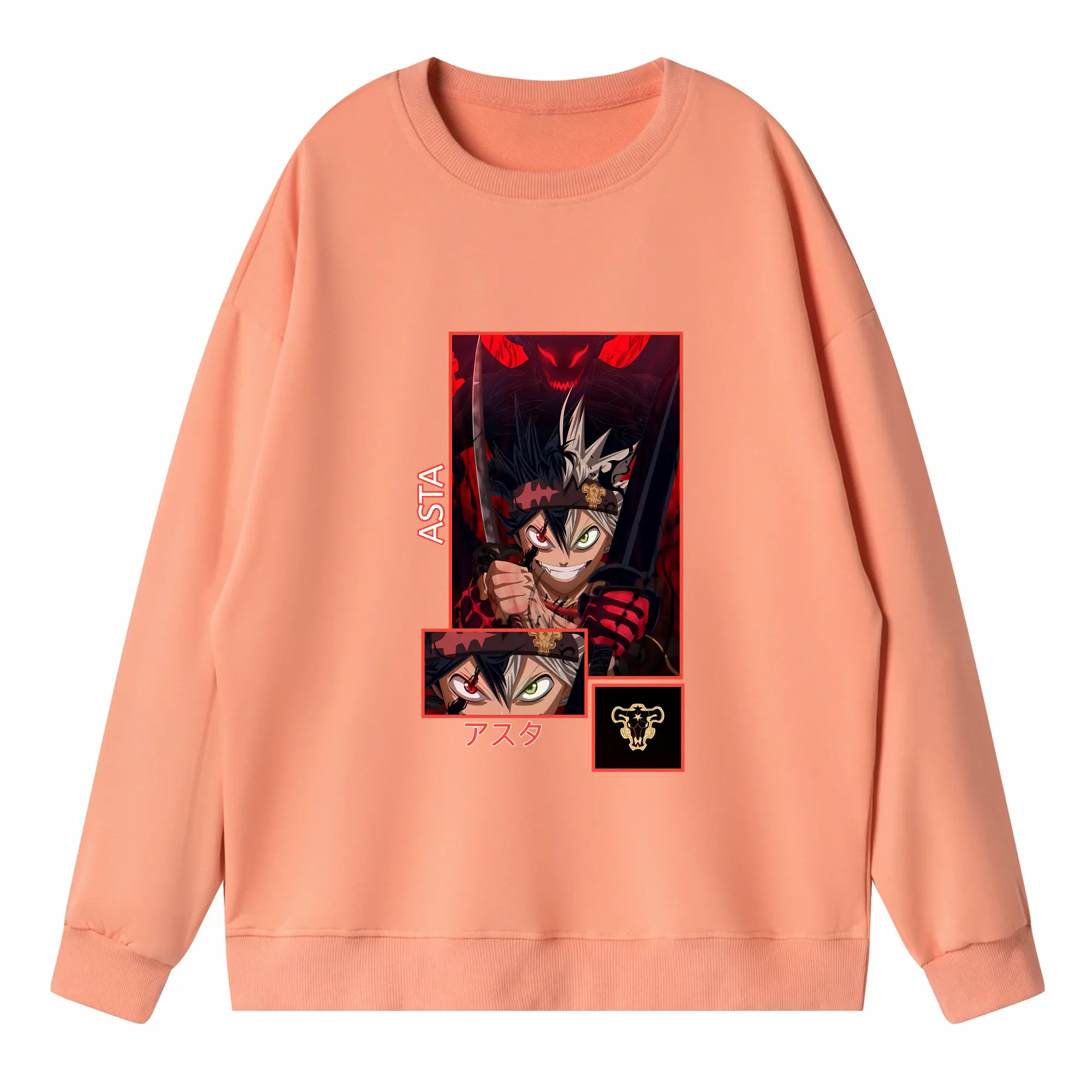 ブラッククローバー グッズ アスタ - 高品質 クルーネック スウェット ・ コットン59% ポリエステル41% ・ ユニセックス 長袖 トレーナー ・ カジュアル デイリー スポーツ 散歩用