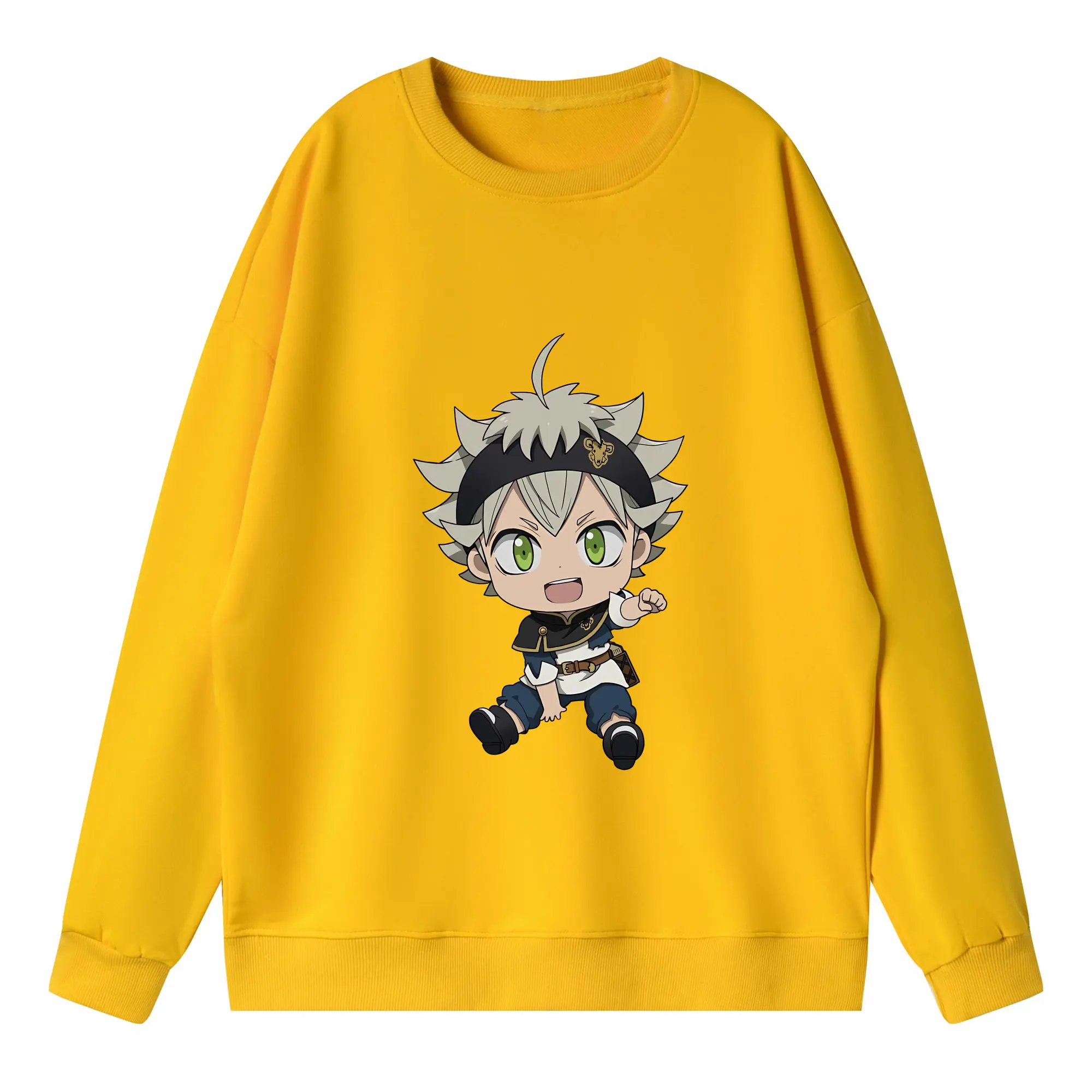 ブラッククローバー グッズ アスタ - キッズ クルーネックスウェットシャツ ・ フロントプリント ・ 綿80% ポリエステル20% ・ 快適 通学 スポーツ 日常使い お散歩用
