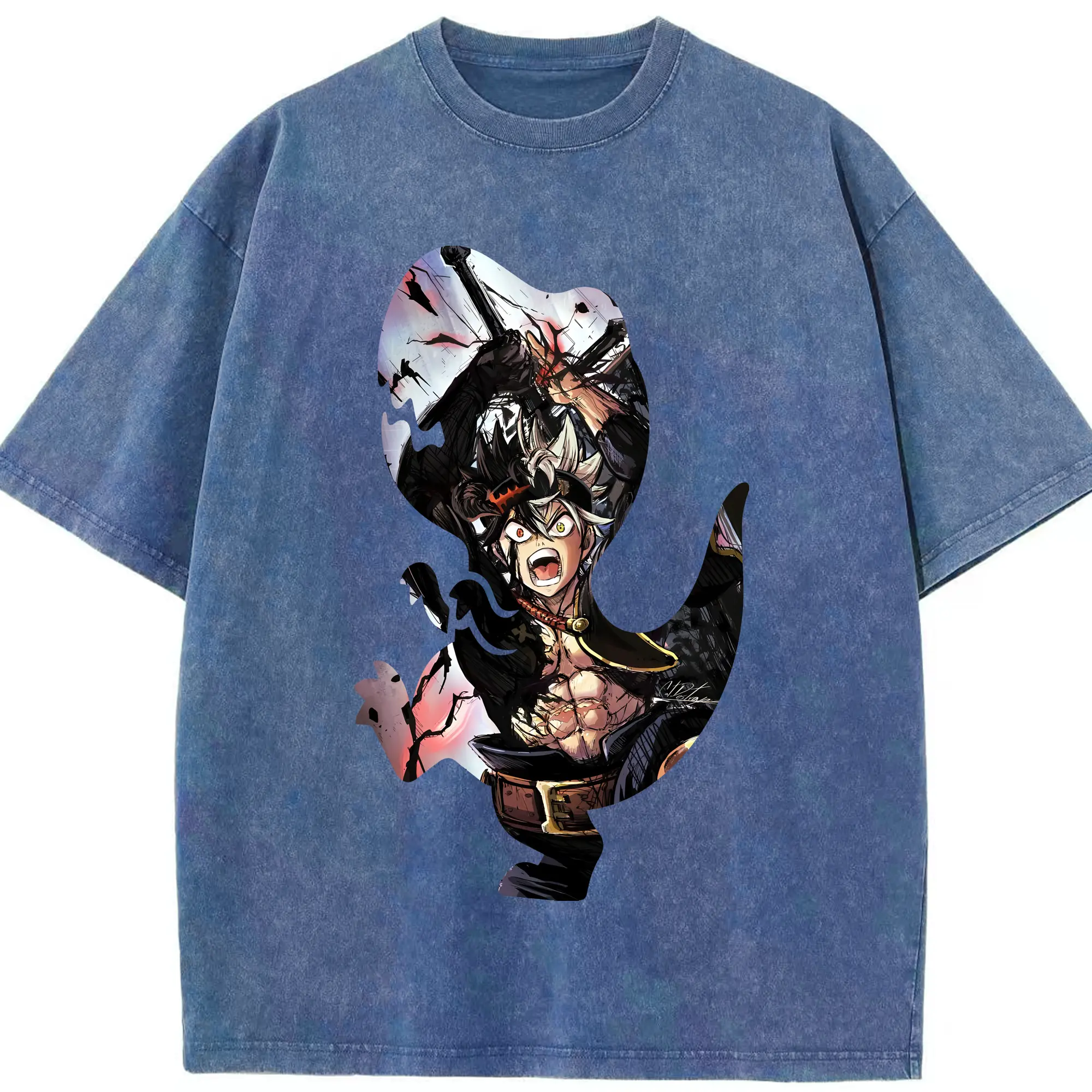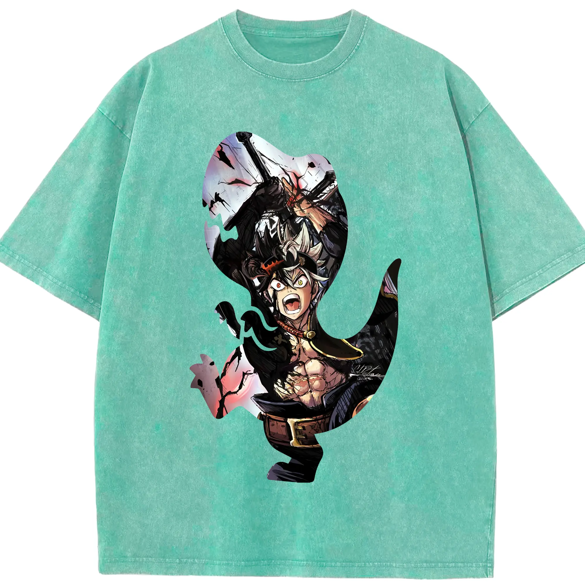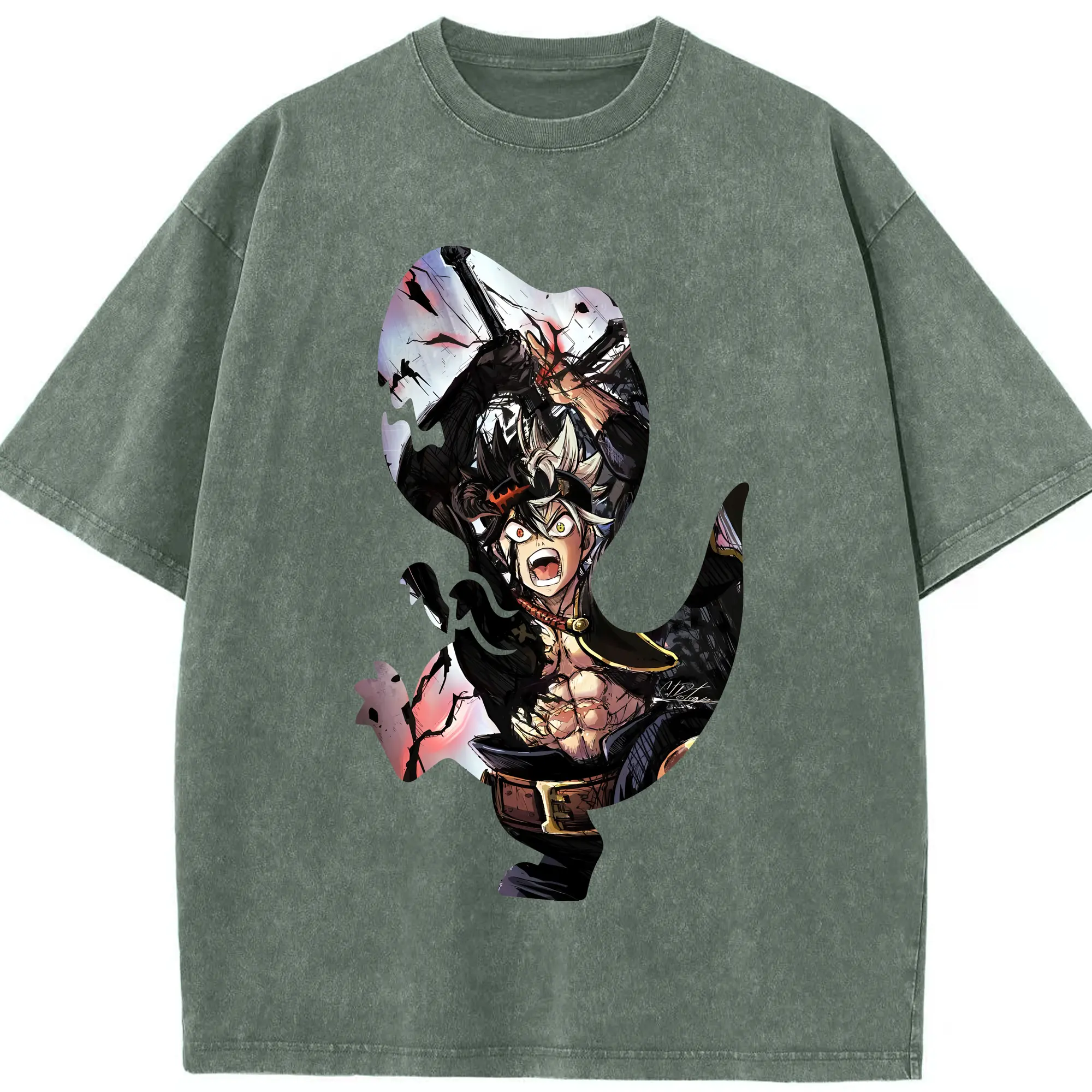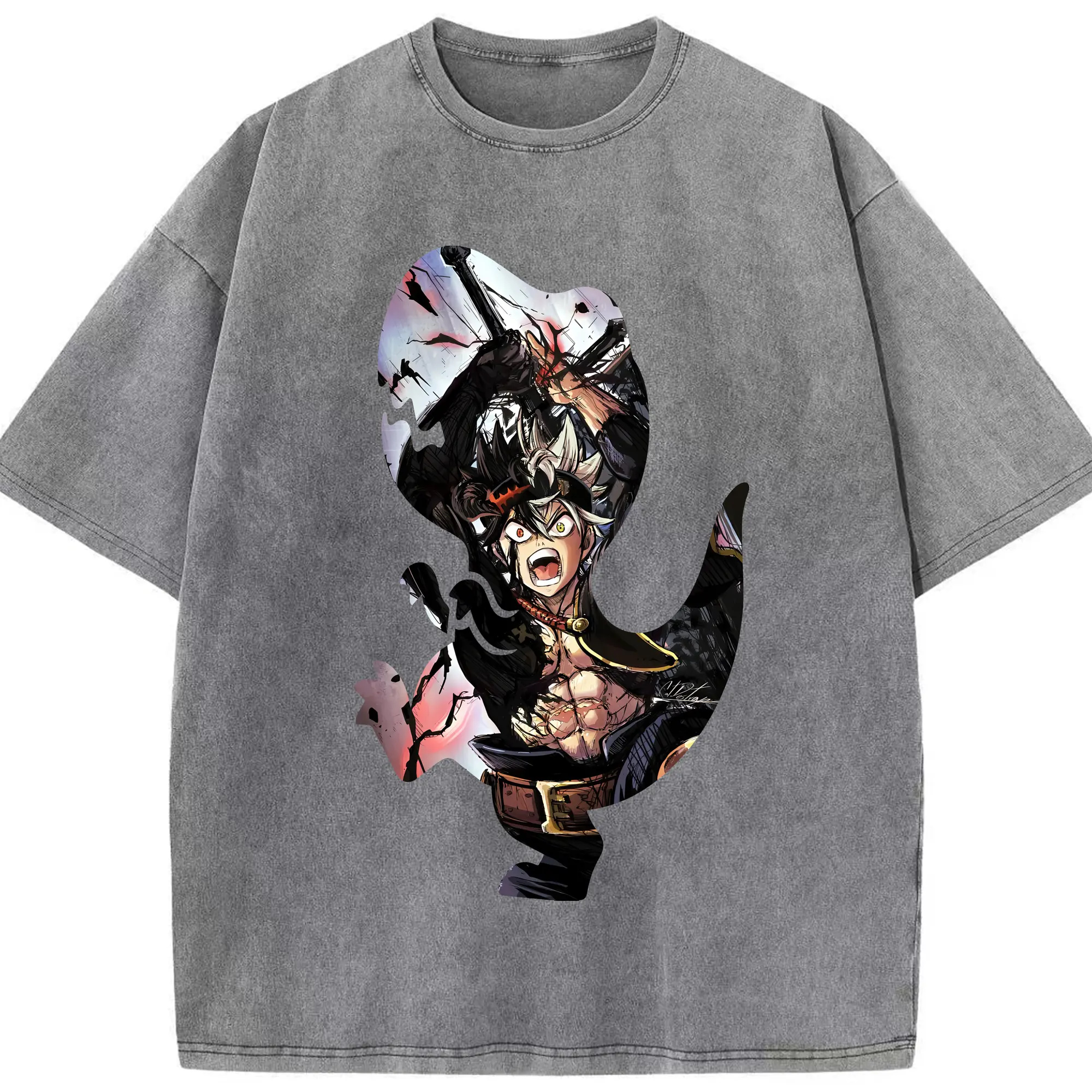 ブラッククローバー グッズ アスタ - 綿100% ヴィンテージ風 半袖Tシャツ ・ 背面プリント ・ 柔らか肌触り ・ 通気性 快適 ・ スポーツ カジュアル 外出用