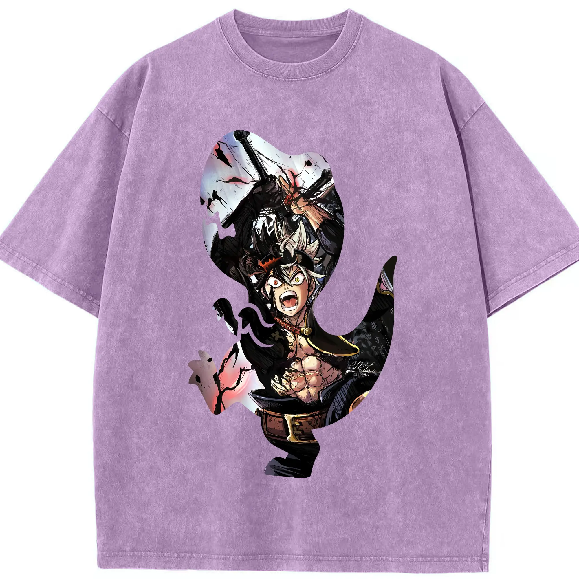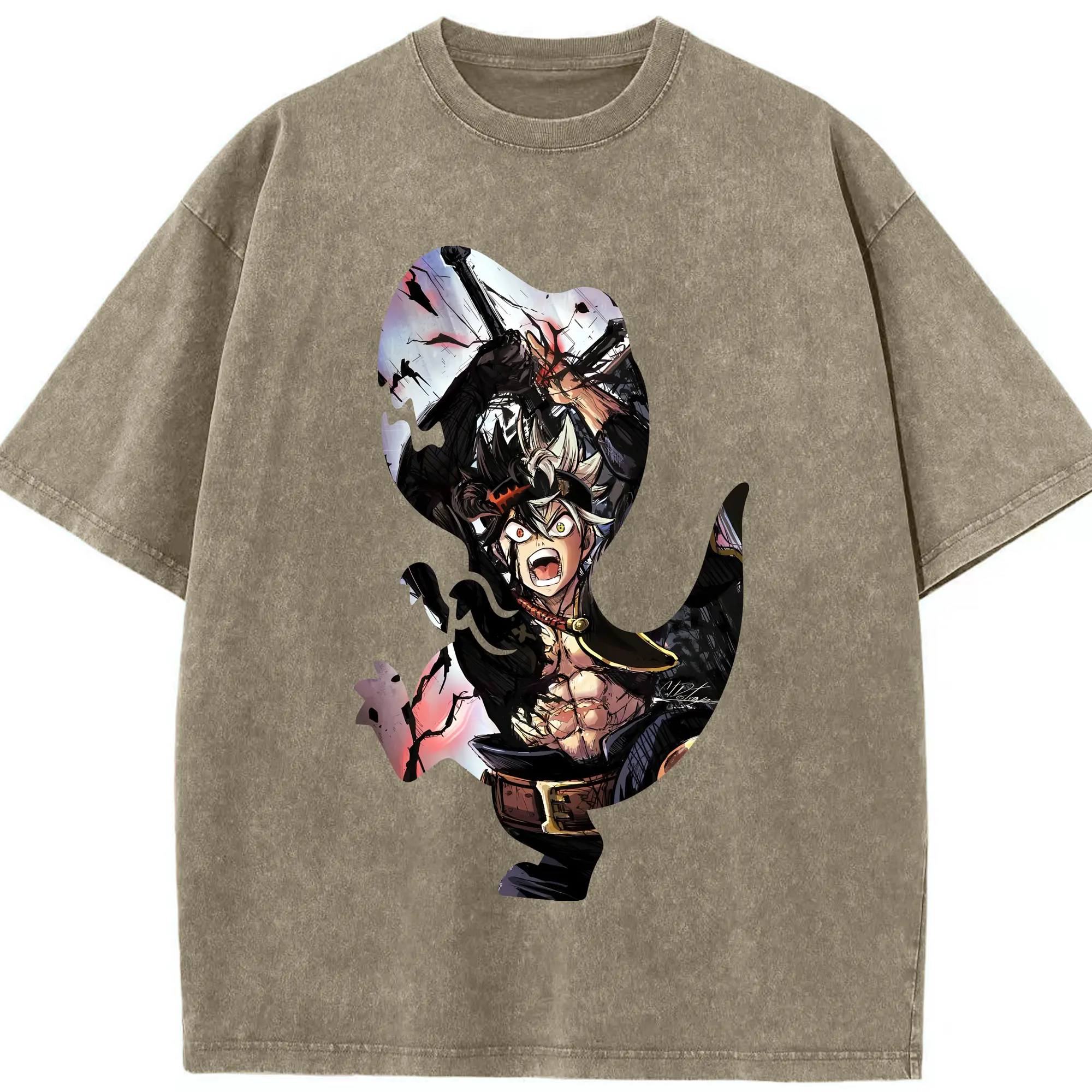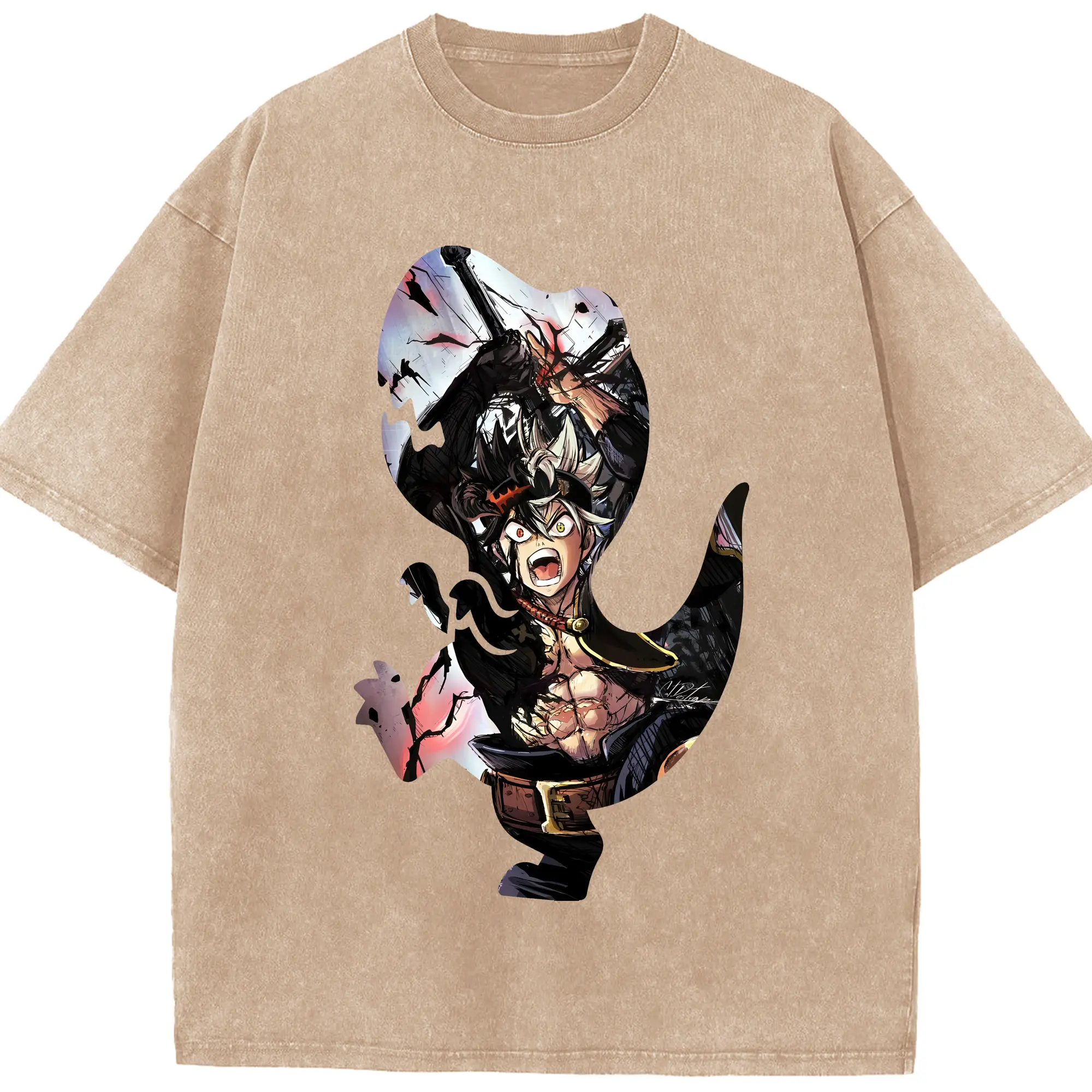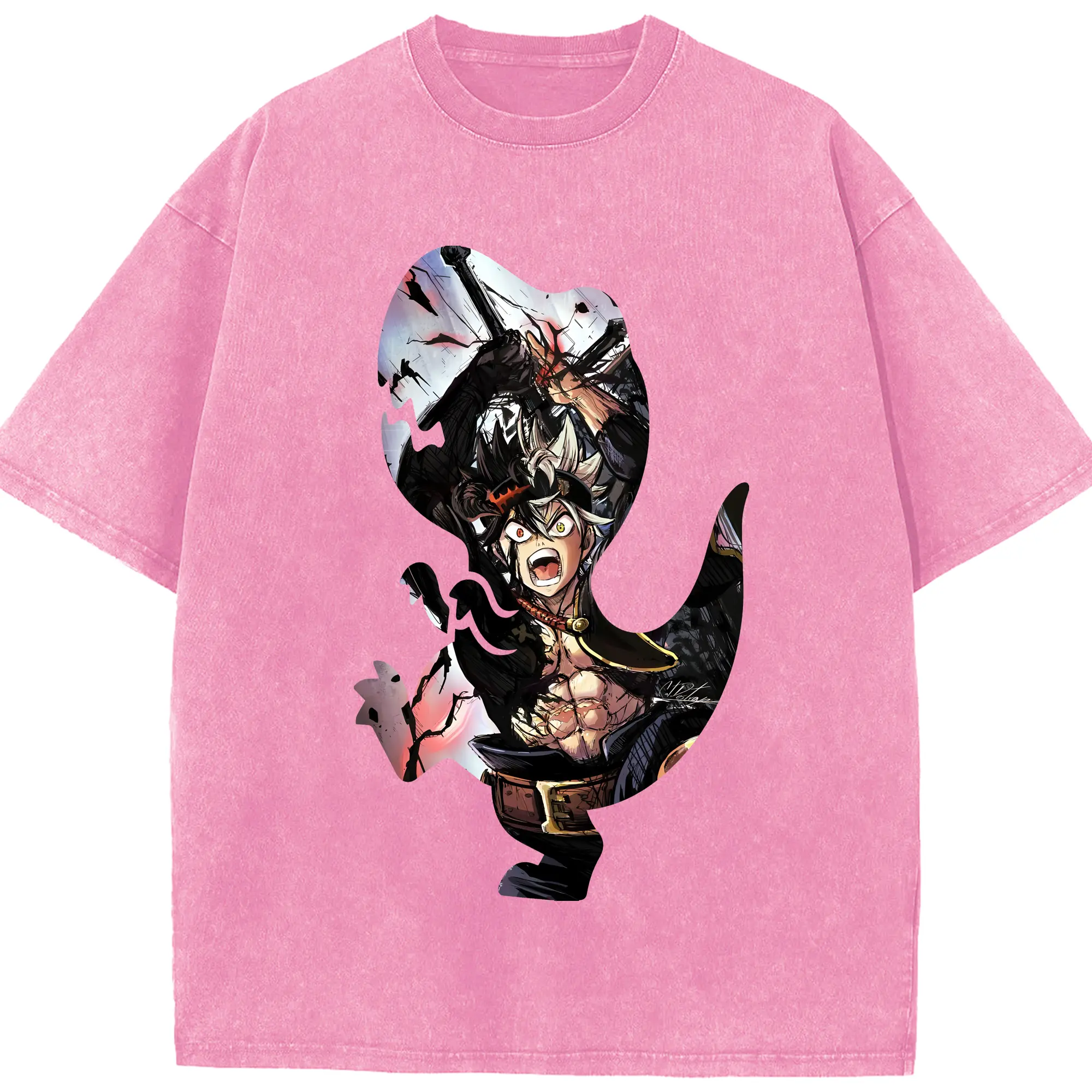 ブラッククローバー グッズ アスタ - 綿100% ヴィンテージ風 半袖Tシャツ ・ 背面プリント ・ 柔らか肌触り ・ 通気性 快適 ・ スポーツ カジュアル 外出用