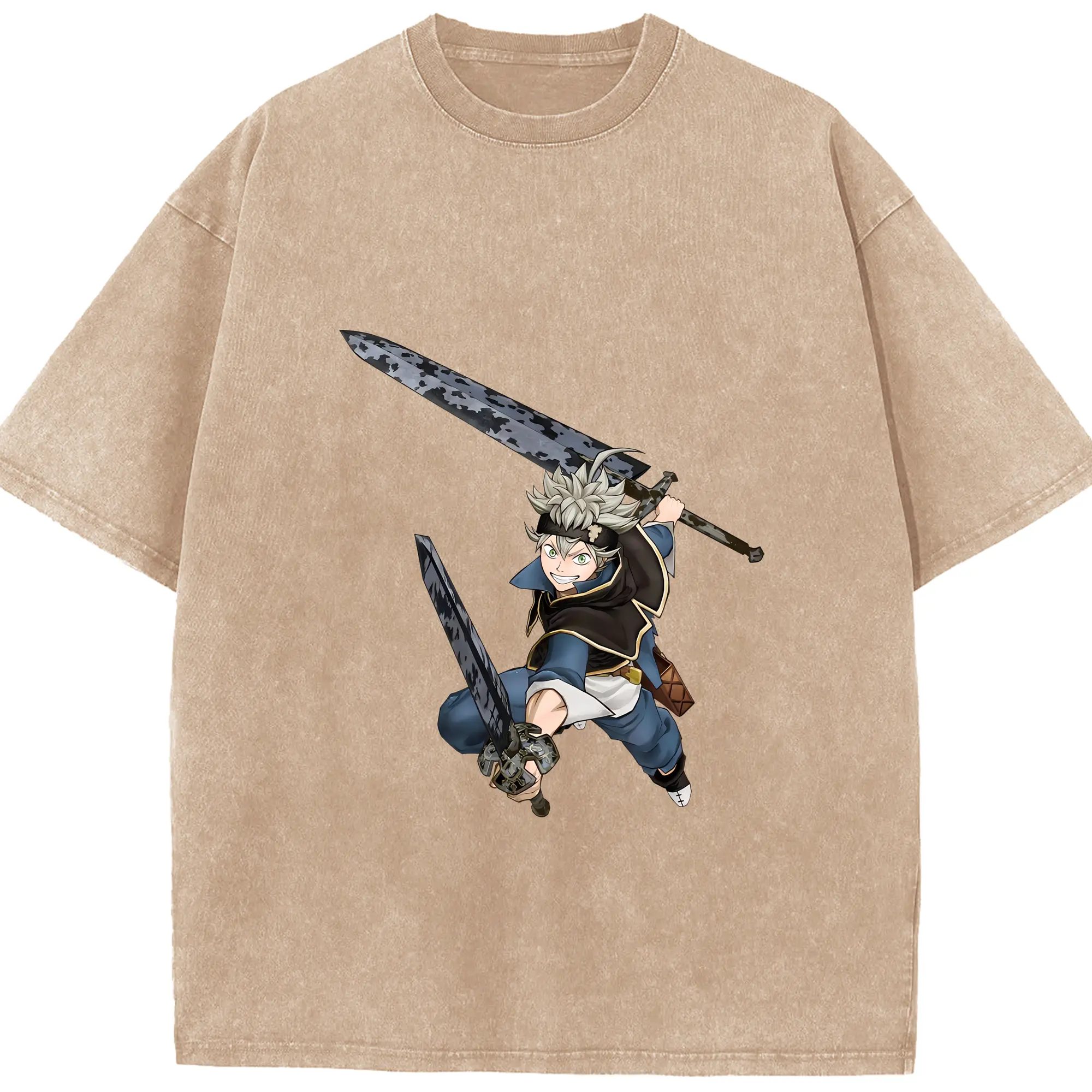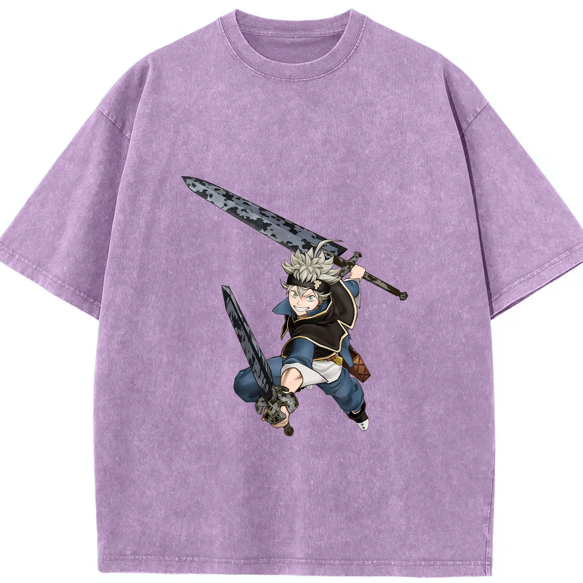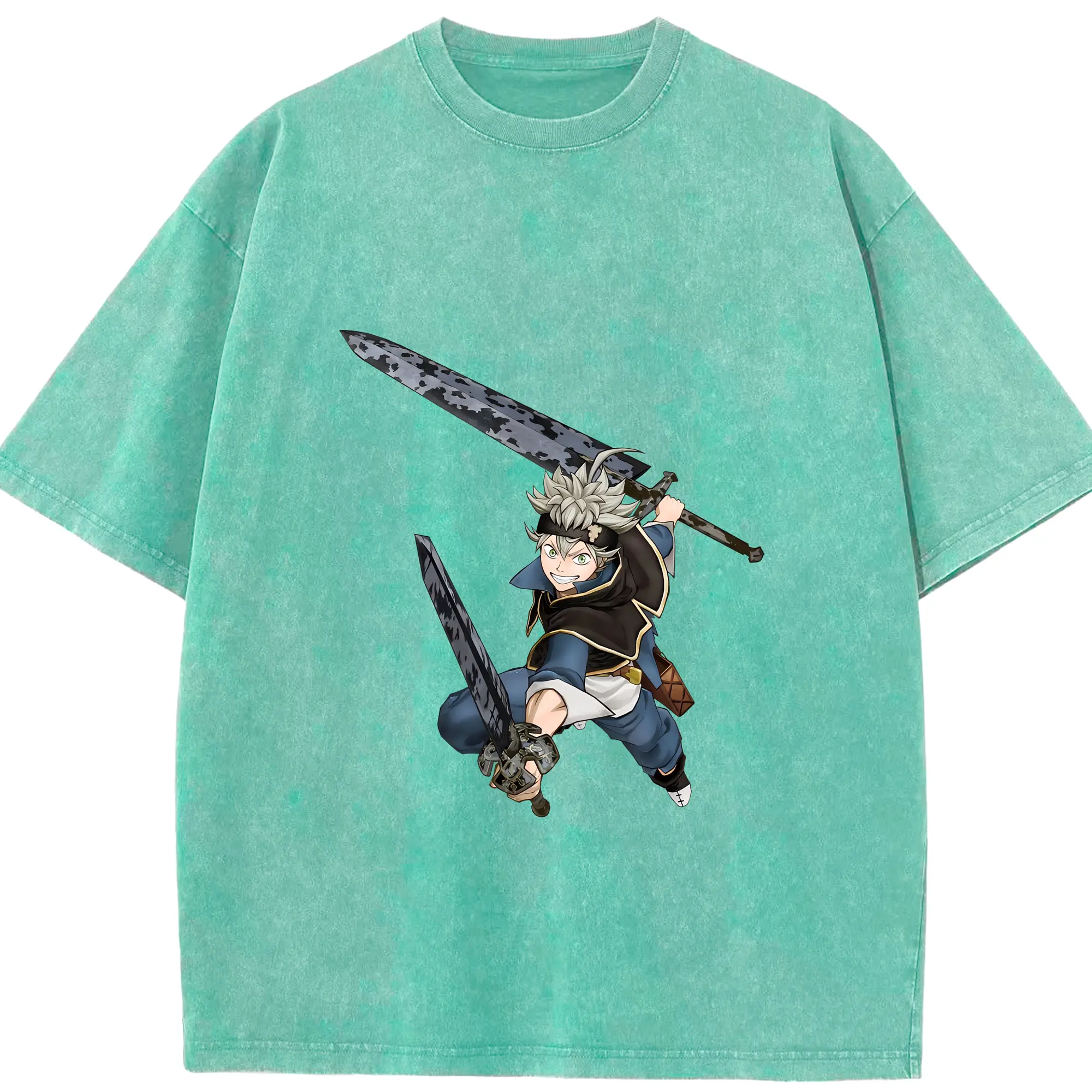 ブラッククローバー グッズ アスタ - 綿100% ヴィンテージ風 半袖Tシャツ ・ 背面プリント ・ 柔らか肌触り ・ 通気性 快適 ・ スポーツ カジュアル 外出用