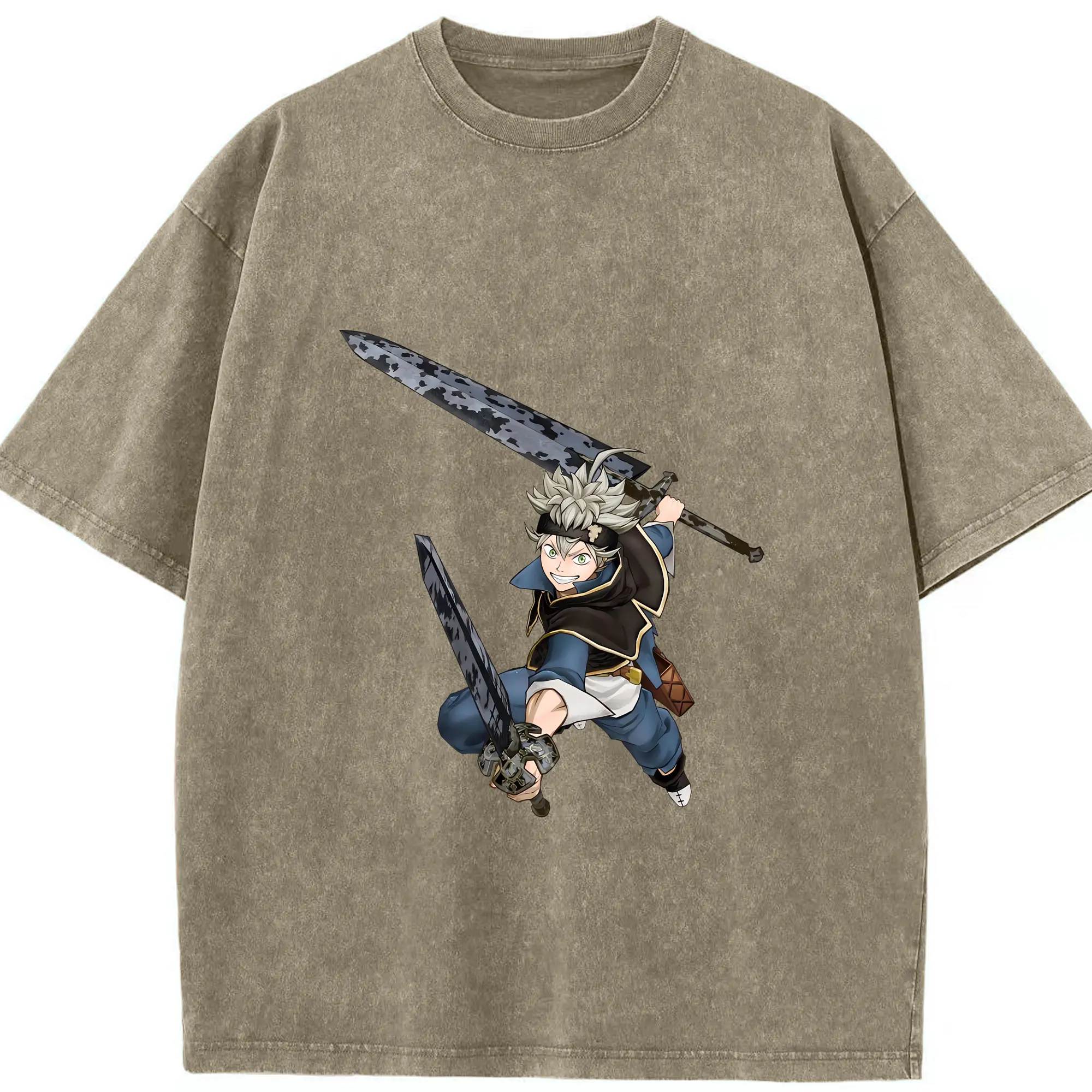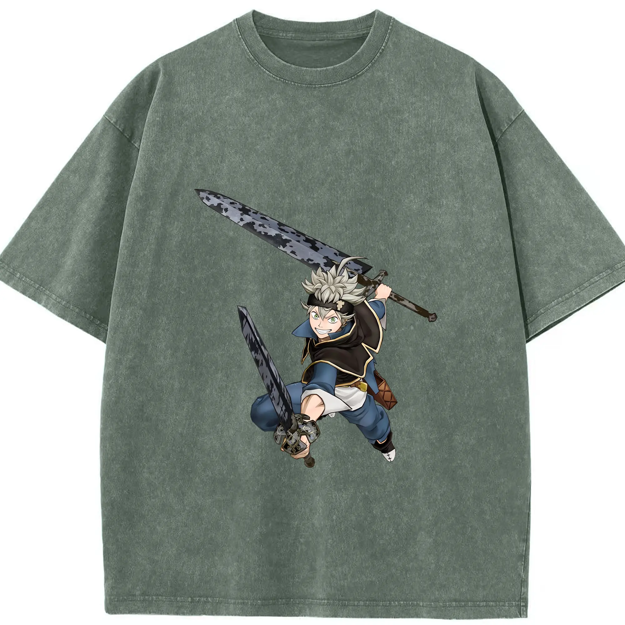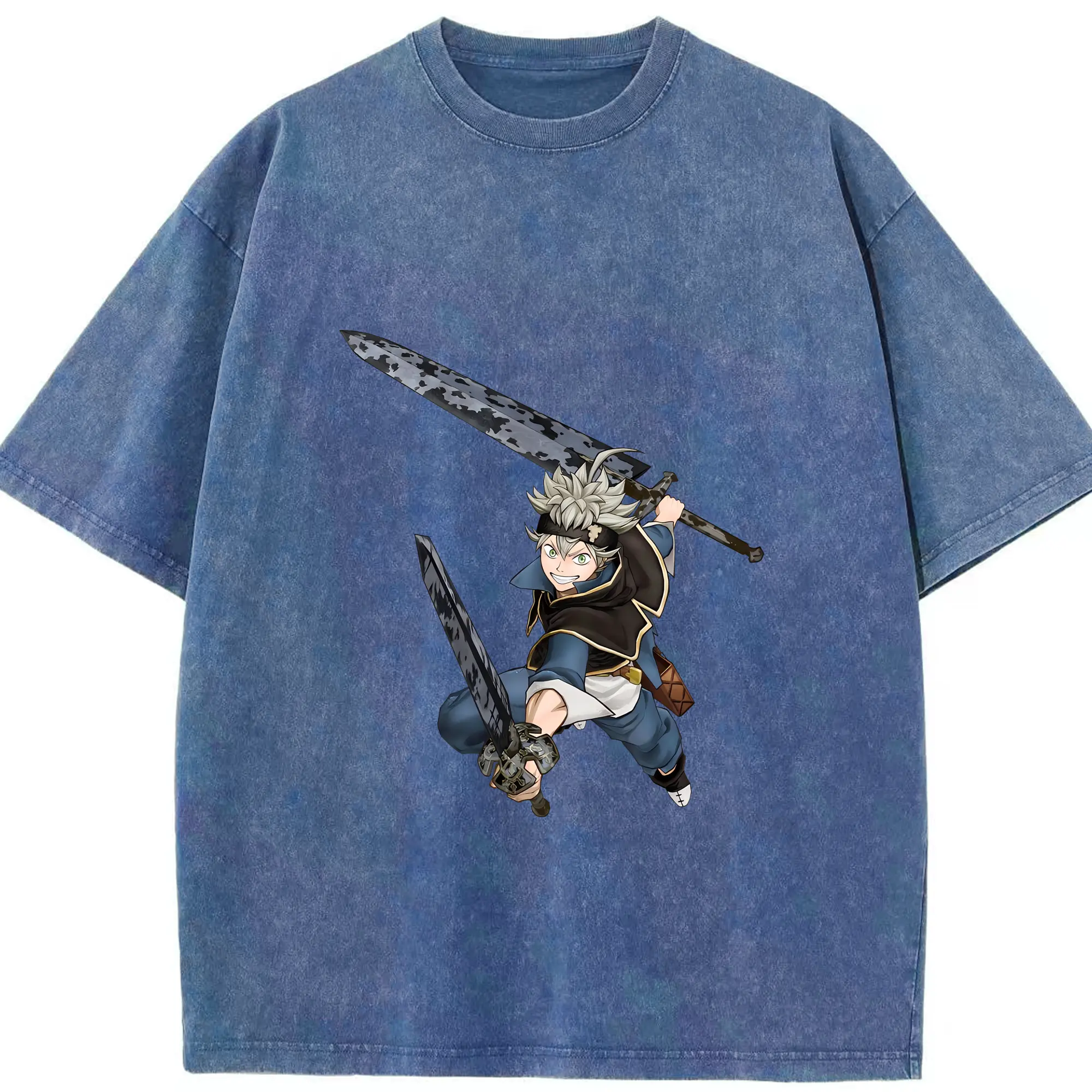 ブラッククローバー グッズ アスタ - 綿100% ヴィンテージ風 半袖Tシャツ ・ 背面プリント ・ 柔らか肌触り ・ 通気性 快適 ・ スポーツ カジュアル 外出用