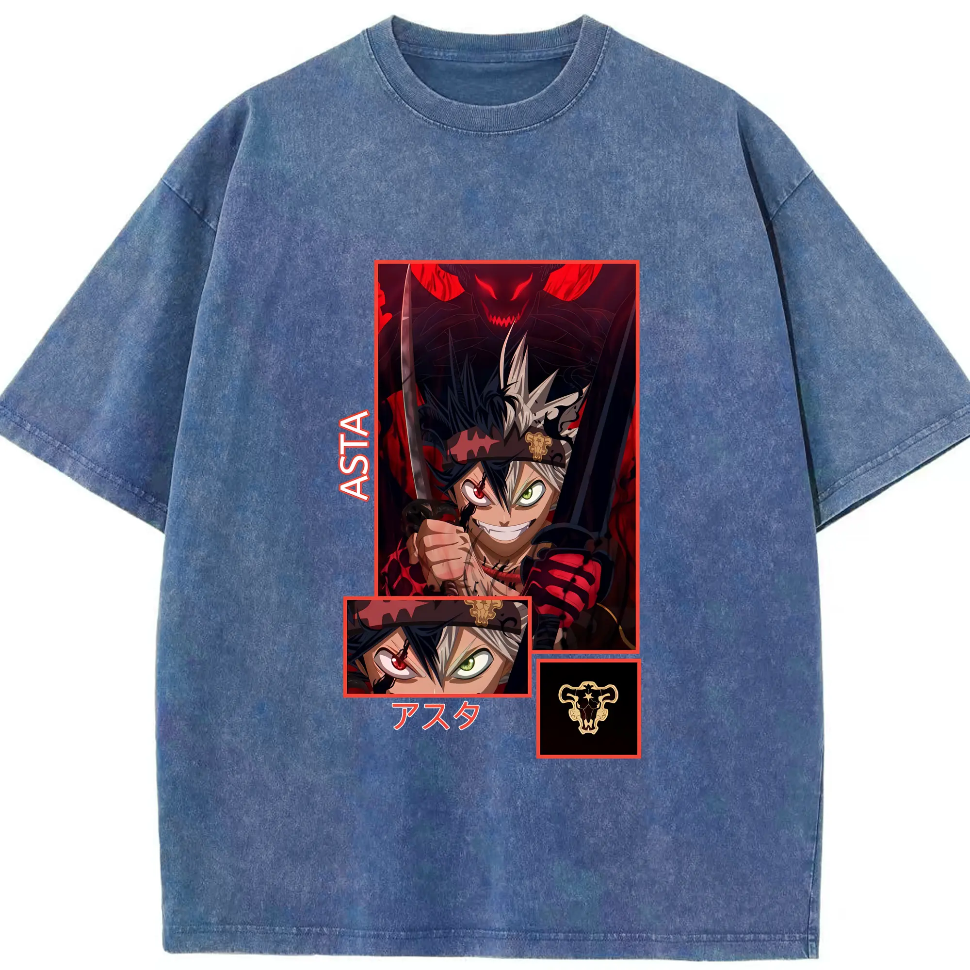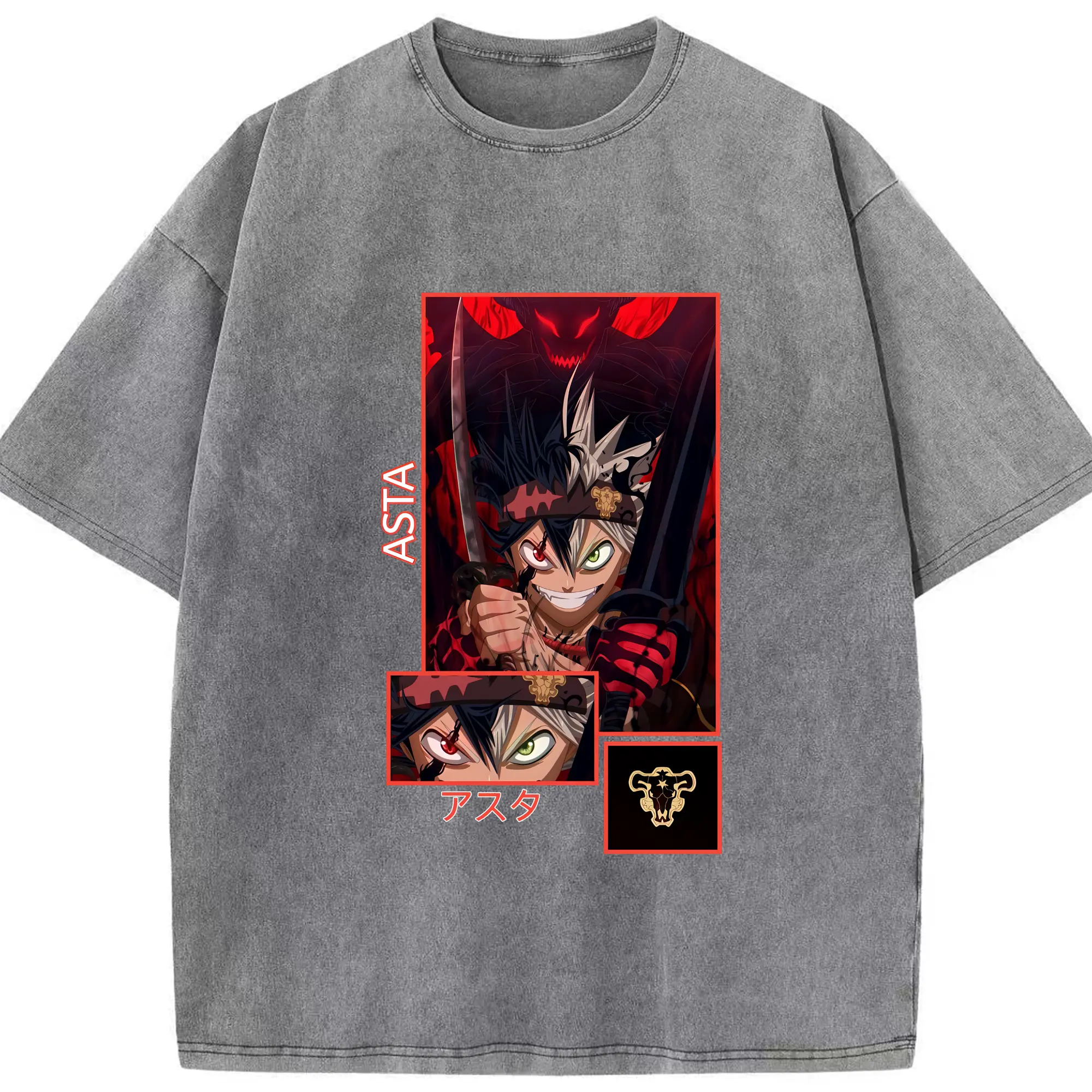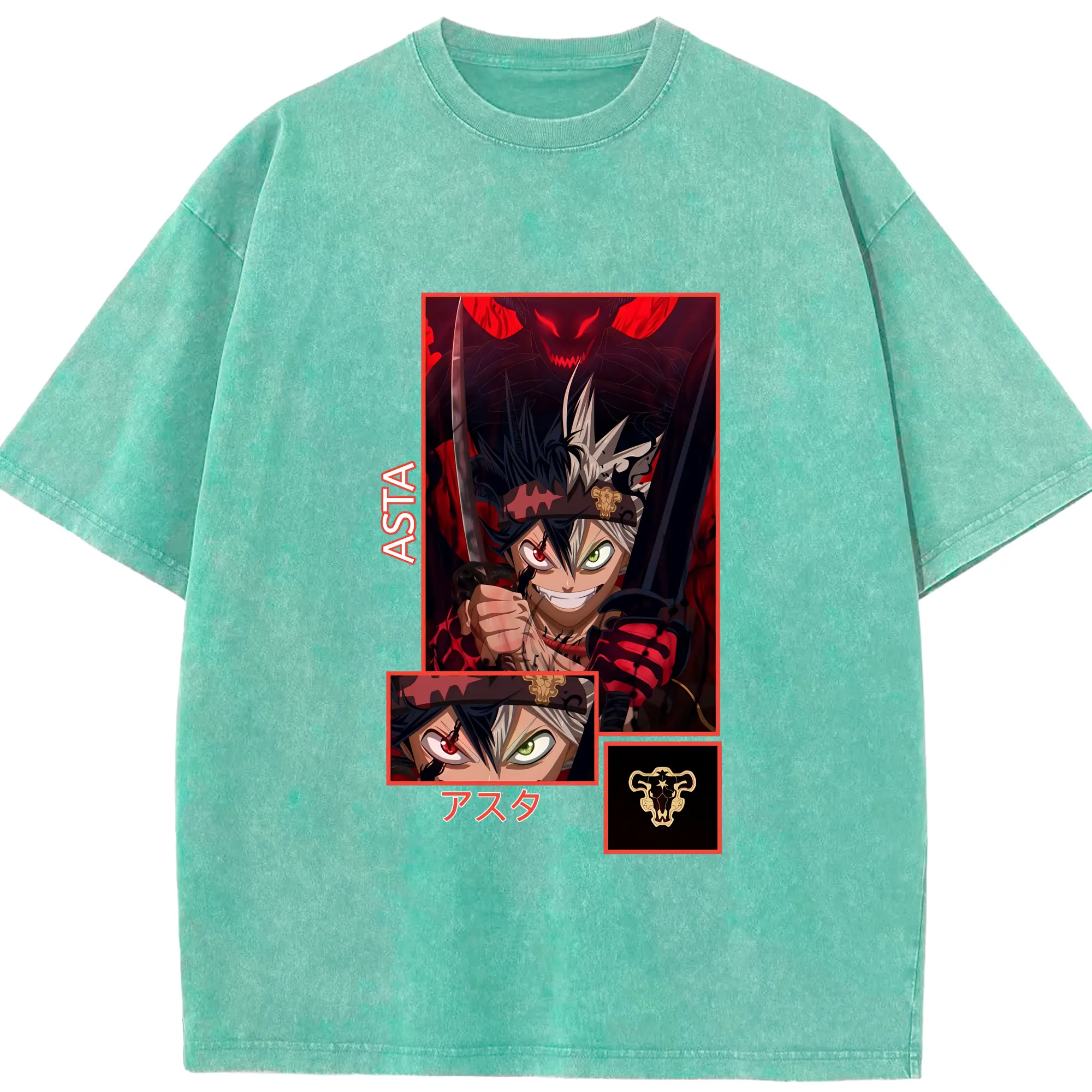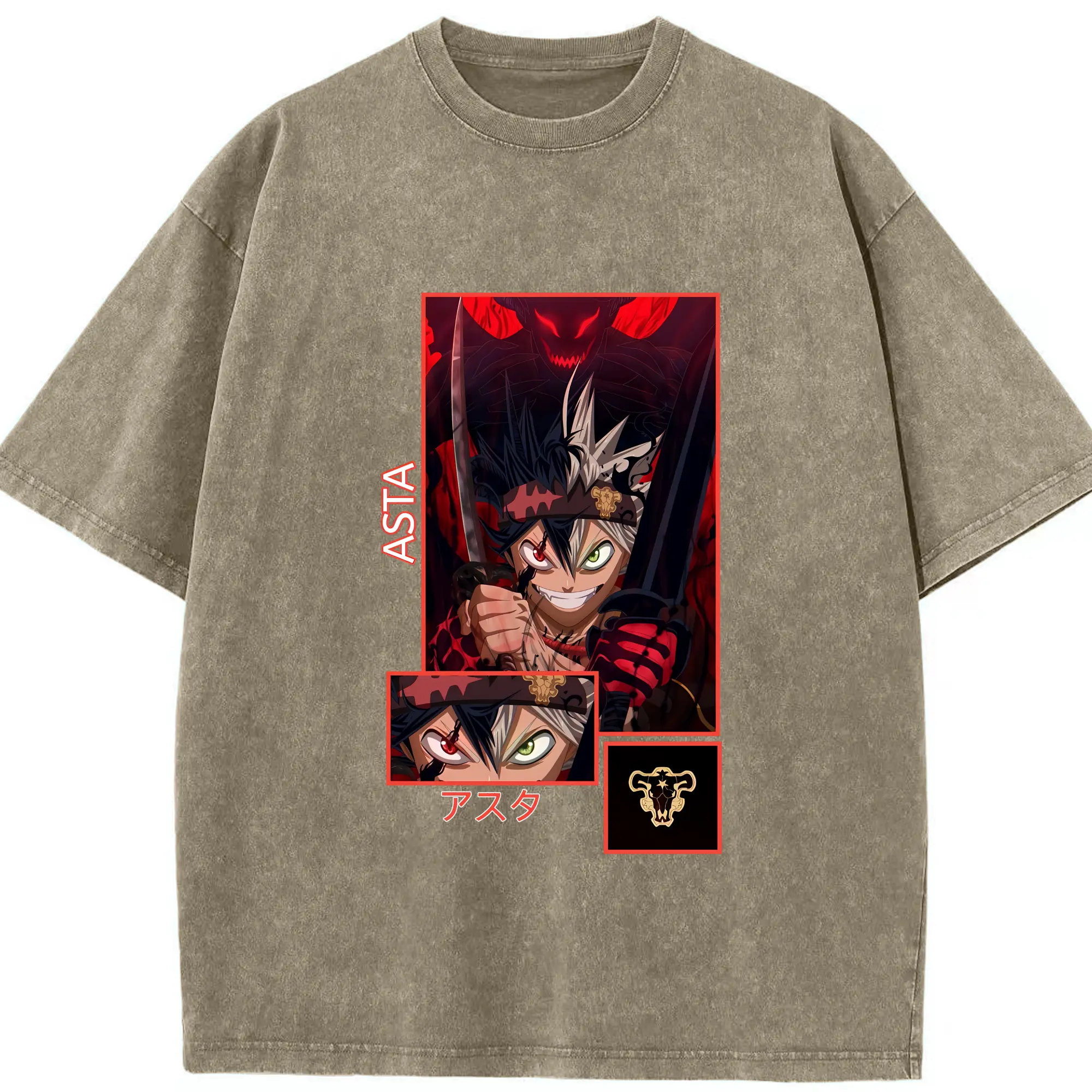 ブラッククローバー グッズ アスタ - 綿100% ヴィンテージ風 半袖Tシャツ ・ 背面プリント ・ 柔らか肌触り ・ 通気性 快適 ・ スポーツ カジュアル 外出用