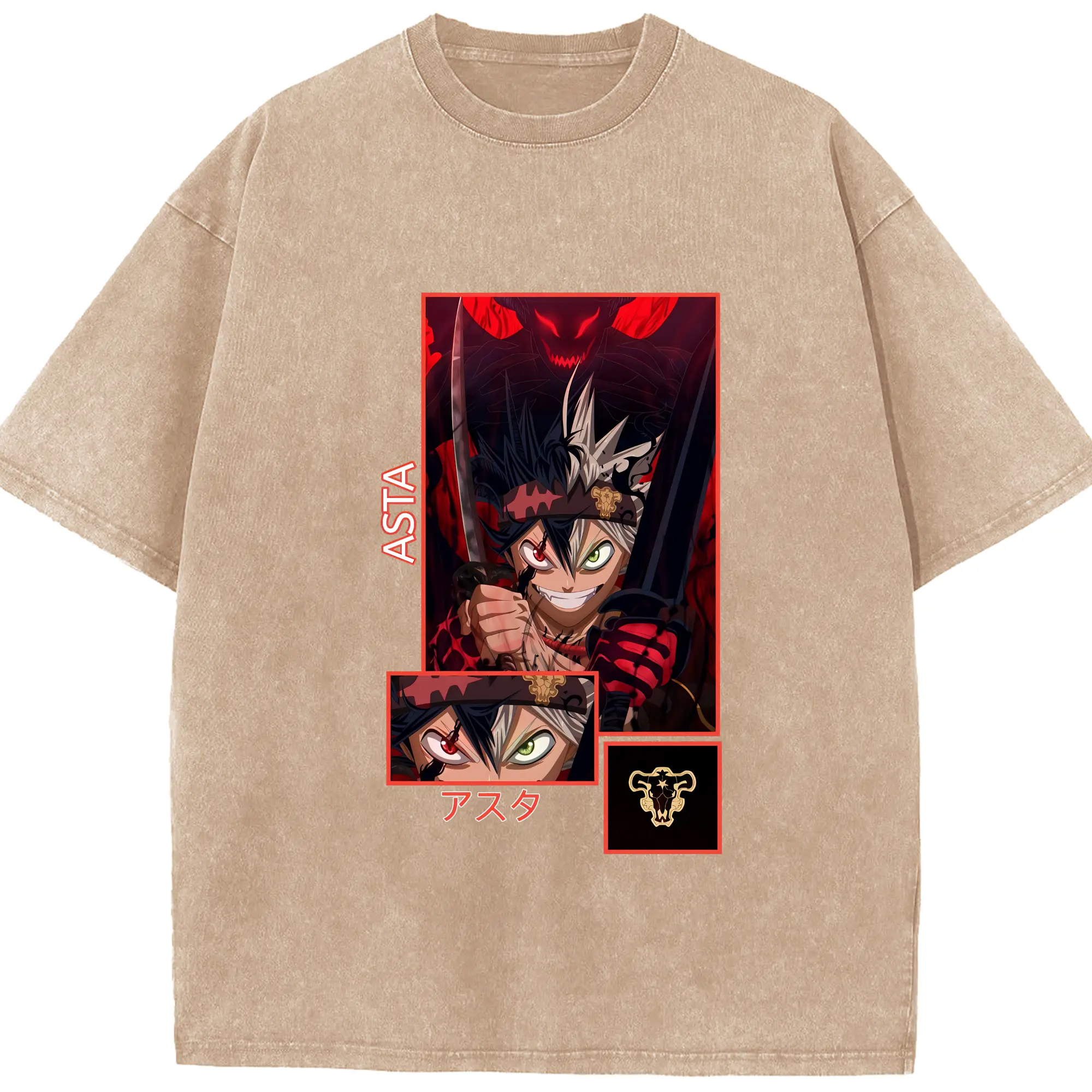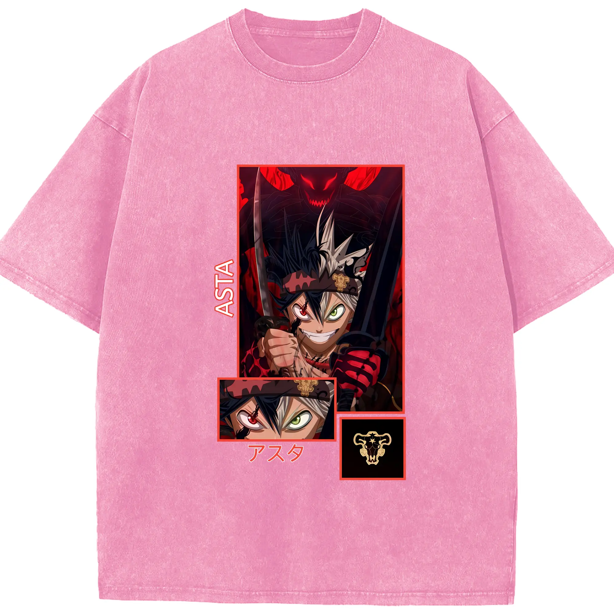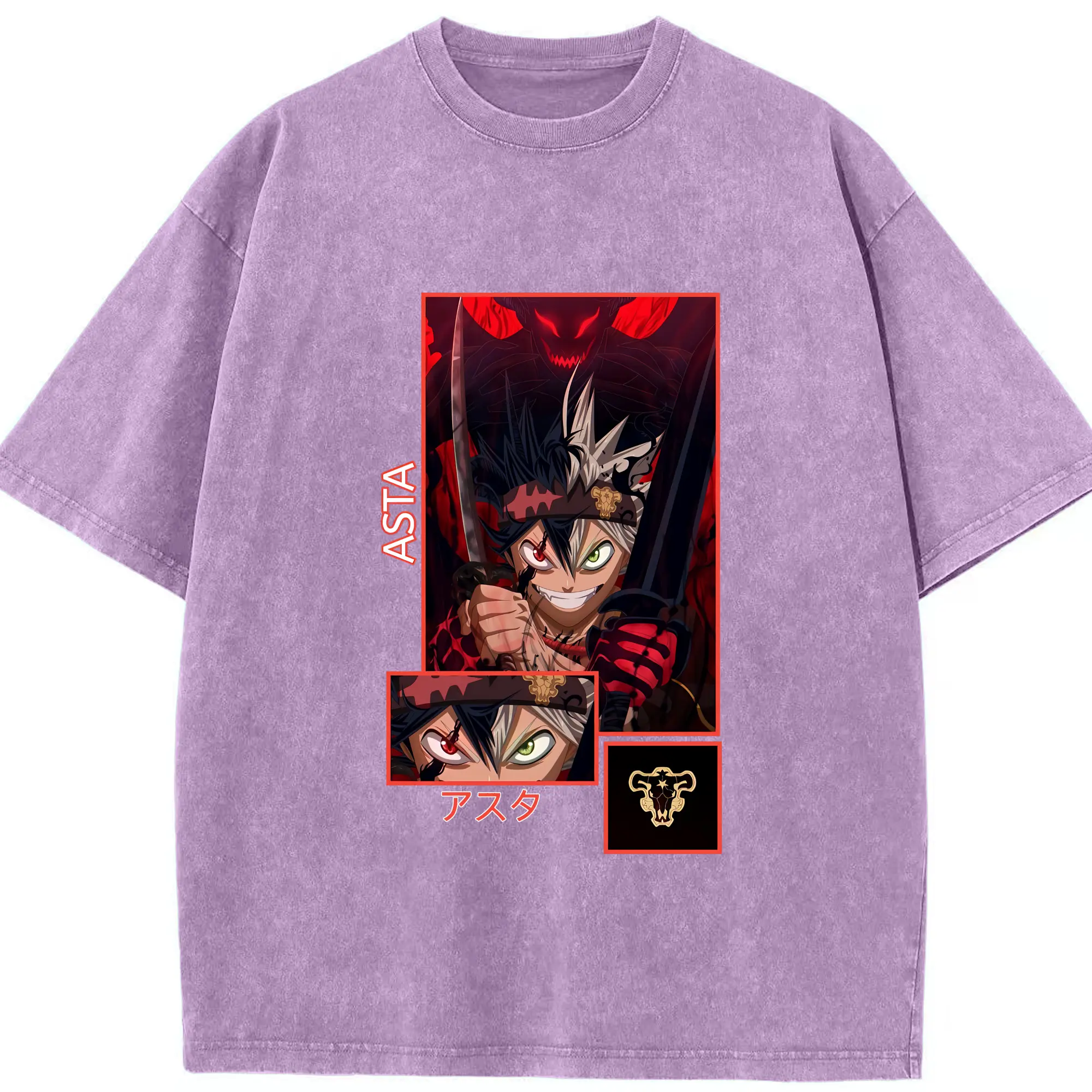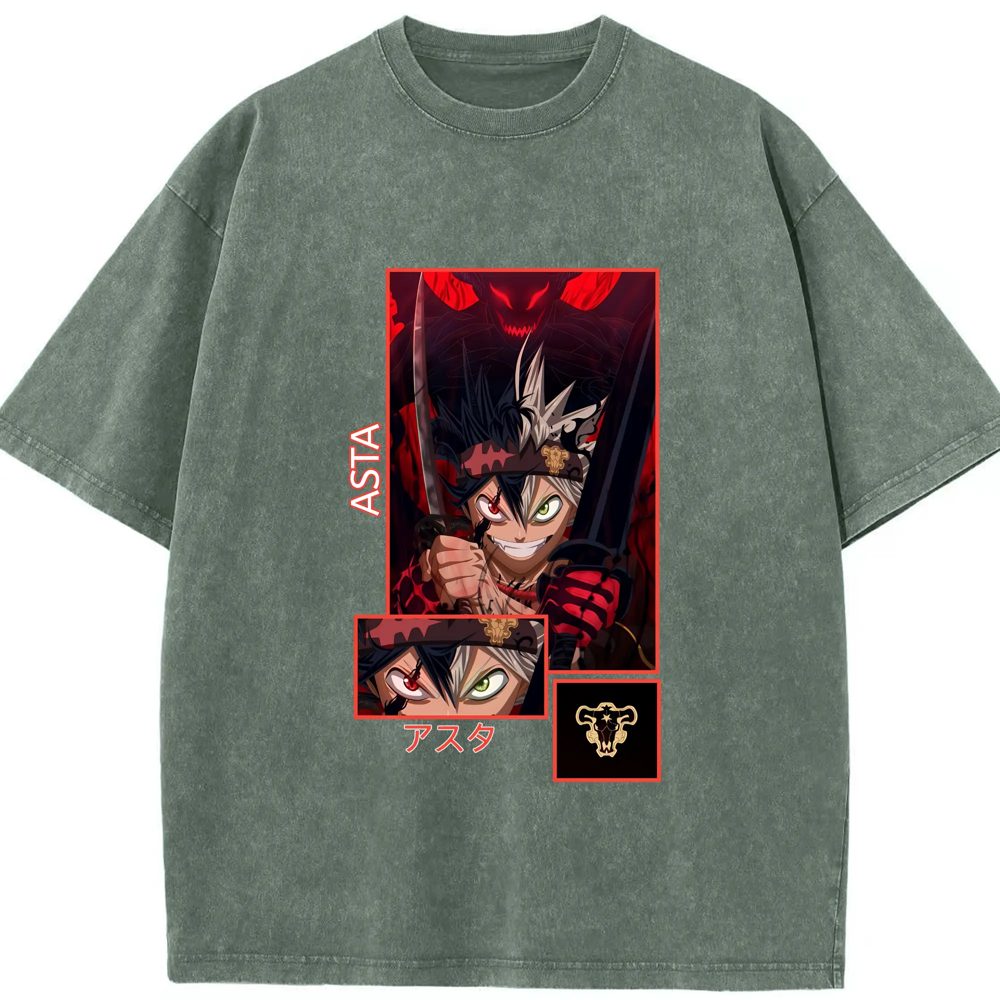 ブラッククローバー グッズ アスタ - 綿100% ヴィンテージ風 半袖Tシャツ ・ 背面プリント ・ 柔らか肌触り ・ 通気性 快適 ・ スポーツ カジュアル 外出用