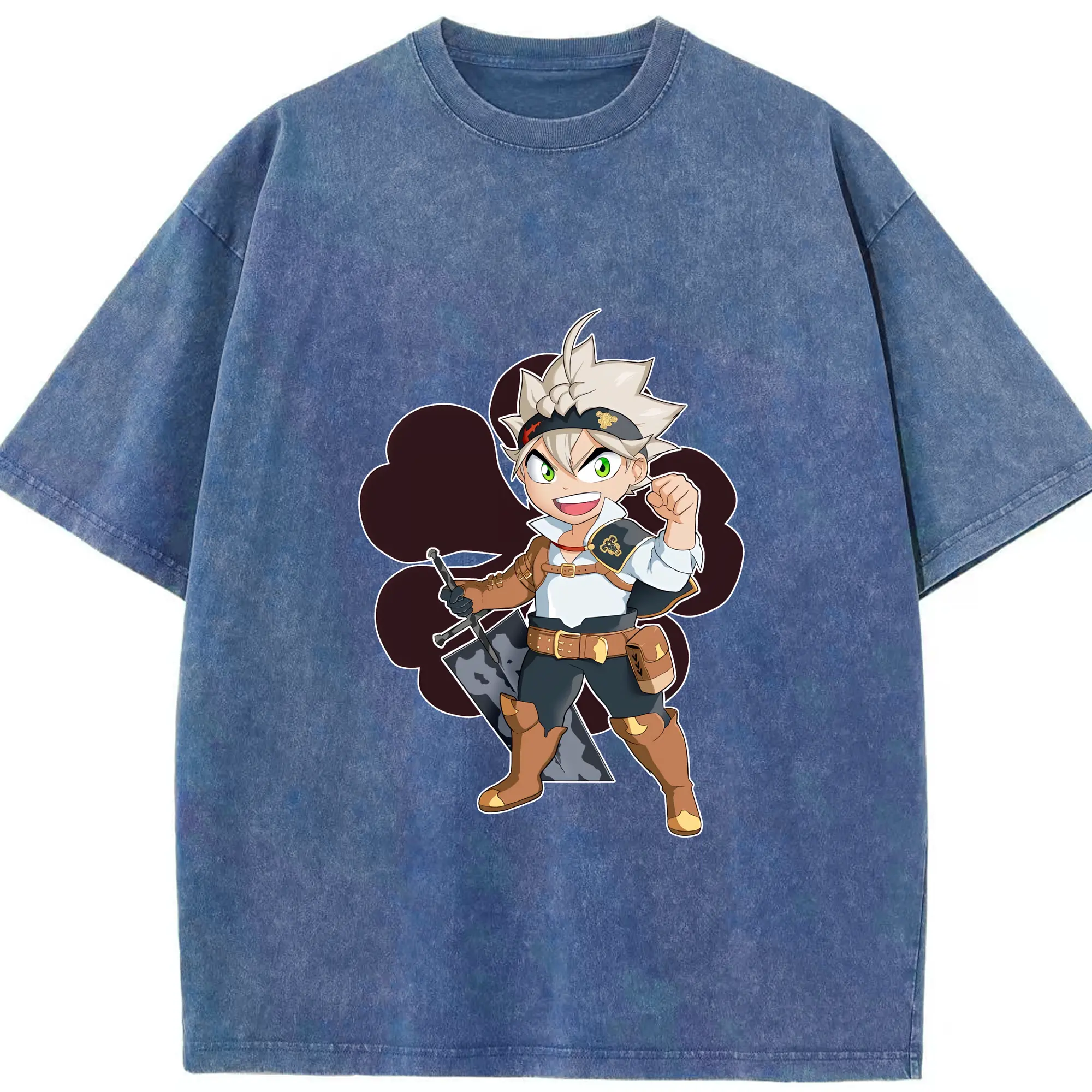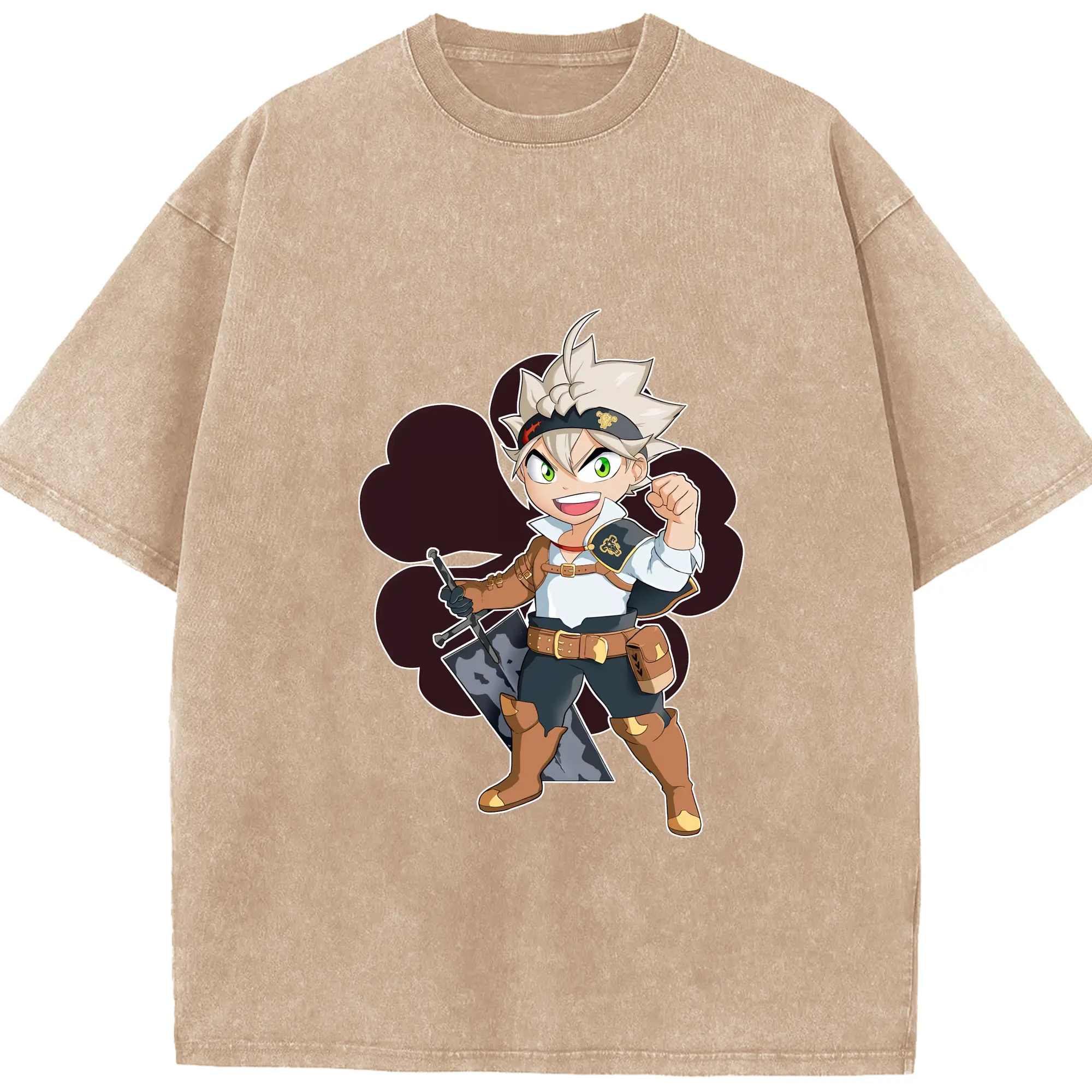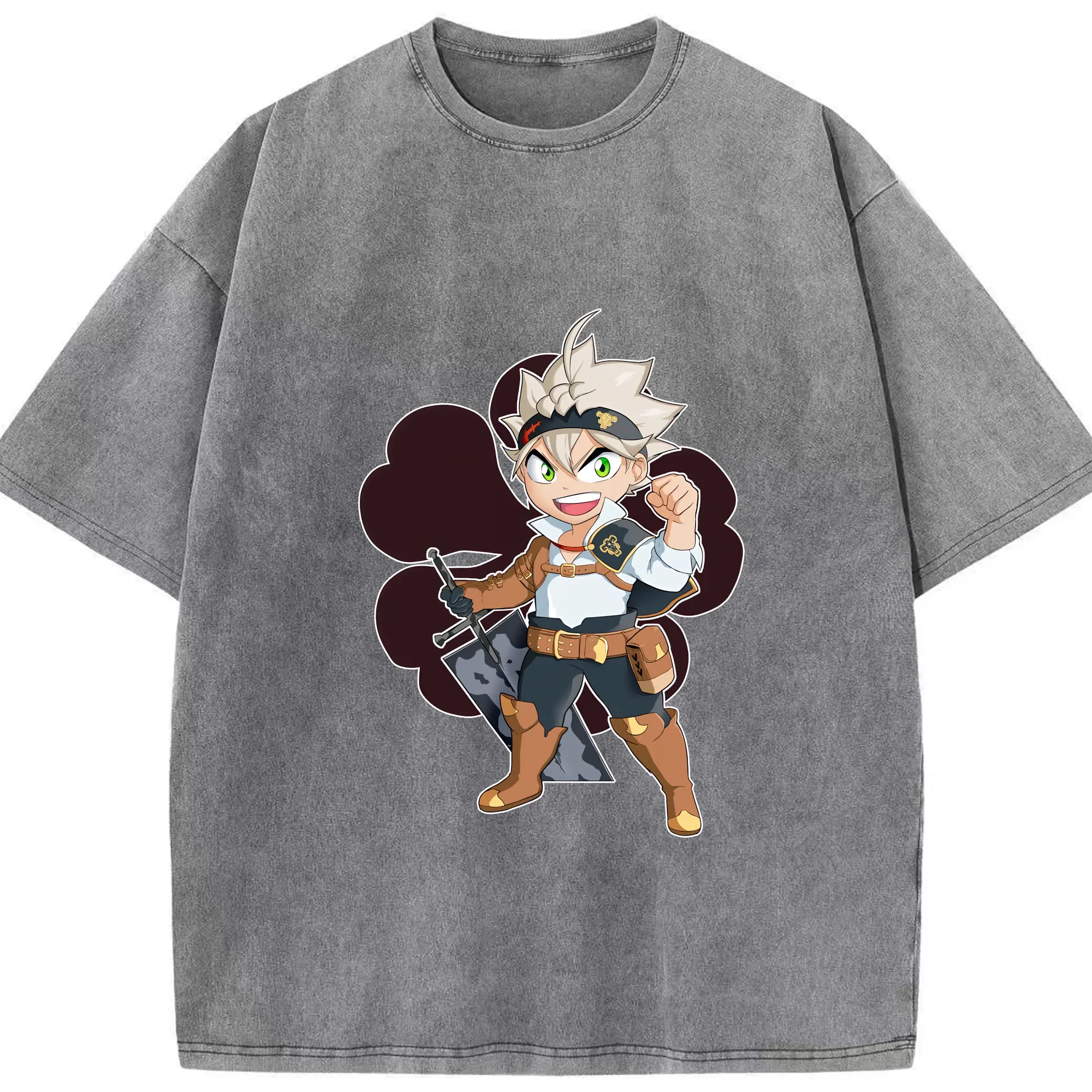 ブラッククローバー グッズ アスタ - 綿100% ヴィンテージ風 半袖Tシャツ ・ 背面プリント ・ 柔らか肌触り ・ 通気性 快適 ・ スポーツ カジュアル 外出用