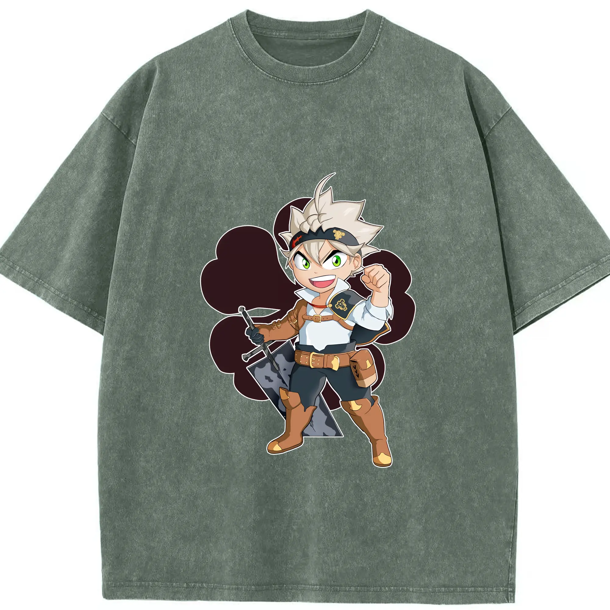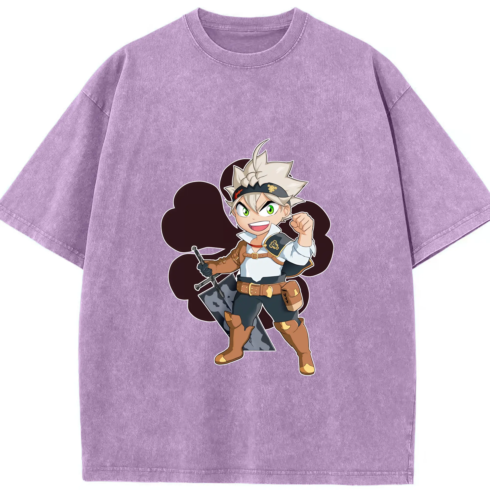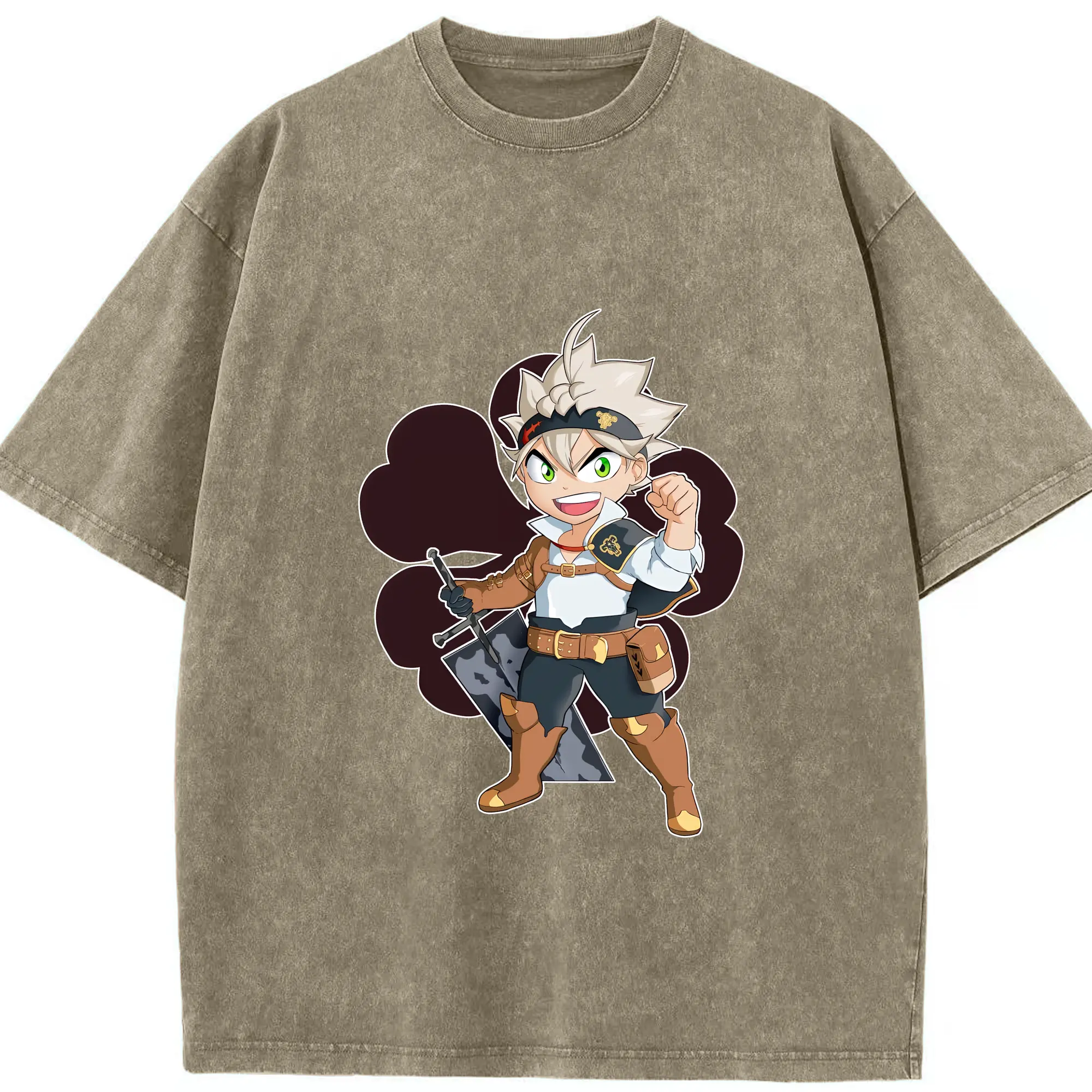 ブラッククローバー グッズ アスタ - 綿100% ヴィンテージ風 半袖Tシャツ ・ 背面プリント ・ 柔らか肌触り ・ 通気性 快適 ・ スポーツ カジュアル 外出用