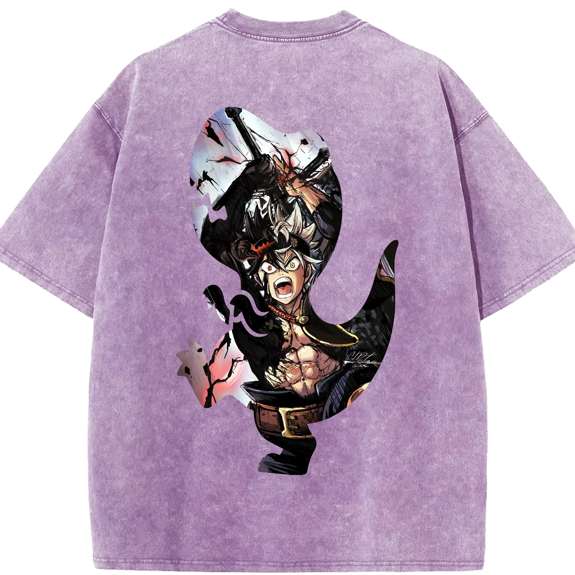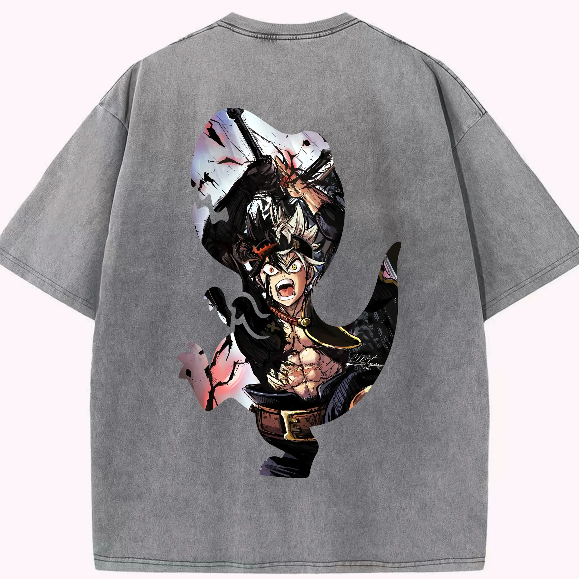 ブラッククローバー グッズ アスタ - 綿100% ヴィンテージ風 半袖Tシャツ ・ フロントプリント ・ 柔らか肌触り ・ 通気性 快適 ・ スポーツ カジュアル 外出用