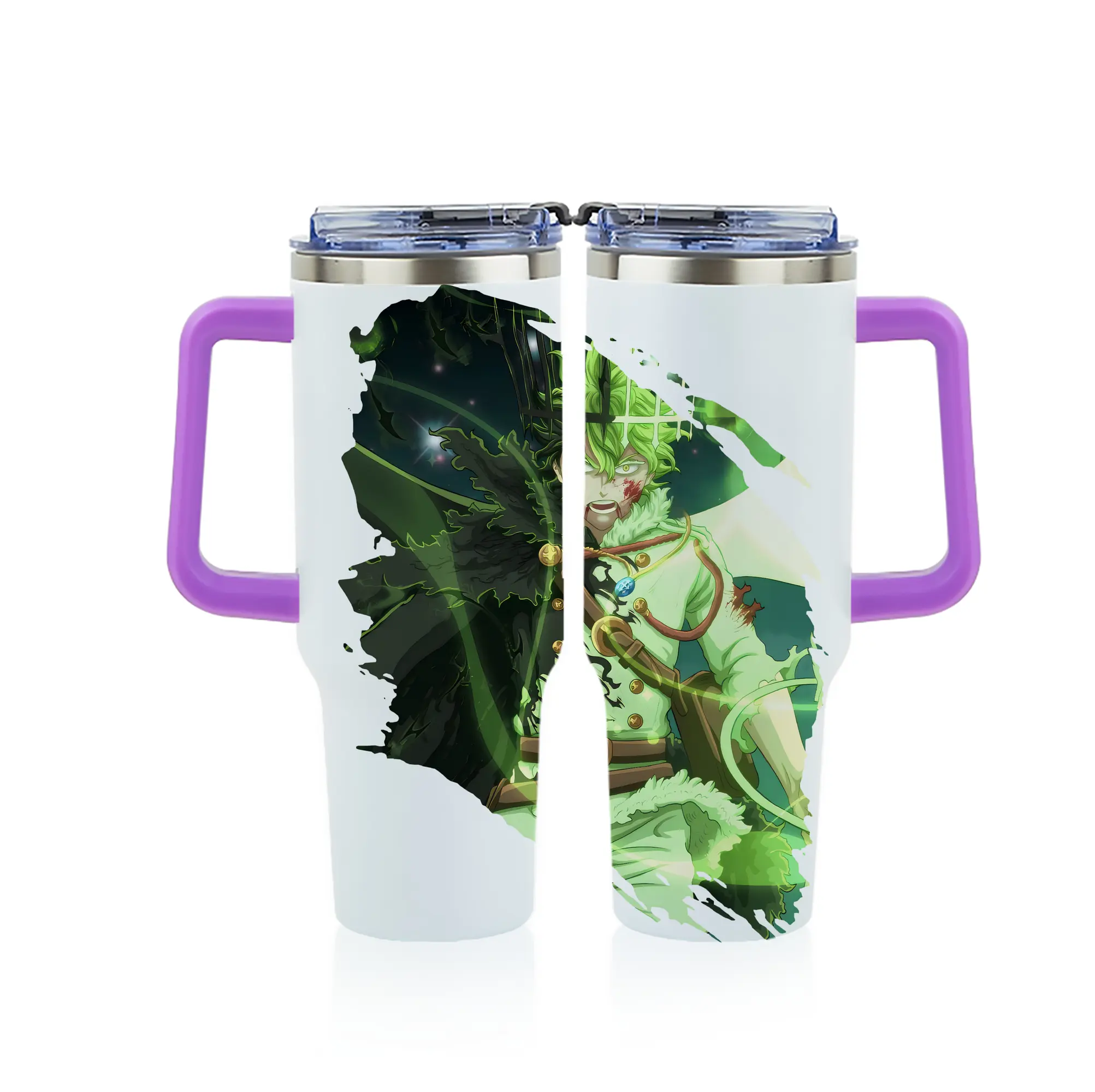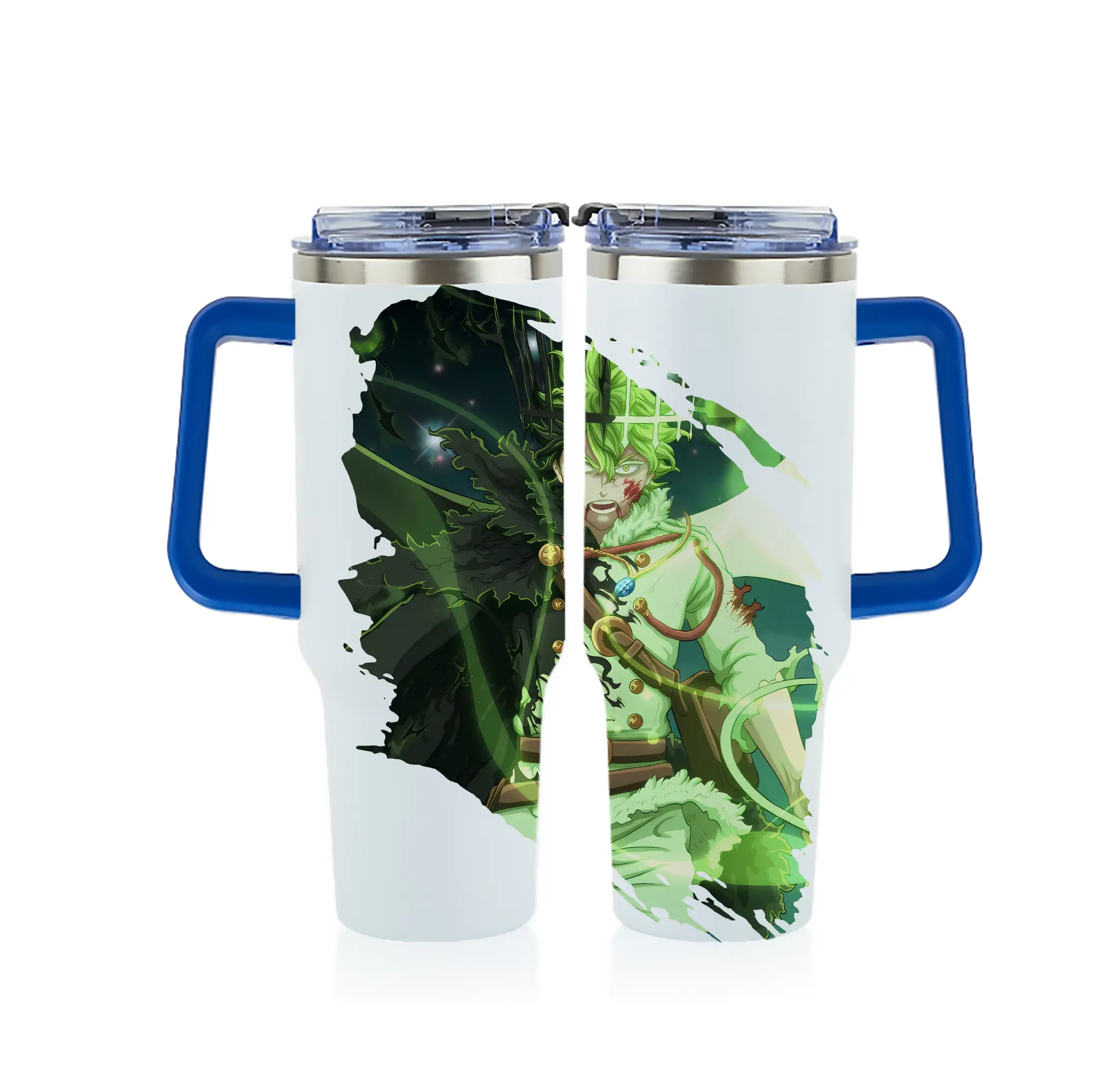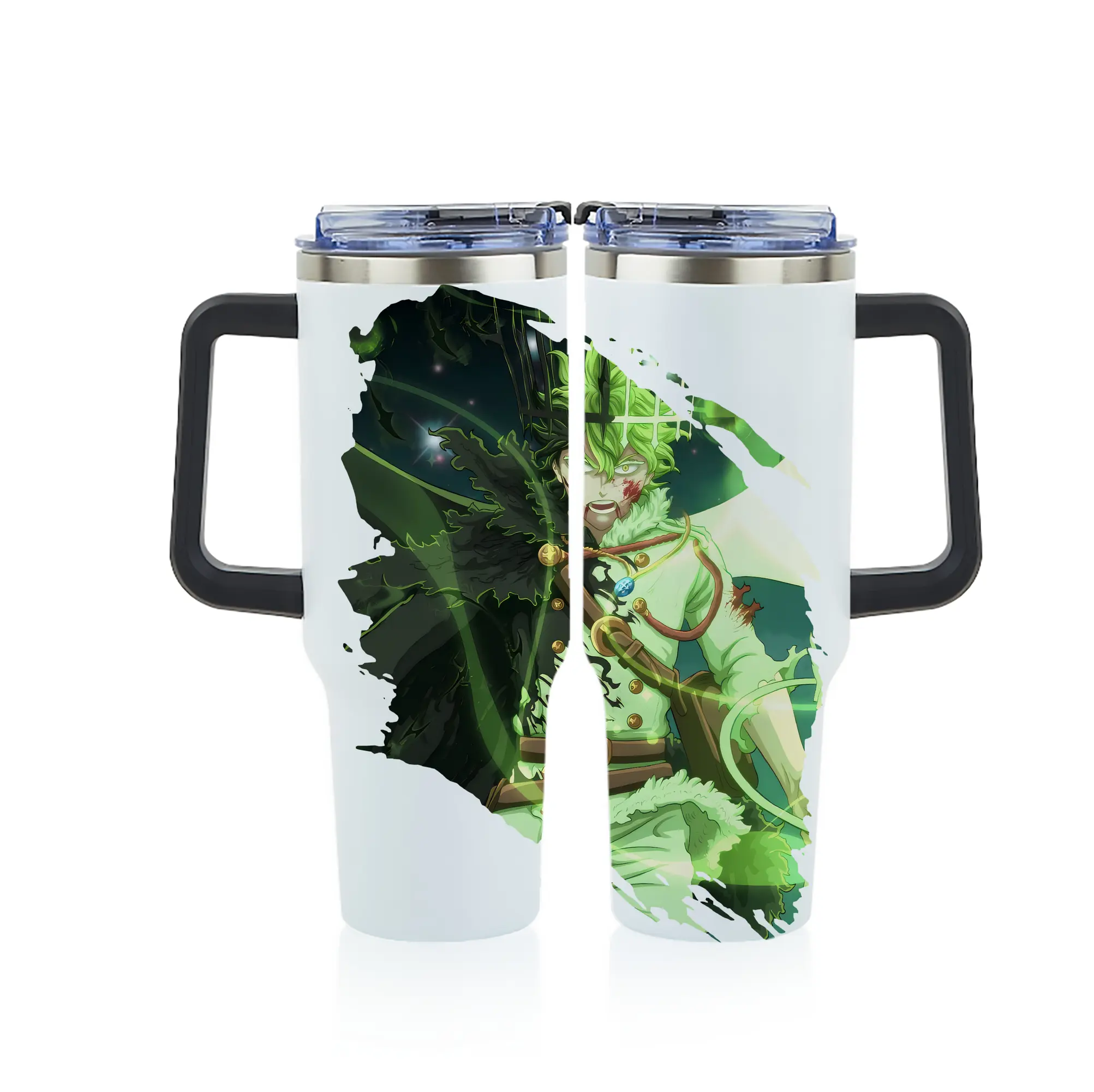 ブラッククローバー グッズ ユノ・グリンベリオール - 1200mL フルプリント車用タンブラー ・ 304ステンレス 内側 ・ 201ステンレス 外側 ・ 保温 保冷 ・ 通勤 ドライブ アウトドア用