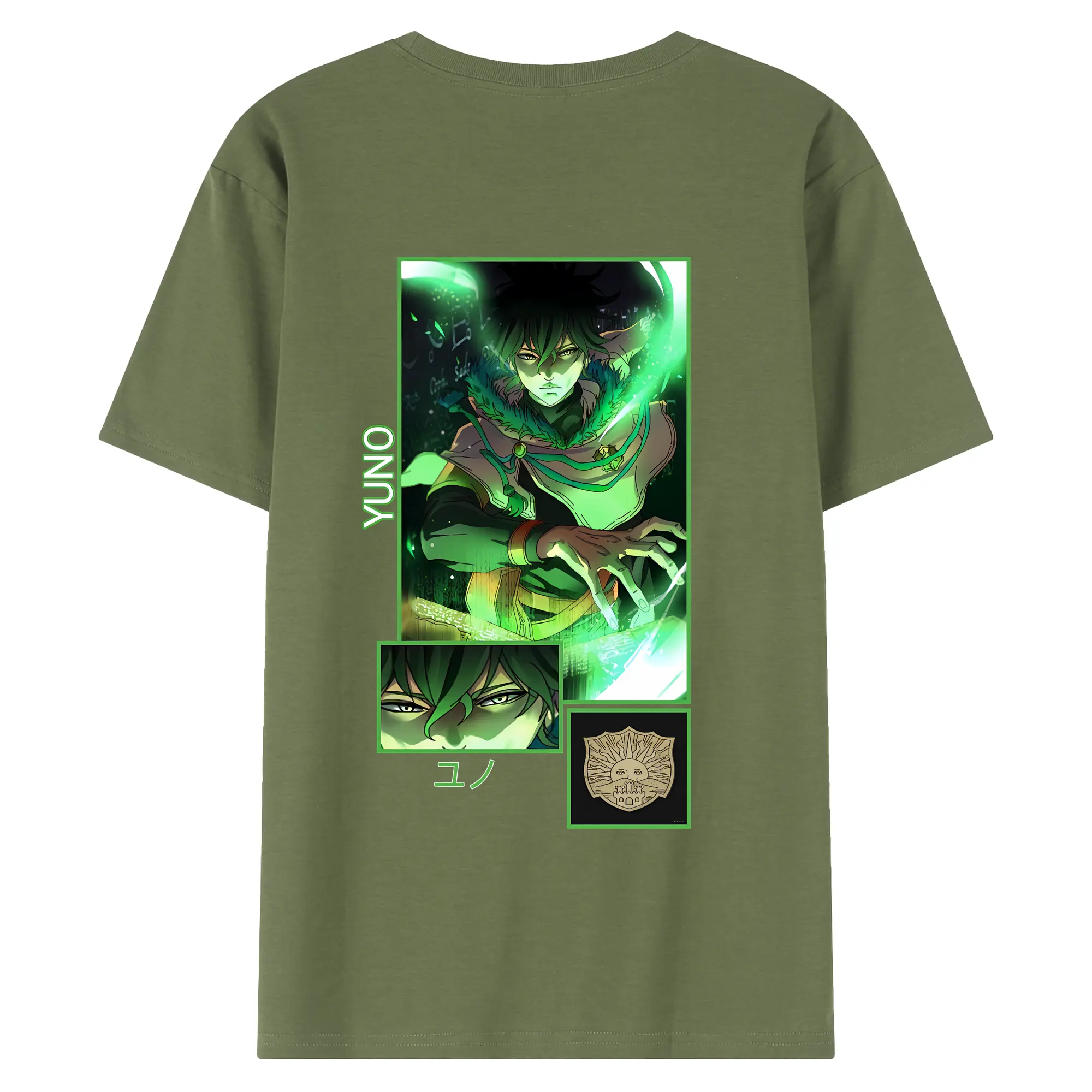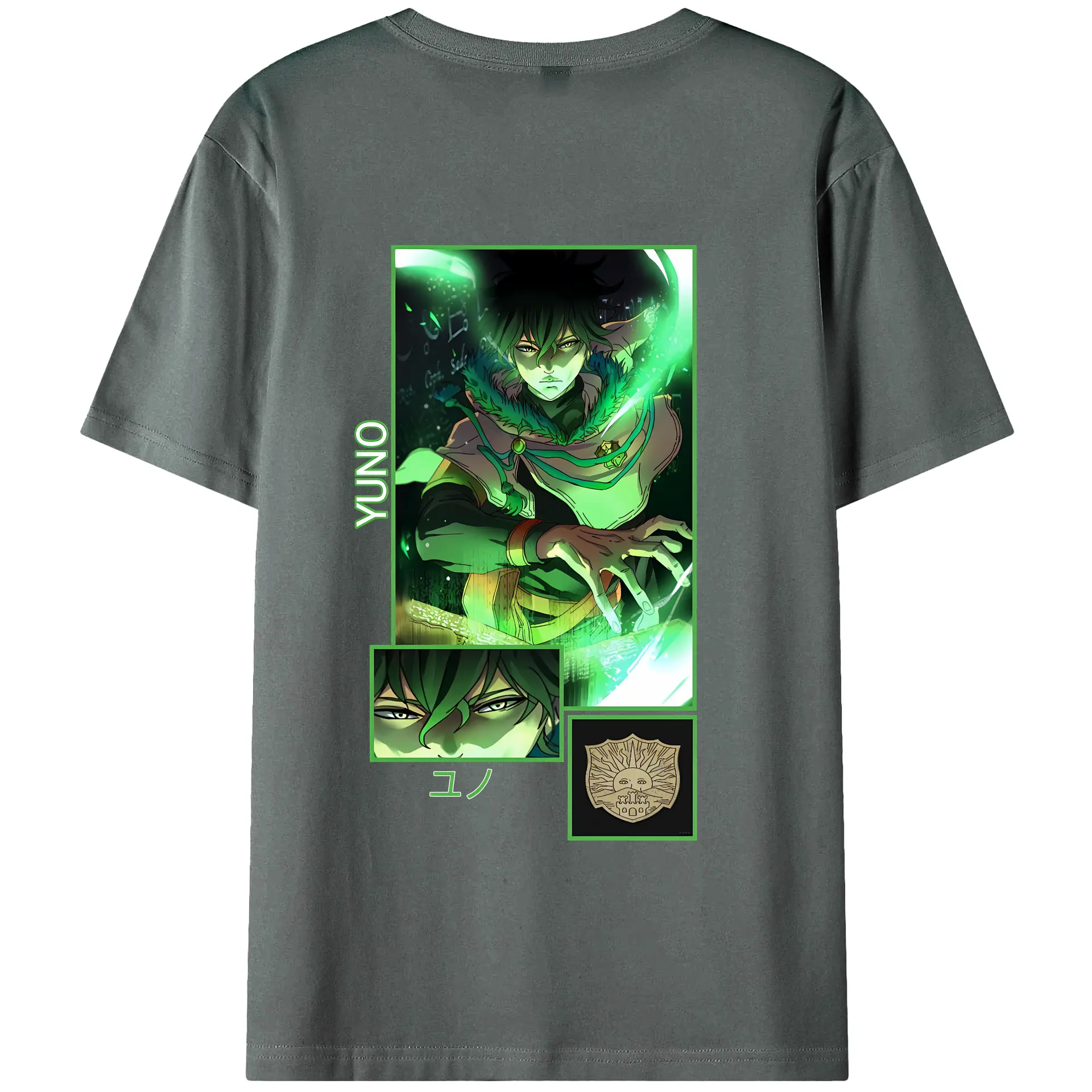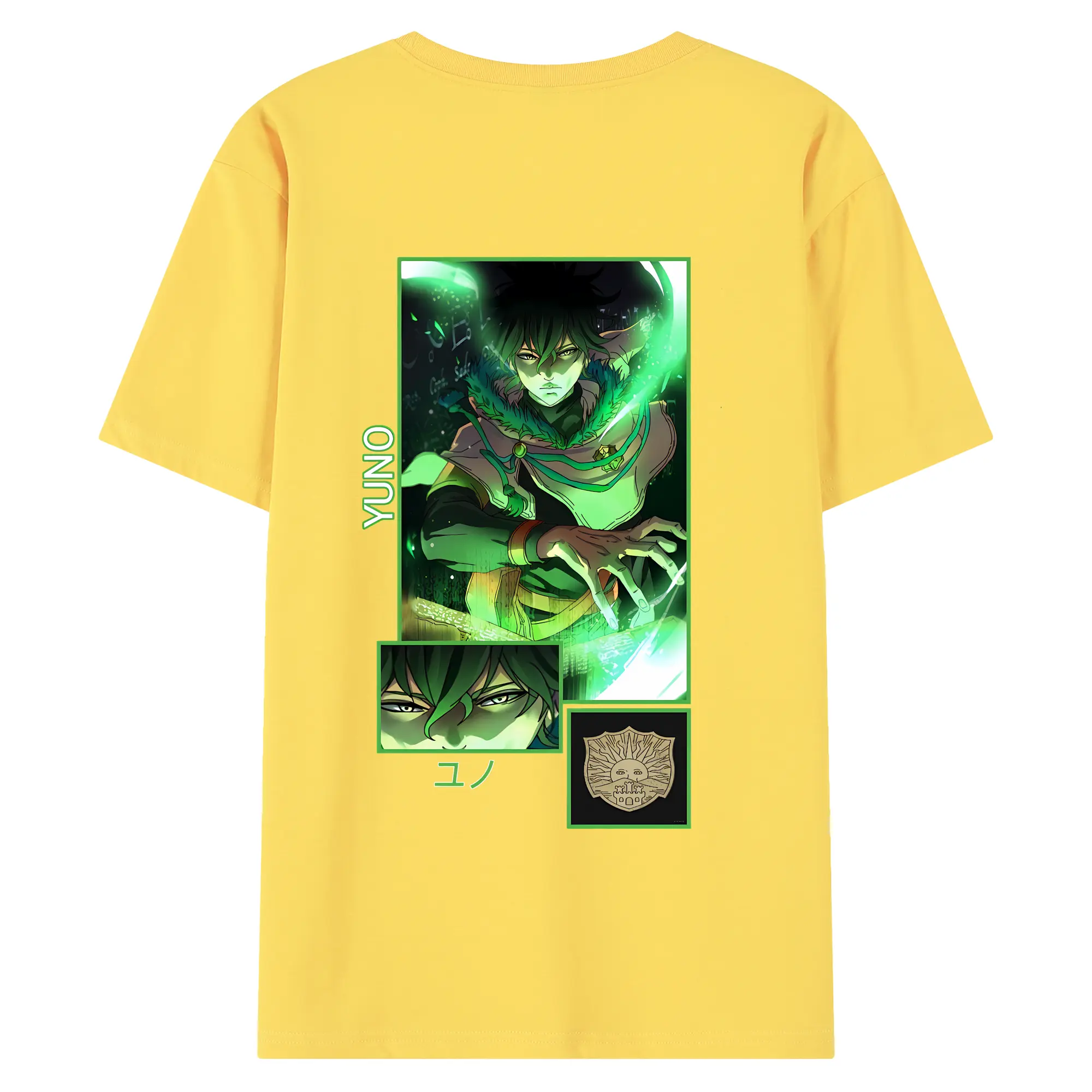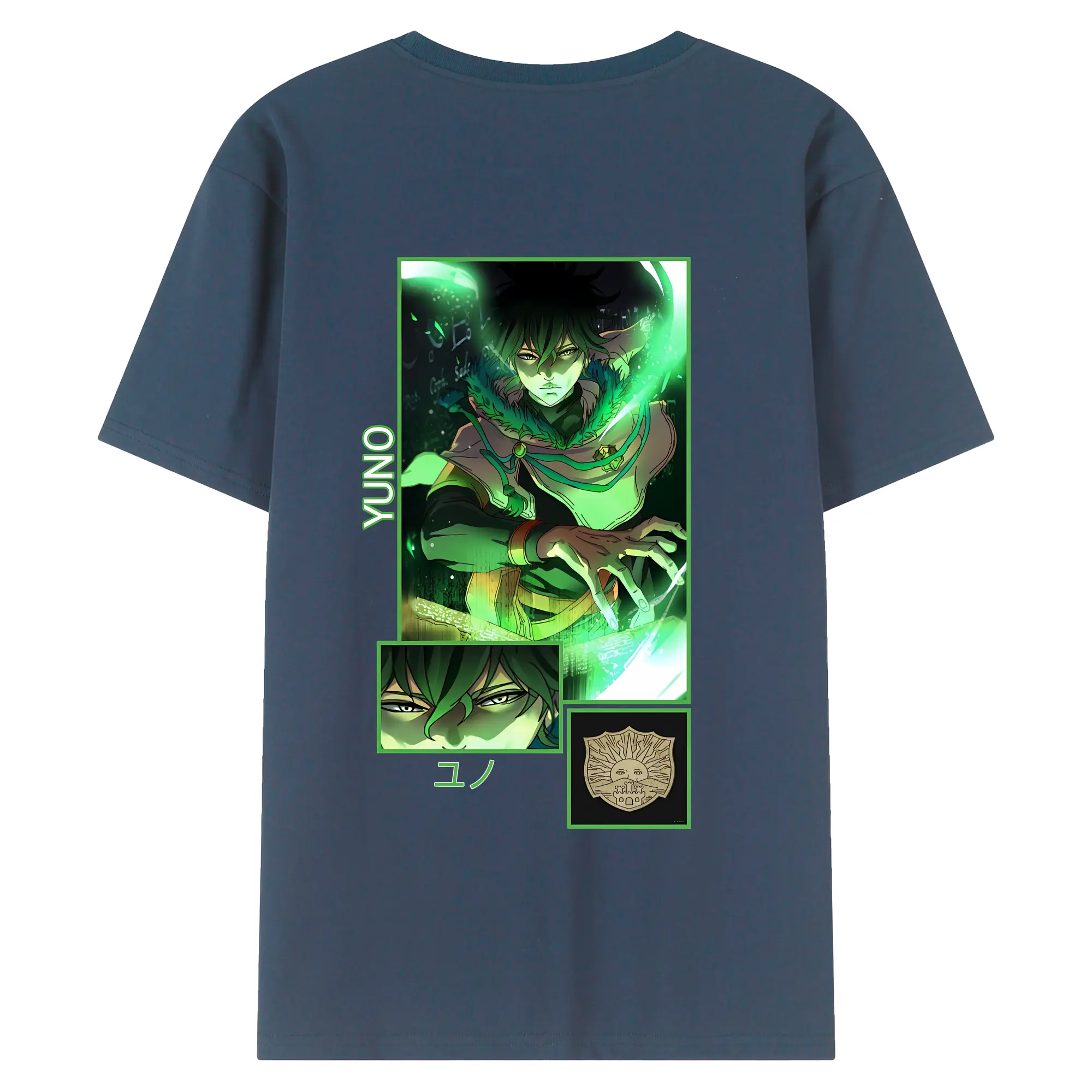 ブラッククローバー グッズ ユノ・グリンベリオール - 綿100% ヴィンテージ風 半袖Tシャツ ・ 背面プリント ・ 柔らか肌触り ・ 通気性 快適 ・ スポーツ カジュアル 外出用