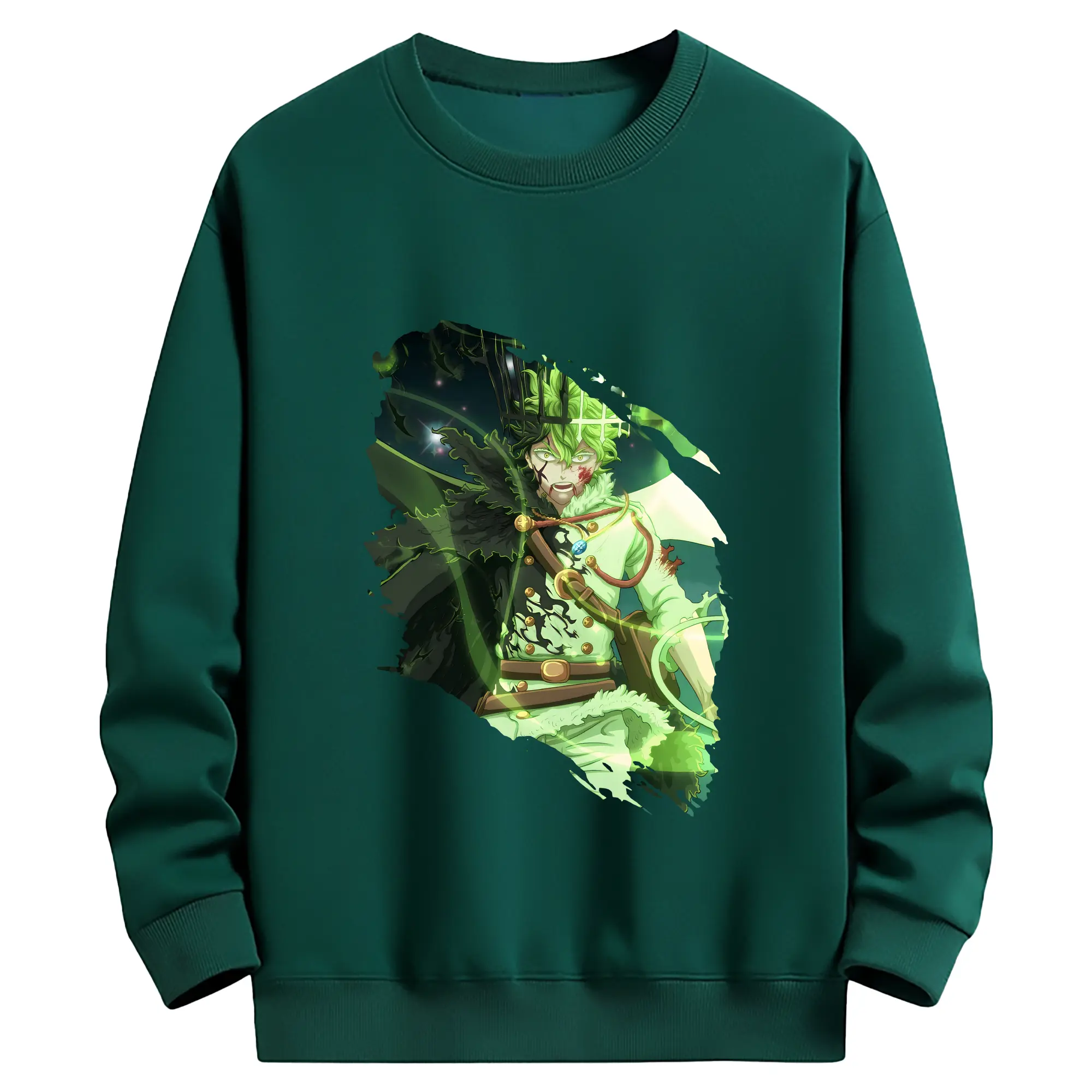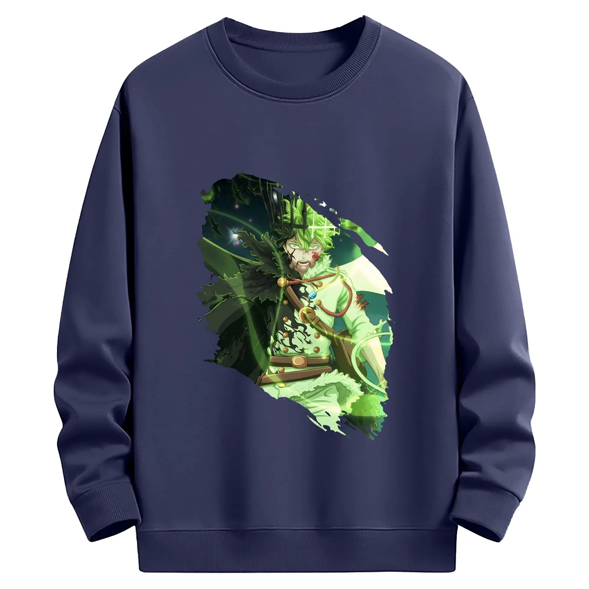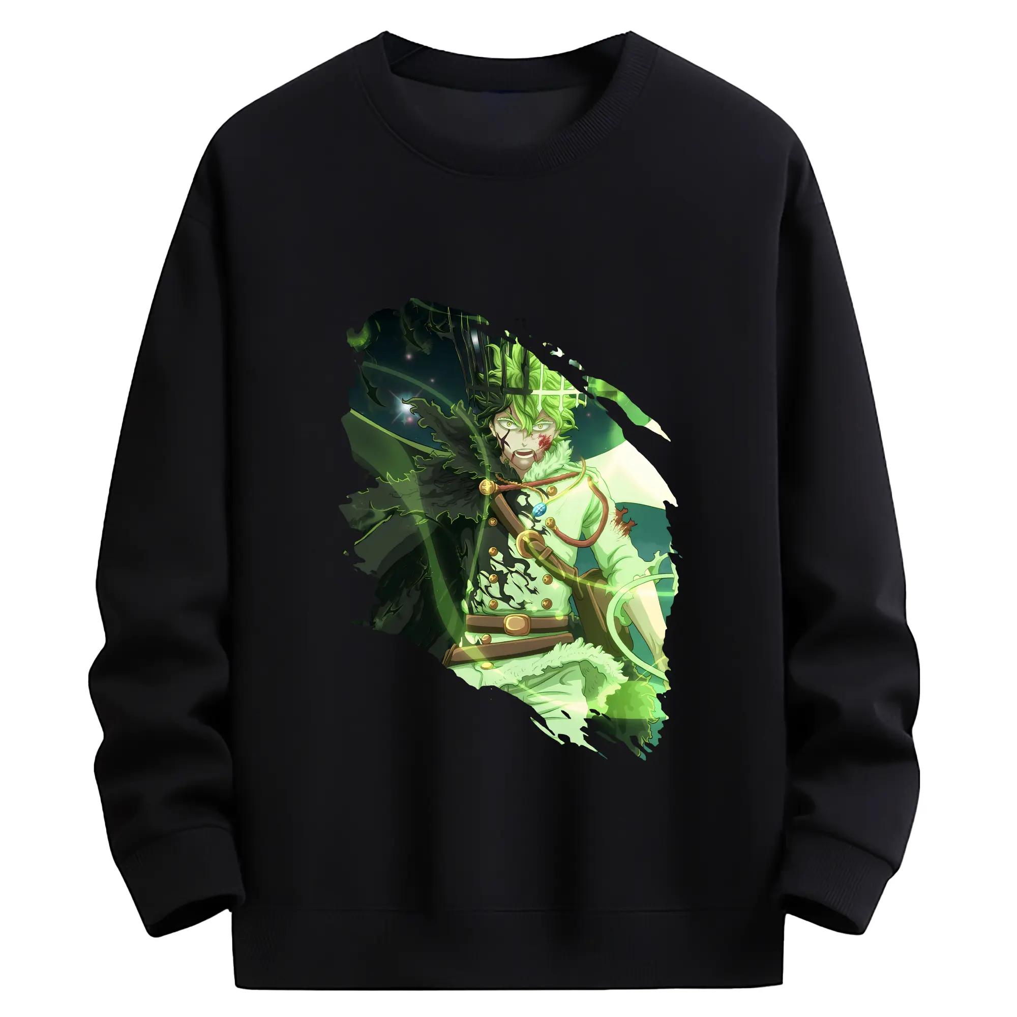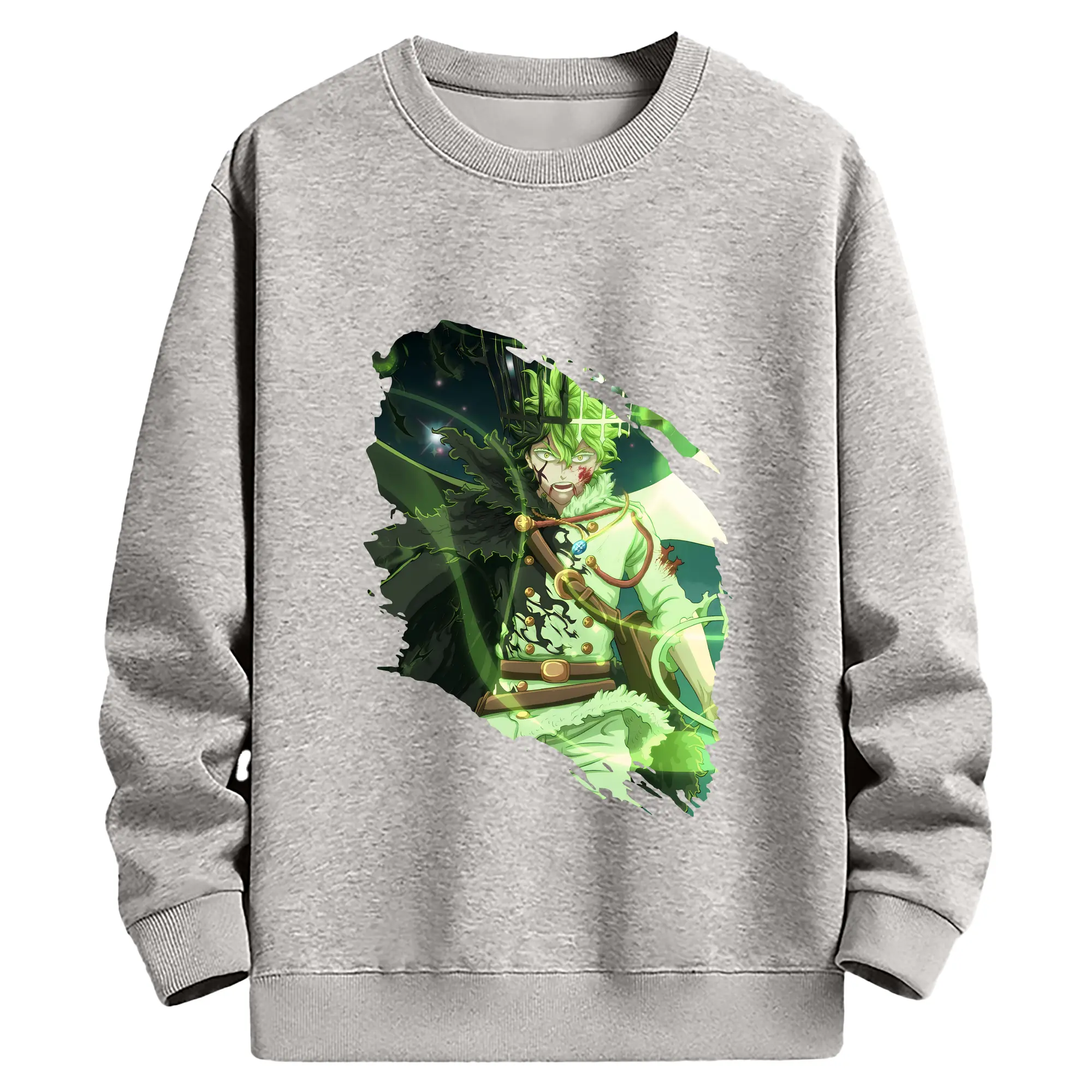 ブラッククローバー グッズ ユノ・グリンベリオール - 薄手 クルーネック スウェット 裏毛260g · ポリエステル 春秋向け カジュアル 男女兼用 · トレーナー デイリー スポーツ 散歩に最適