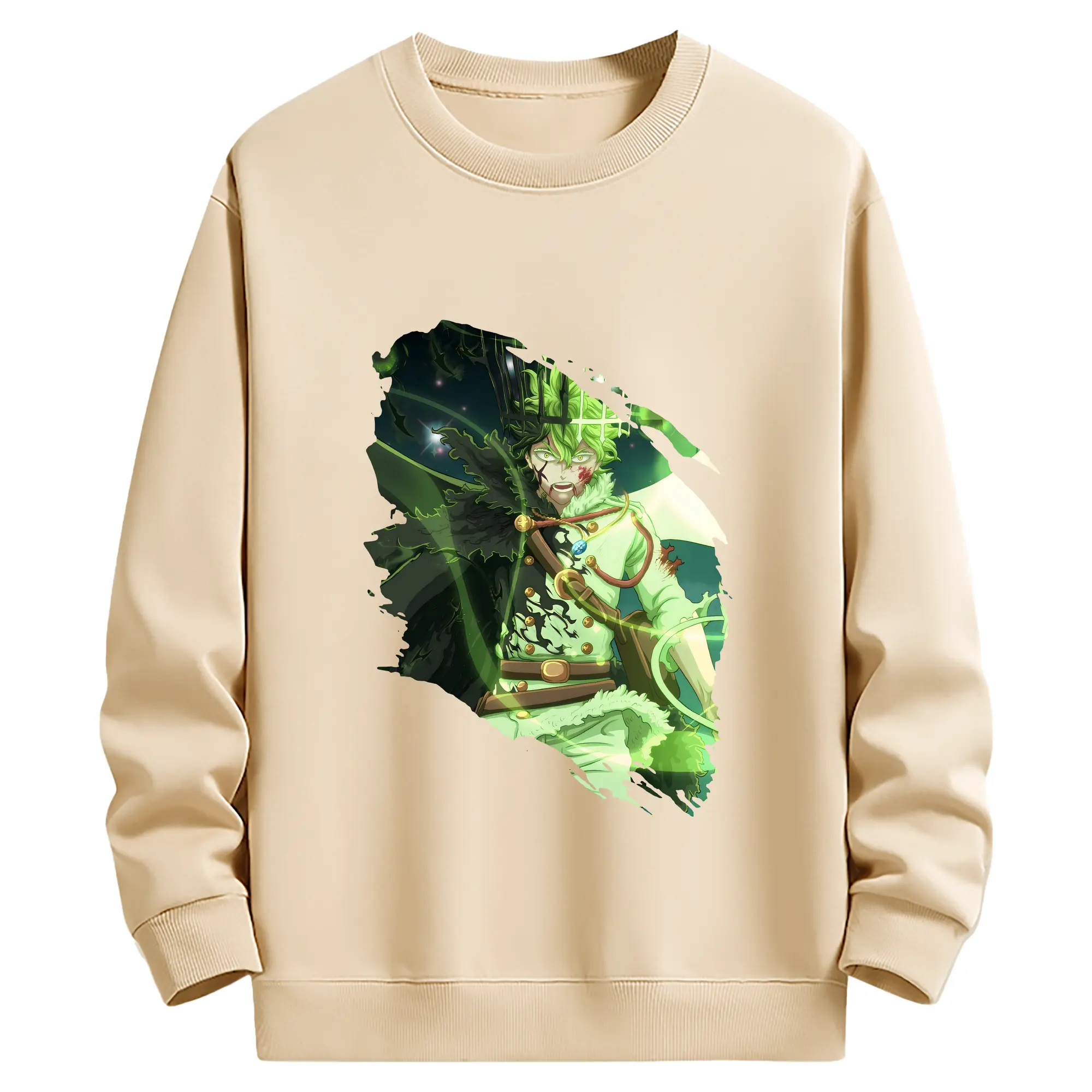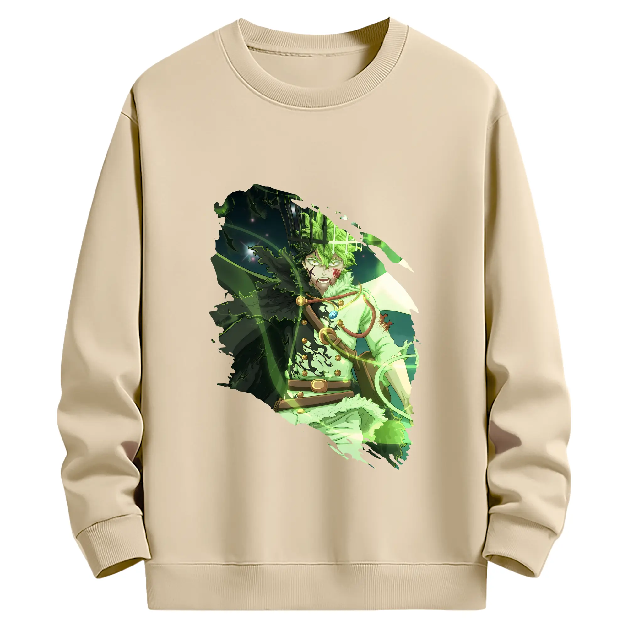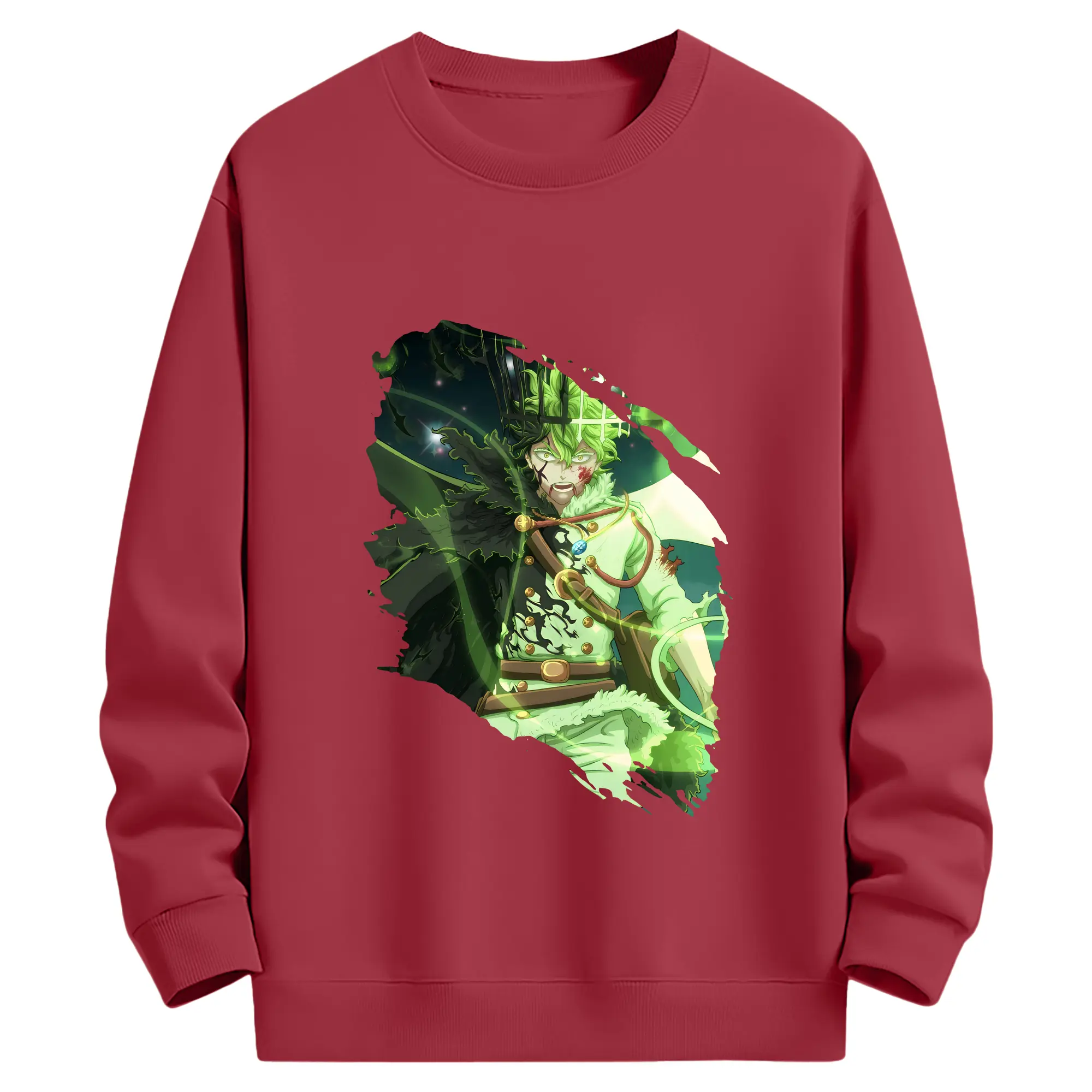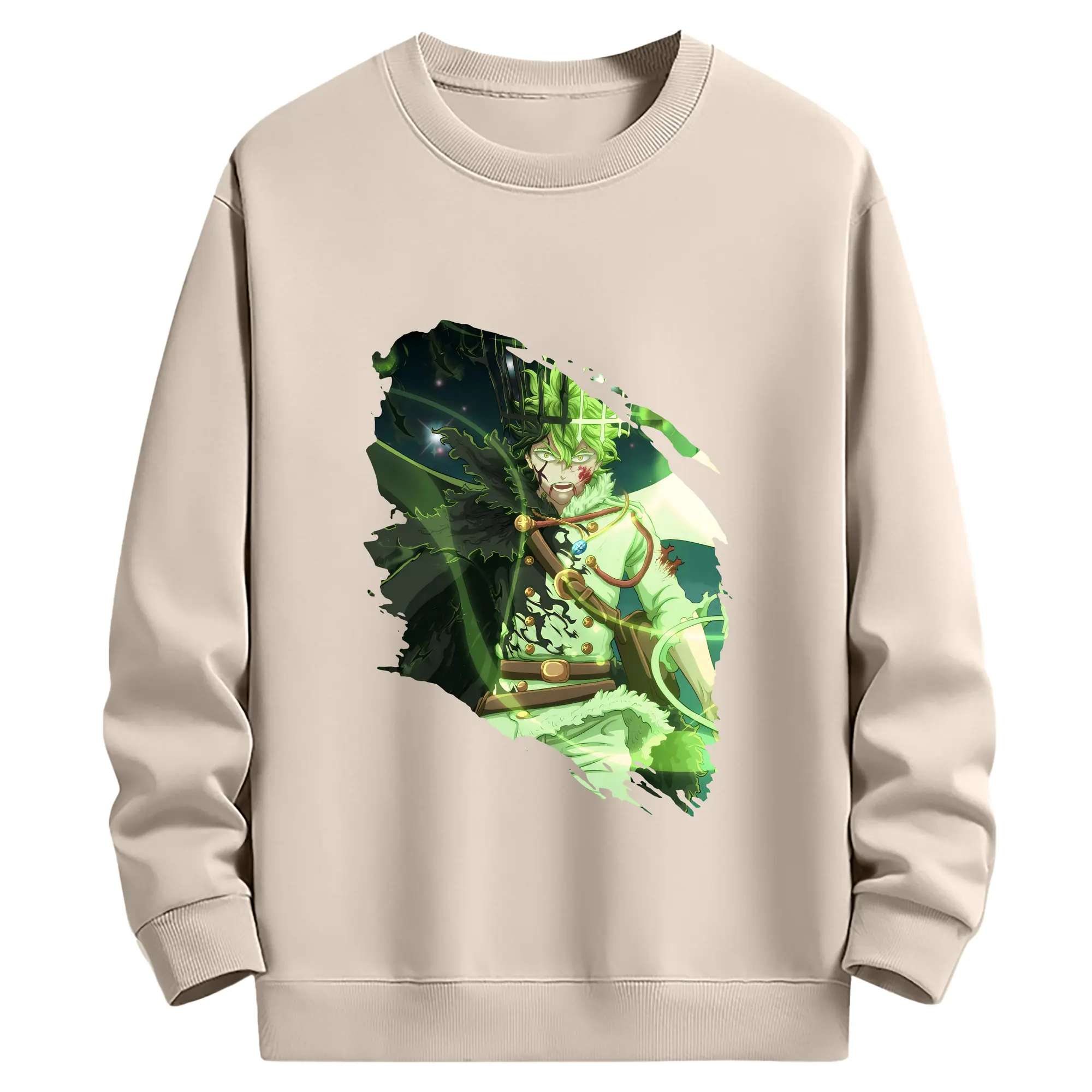 ブラッククローバー グッズ ユノ・グリンベリオール - 薄手 クルーネック スウェット 裏毛260g · ポリエステル 春秋向け カジュアル 男女兼用 · トレーナー デイリー スポーツ 散歩に最適