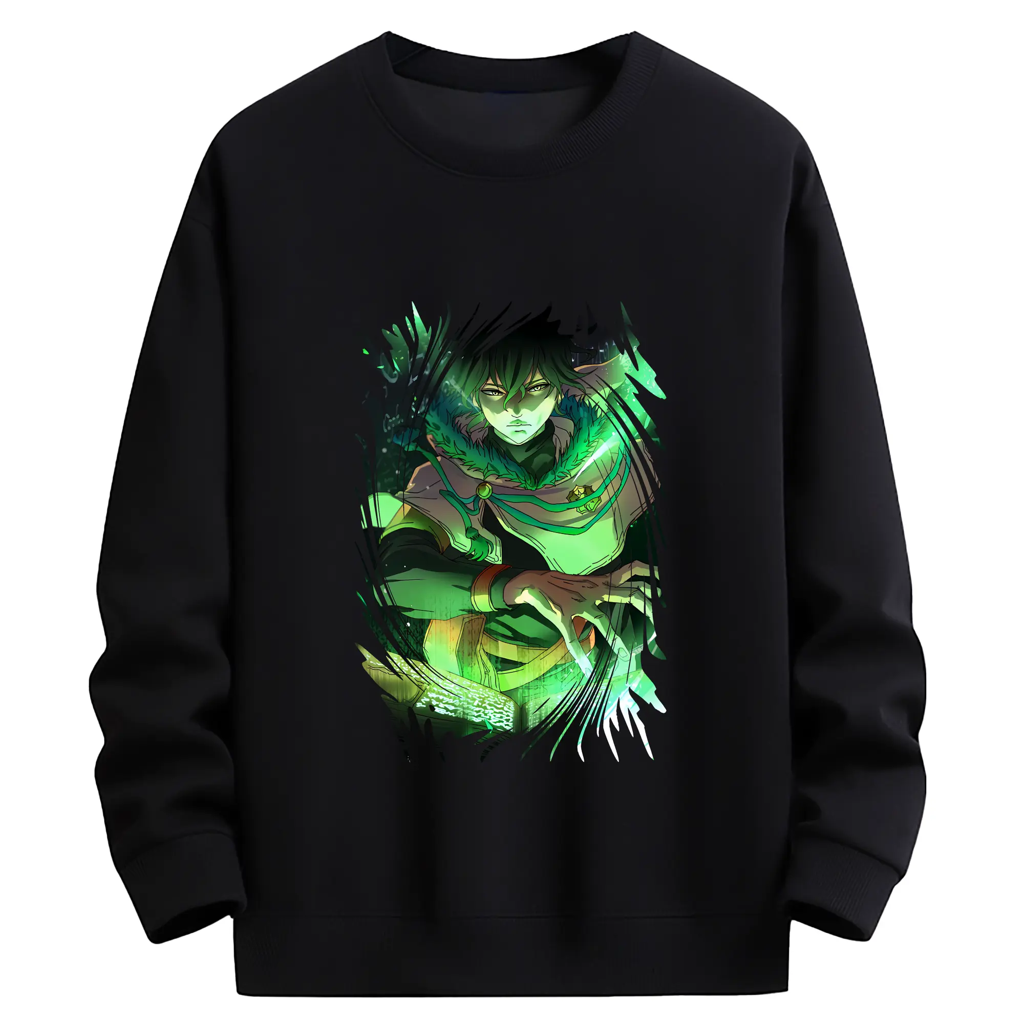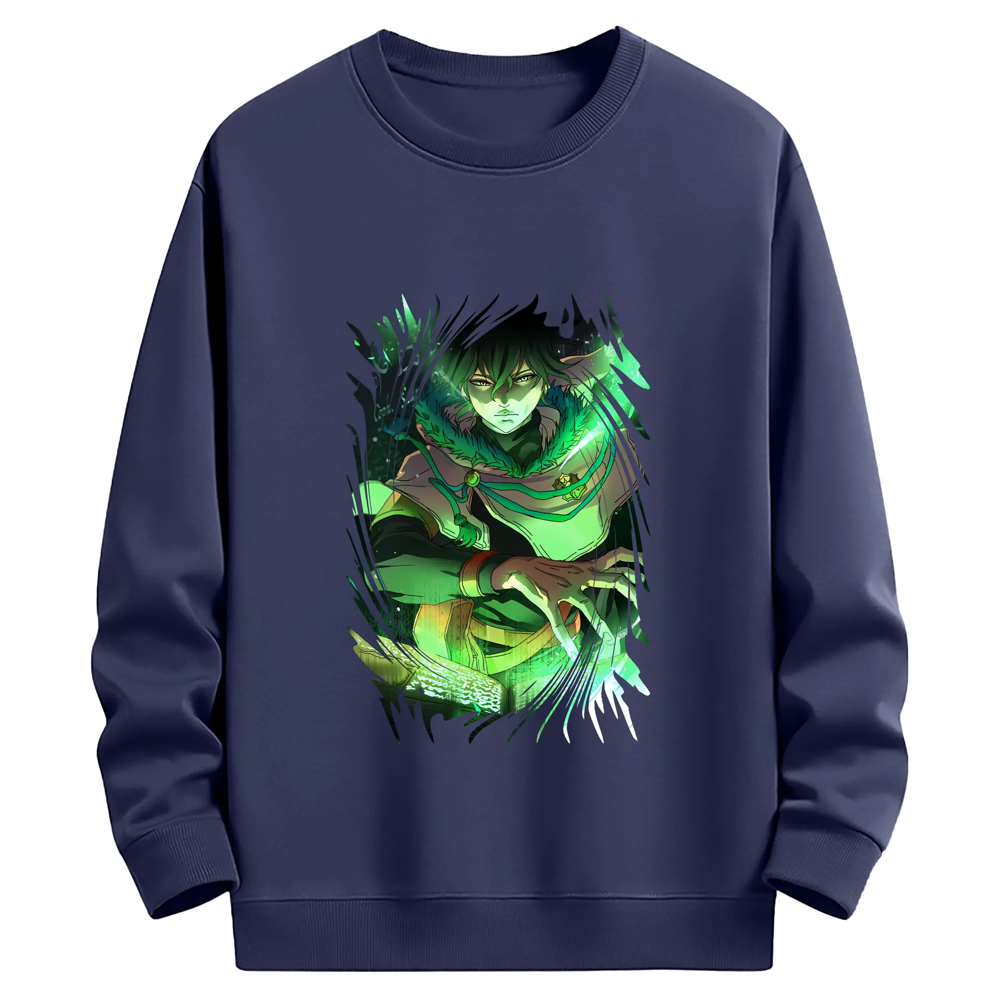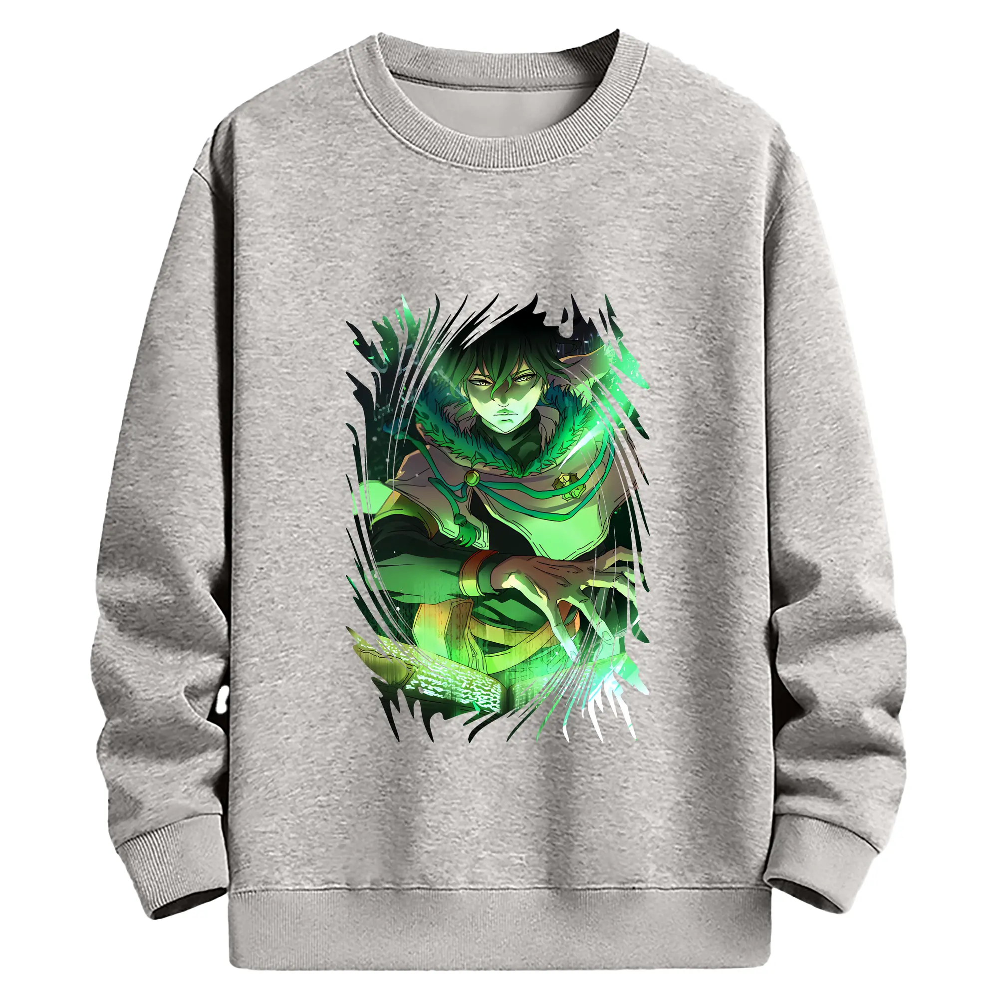 ブラッククローバー グッズ ユノ・グリンベリオール - 薄手 クルーネック スウェット 裏毛260g · ポリエステル 春秋向け カジュアル 男女兼用 · トレーナー デイリー スポーツ 散歩に最適