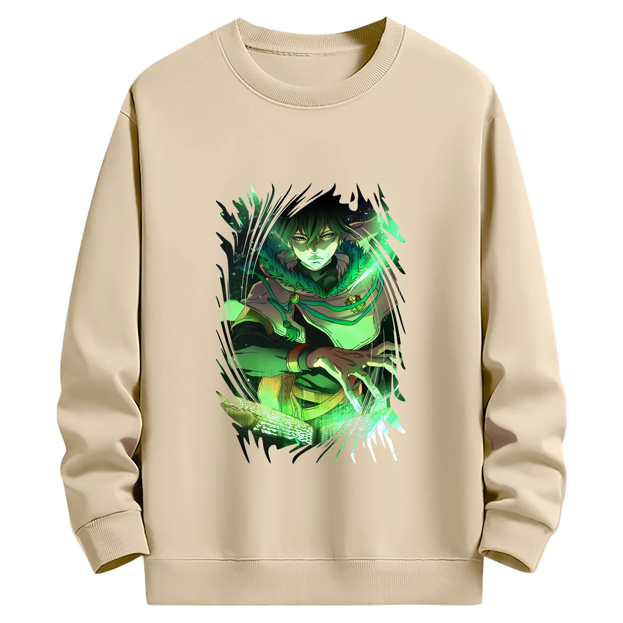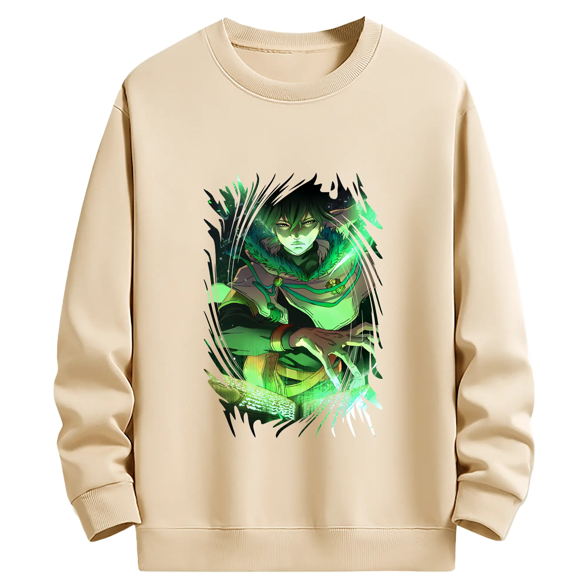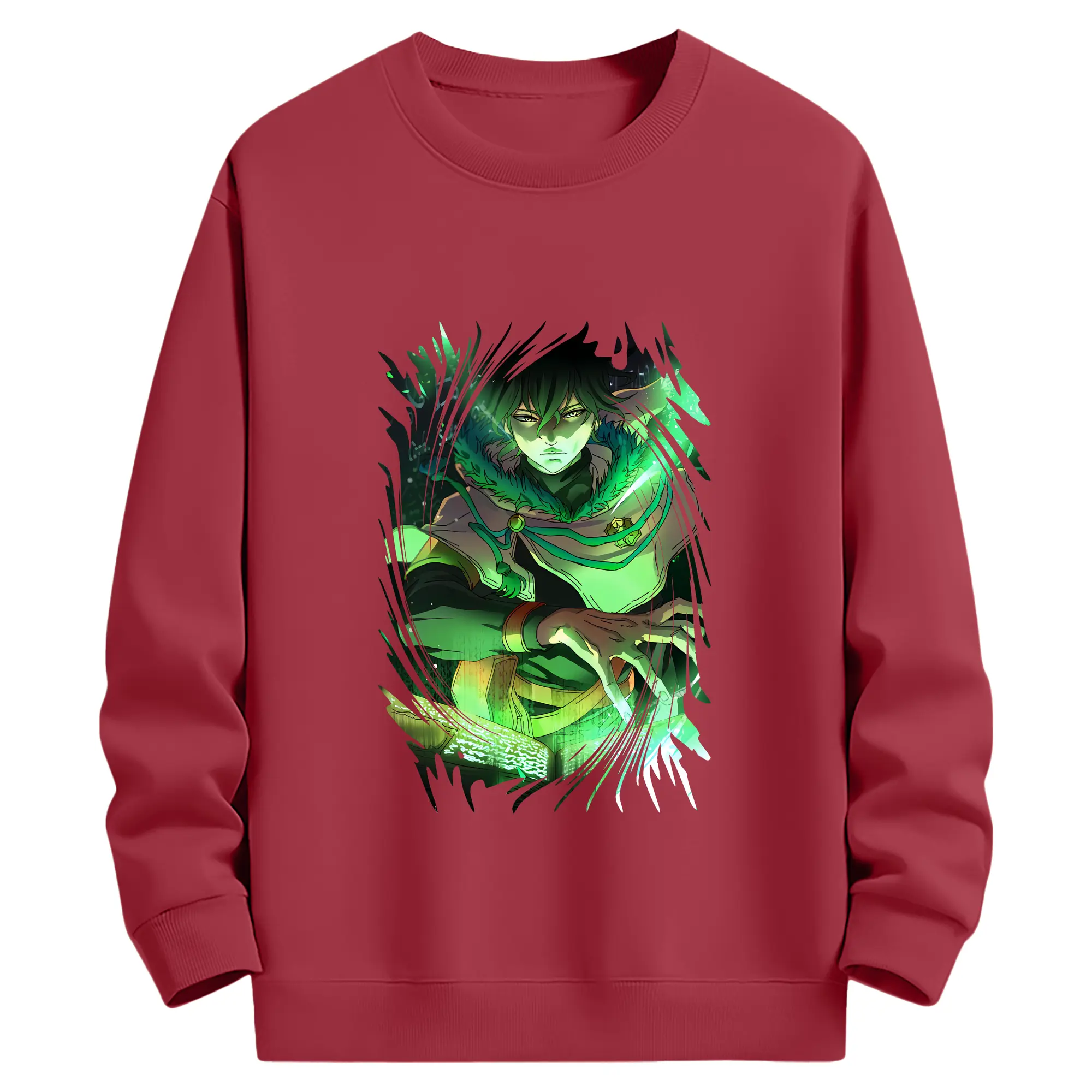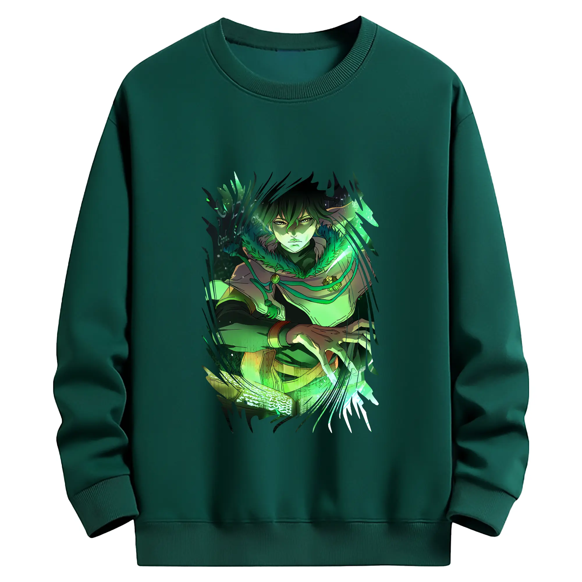 ブラッククローバー グッズ ユノ・グリンベリオール - 薄手 クルーネック スウェット 裏毛260g · ポリエステル 春秋向け カジュアル 男女兼用 · トレーナー デイリー スポーツ 散歩に最適