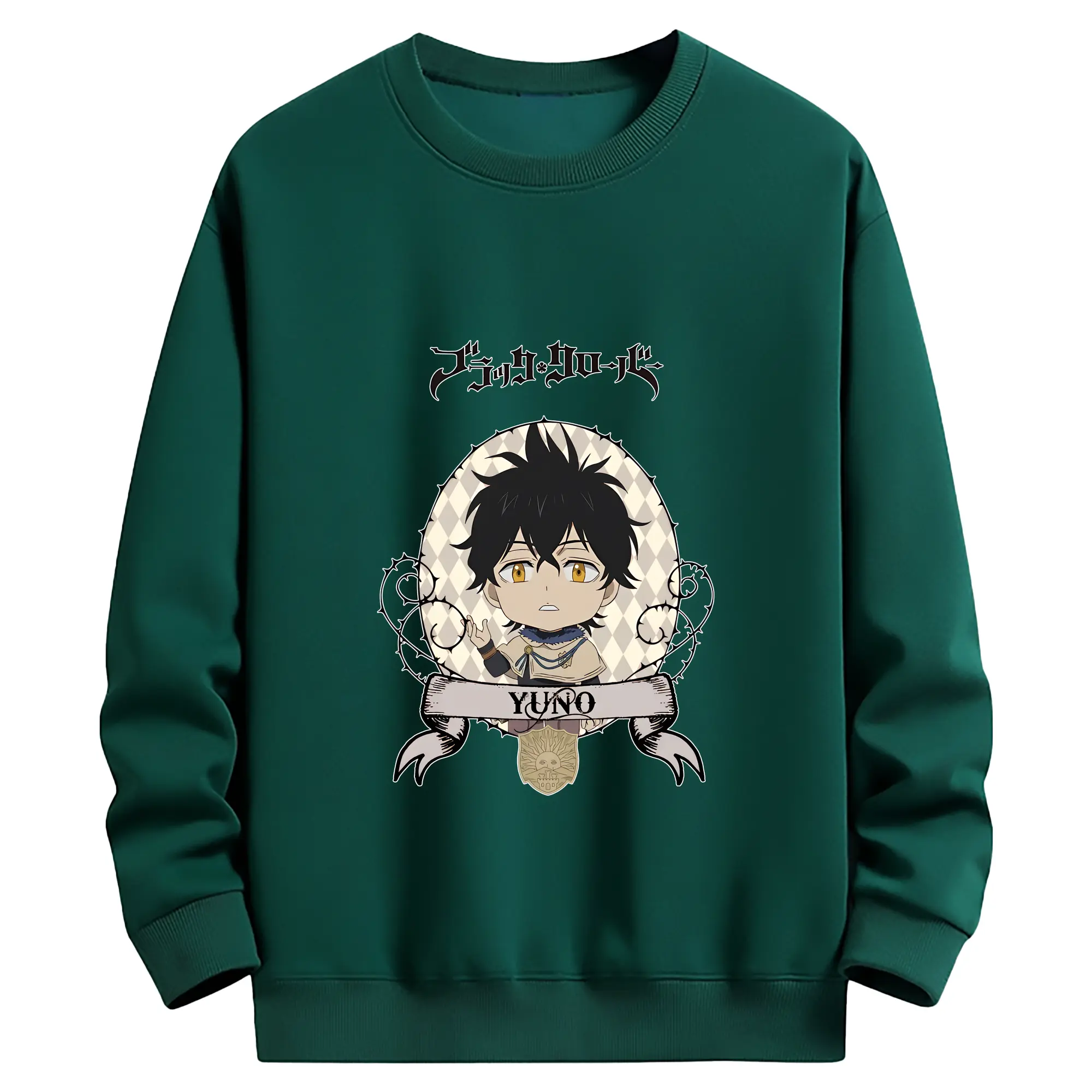 ブラッククローバー グッズ ユノ・グリンベリオール - 薄手 クルーネック スウェット 裏毛260g · ポリエステル 春秋向け カジュアル 男女兼用 · トレーナー デイリー スポーツ 散歩に最適