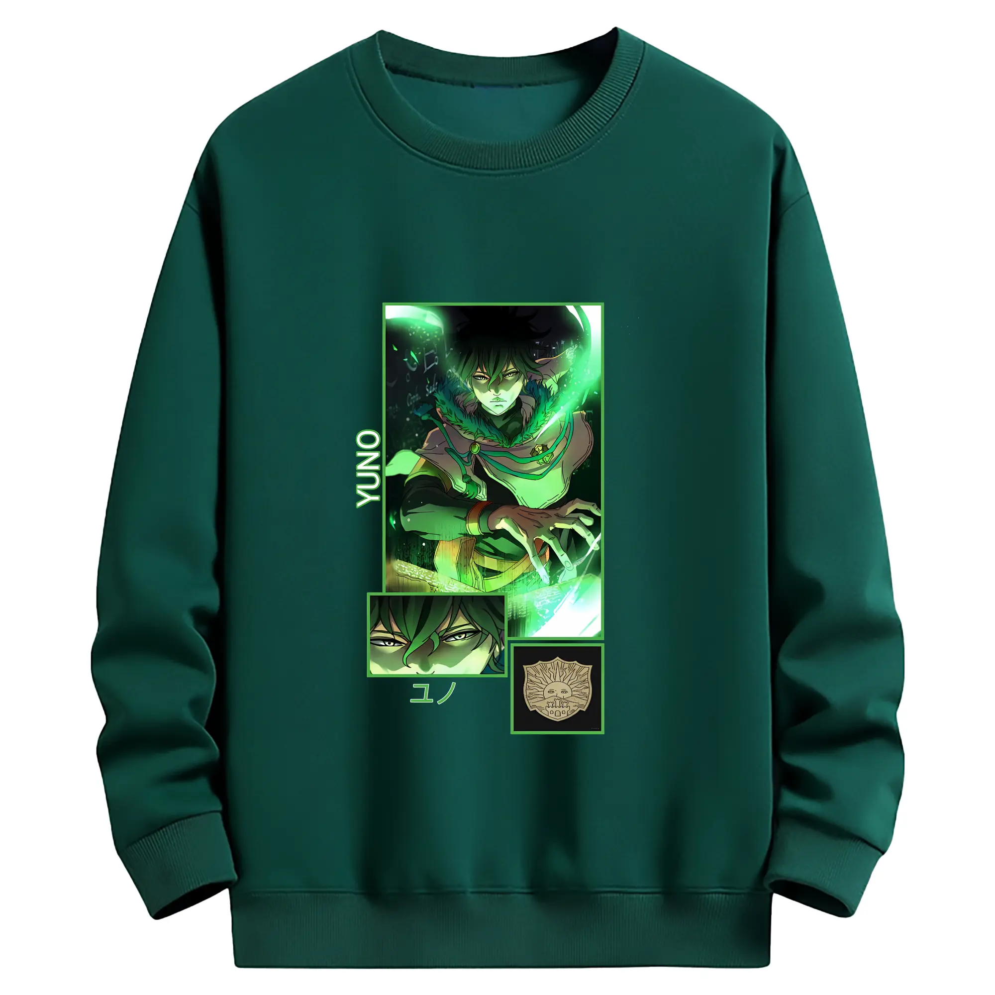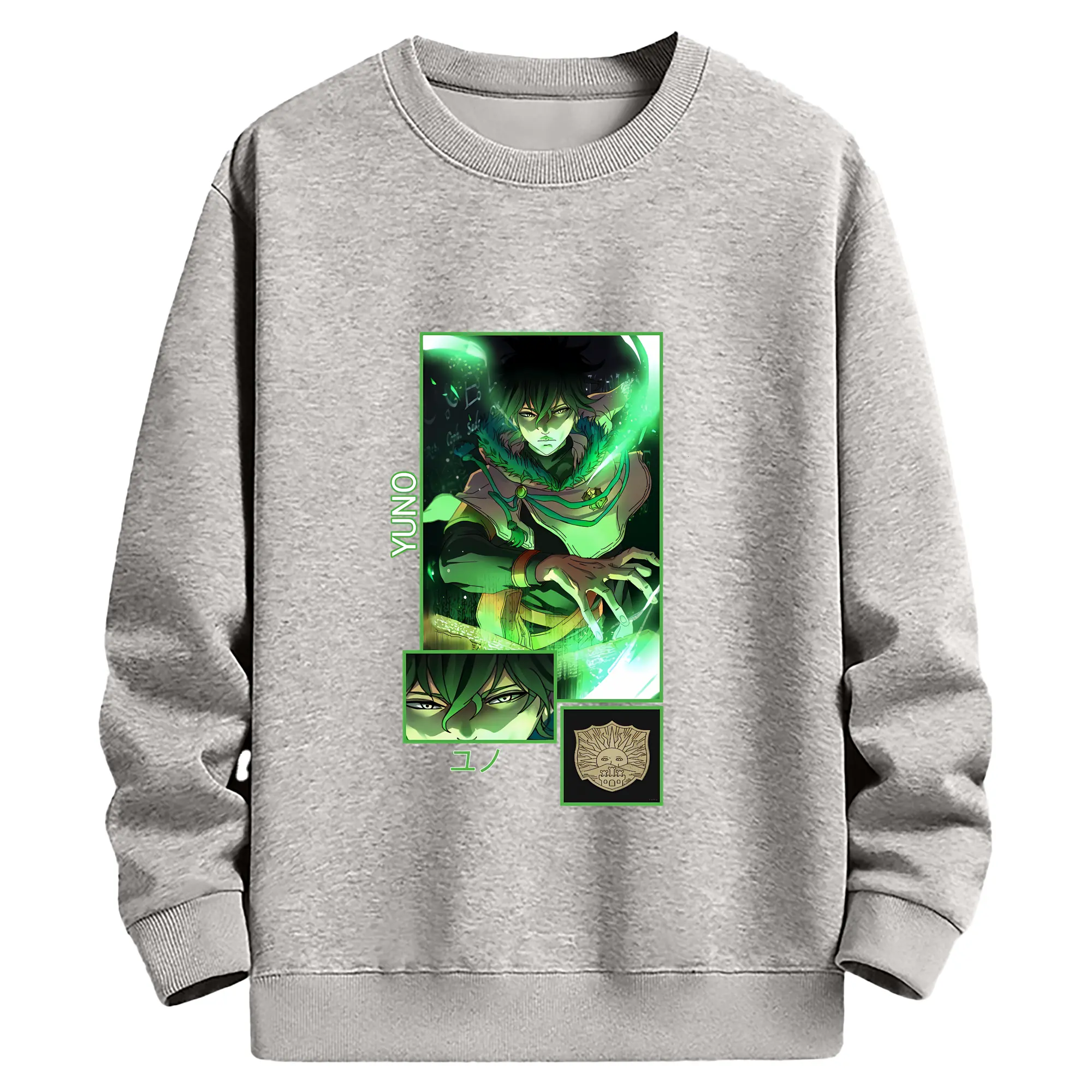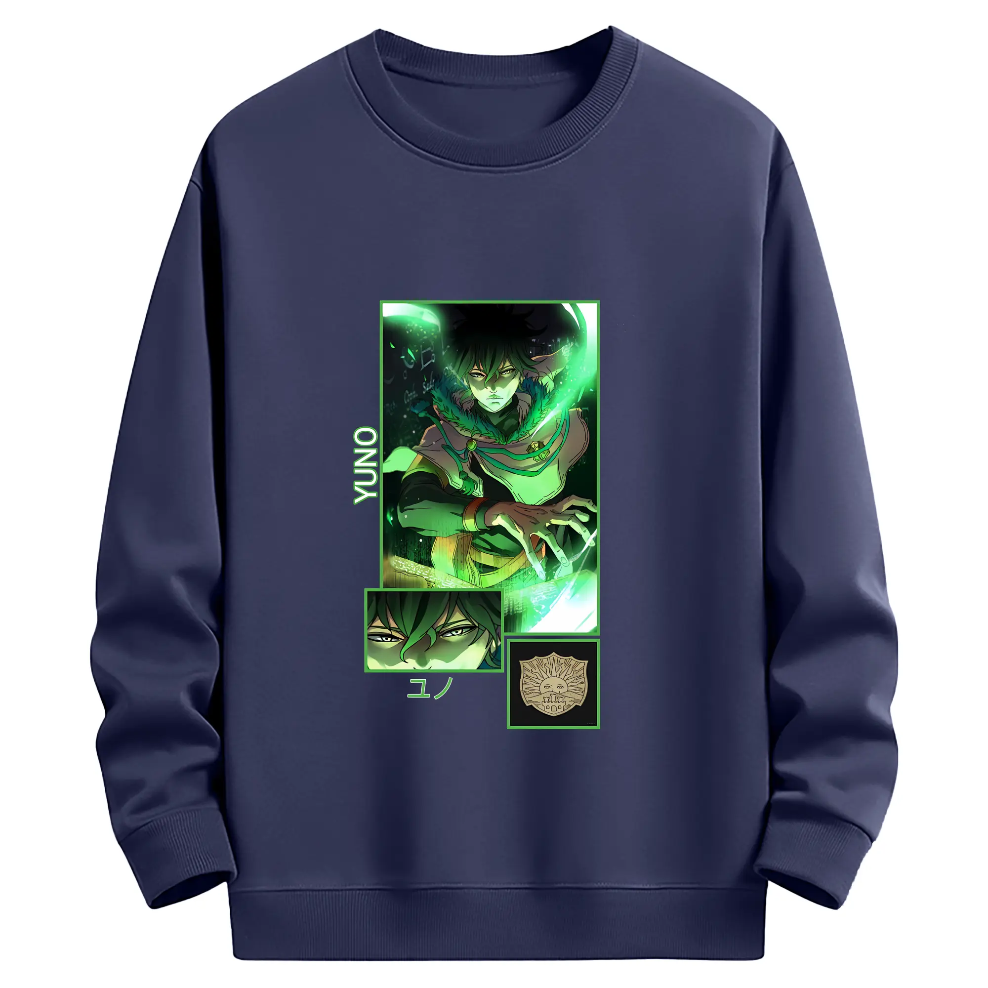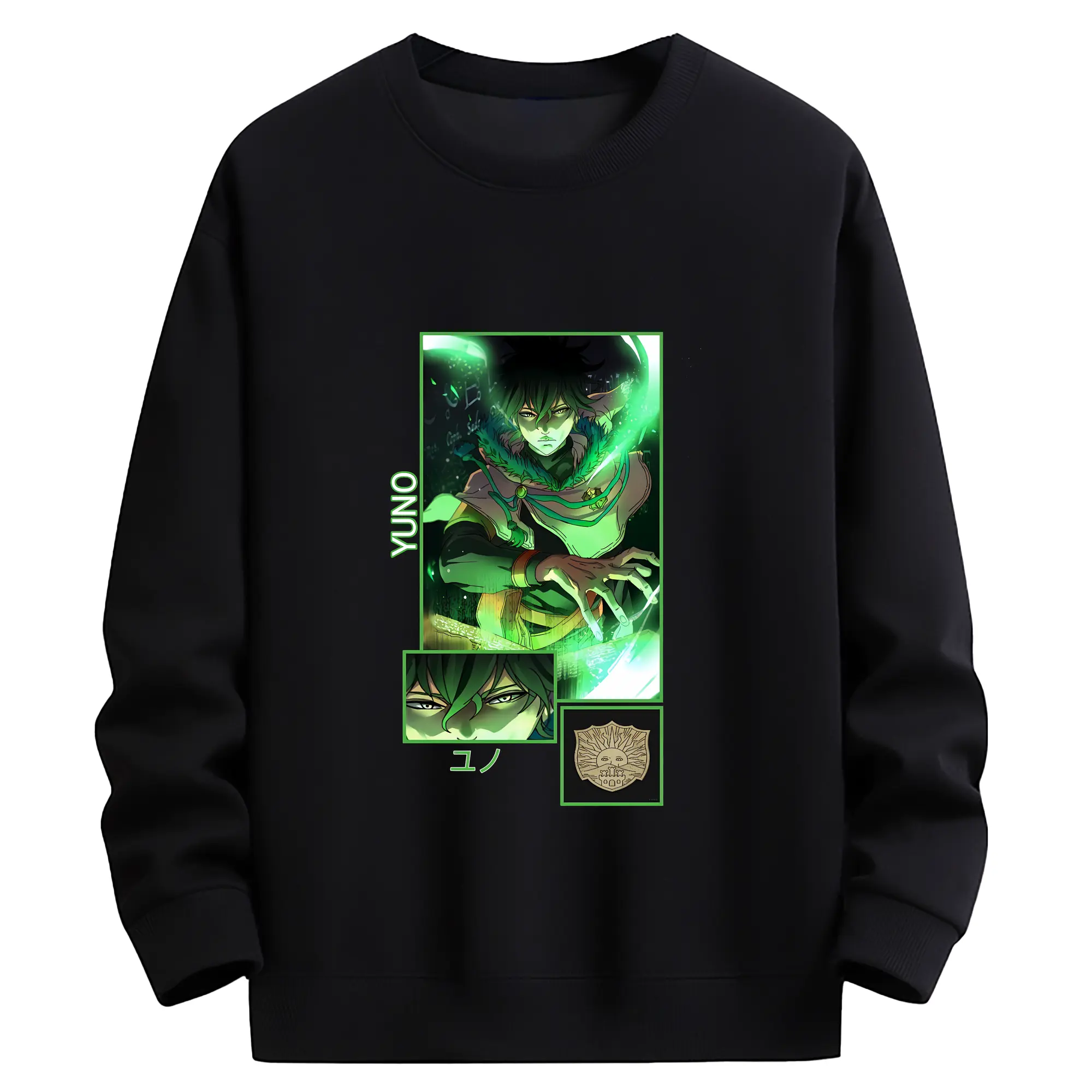 ブラッククローバー グッズ ユノ・グリンベリオール - 薄手 クルーネック スウェット 裏毛260g · ポリエステル 春秋向け カジュアル 男女兼用 · トレーナー デイリー スポーツ 散歩に最適