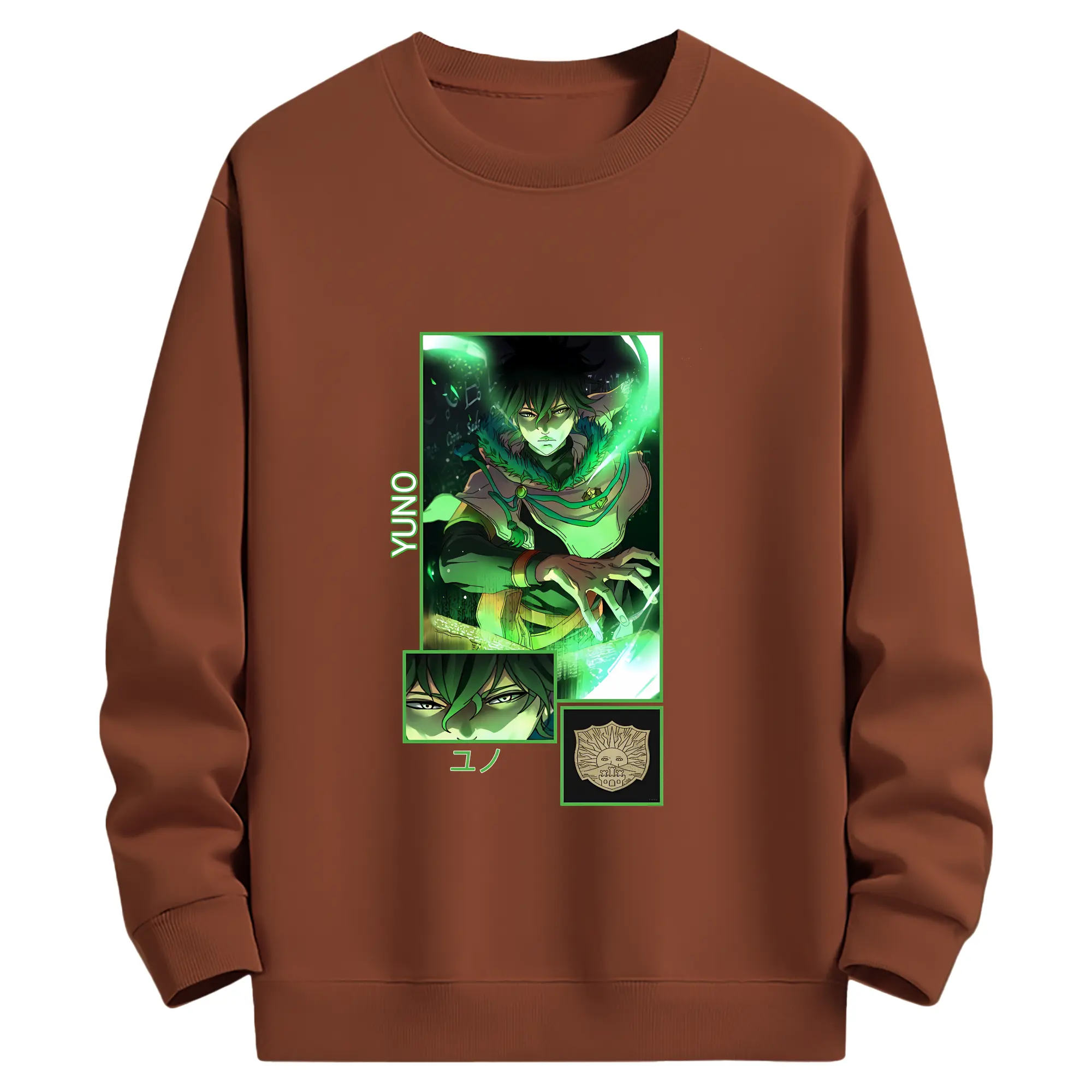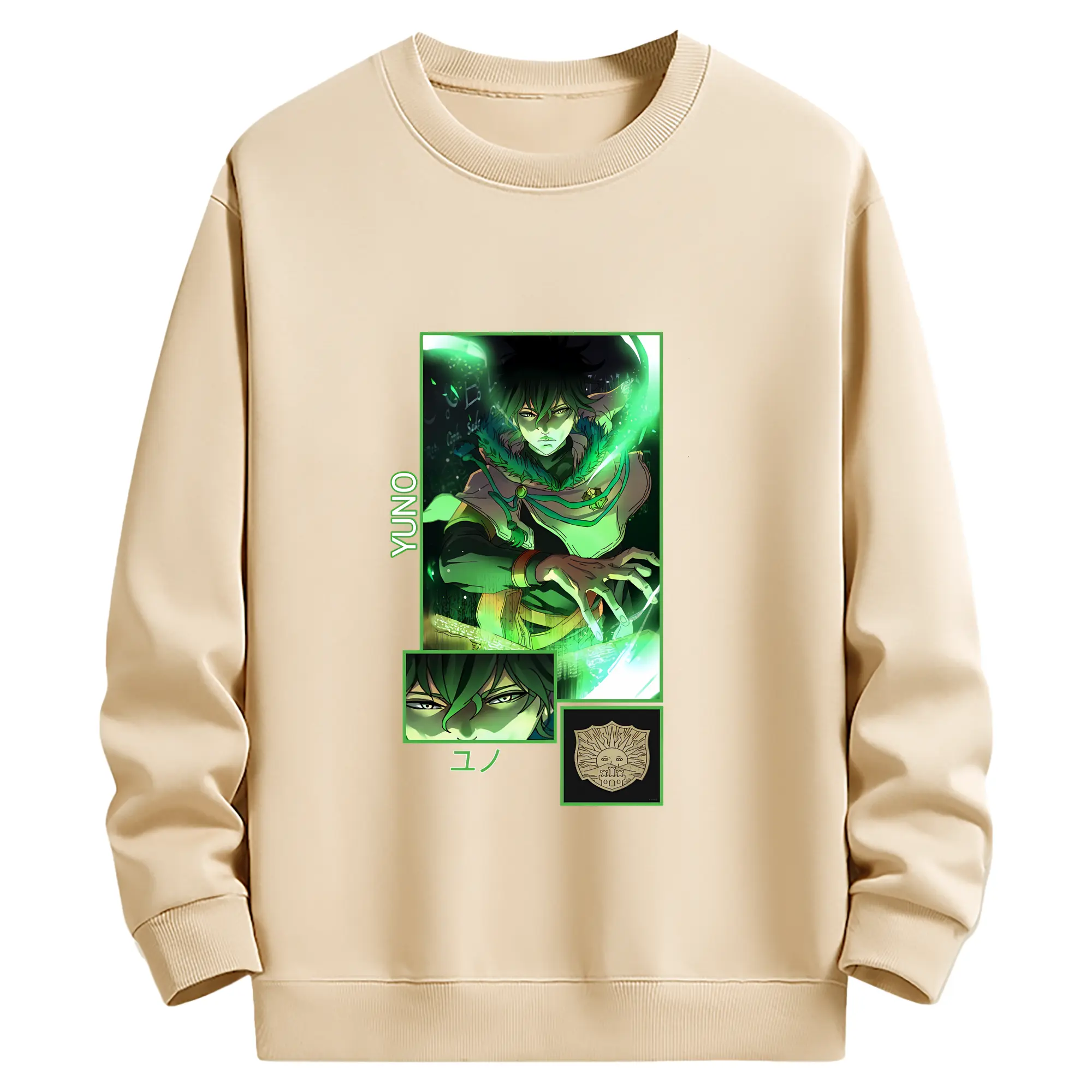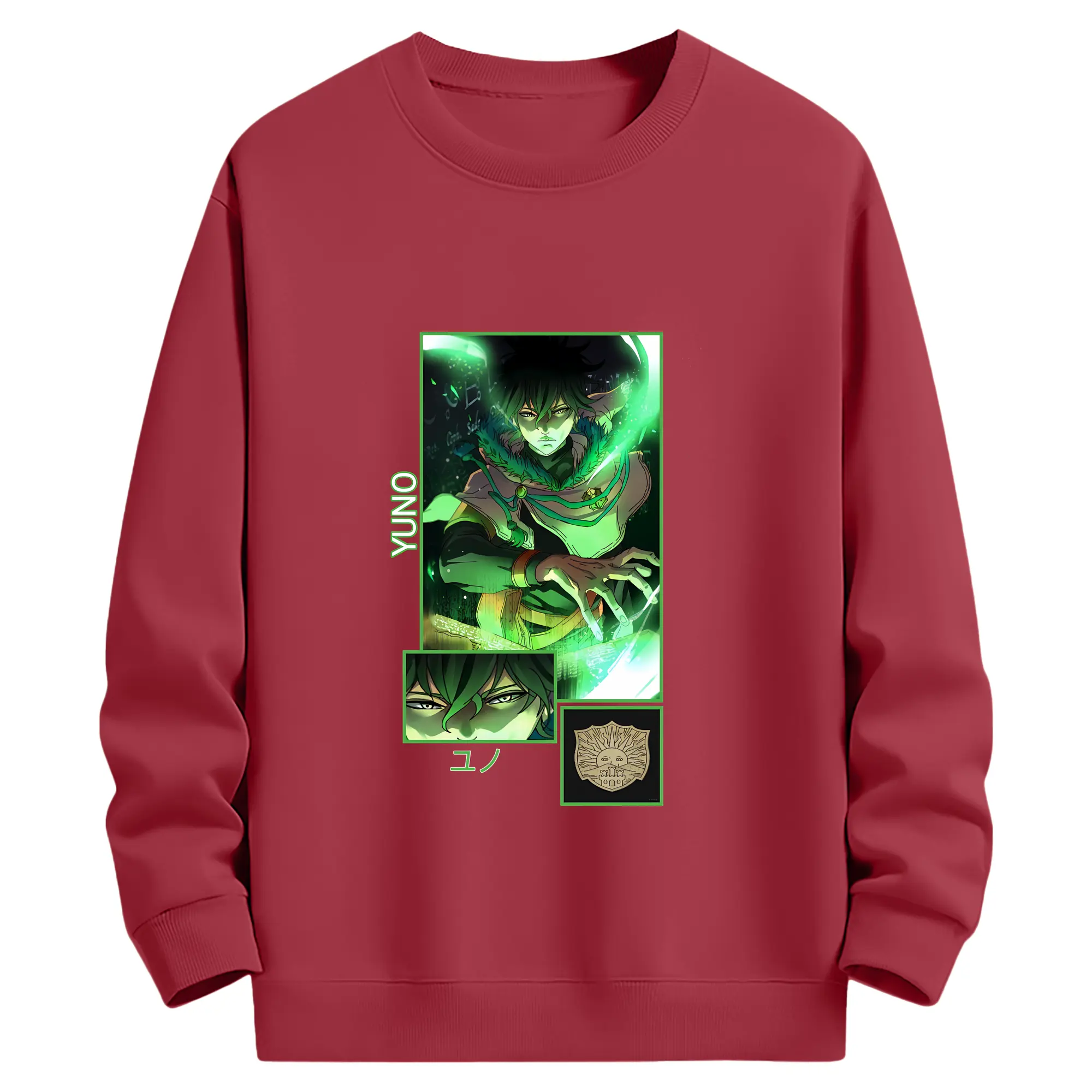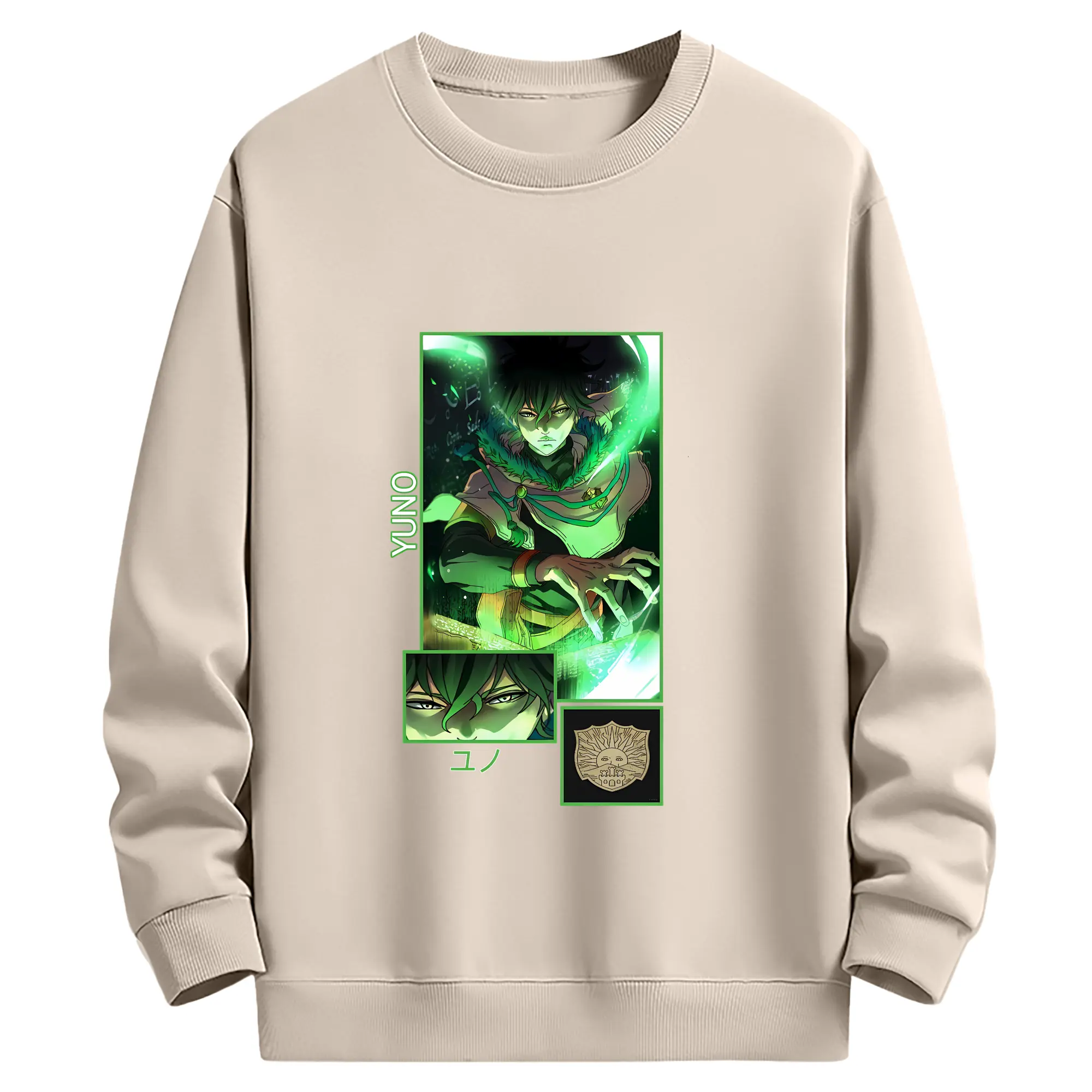 ブラッククローバー グッズ ユノ・グリンベリオール - 薄手 クルーネック スウェット 裏毛260g · ポリエステル 春秋向け カジュアル 男女兼用 · トレーナー デイリー スポーツ 散歩に最適