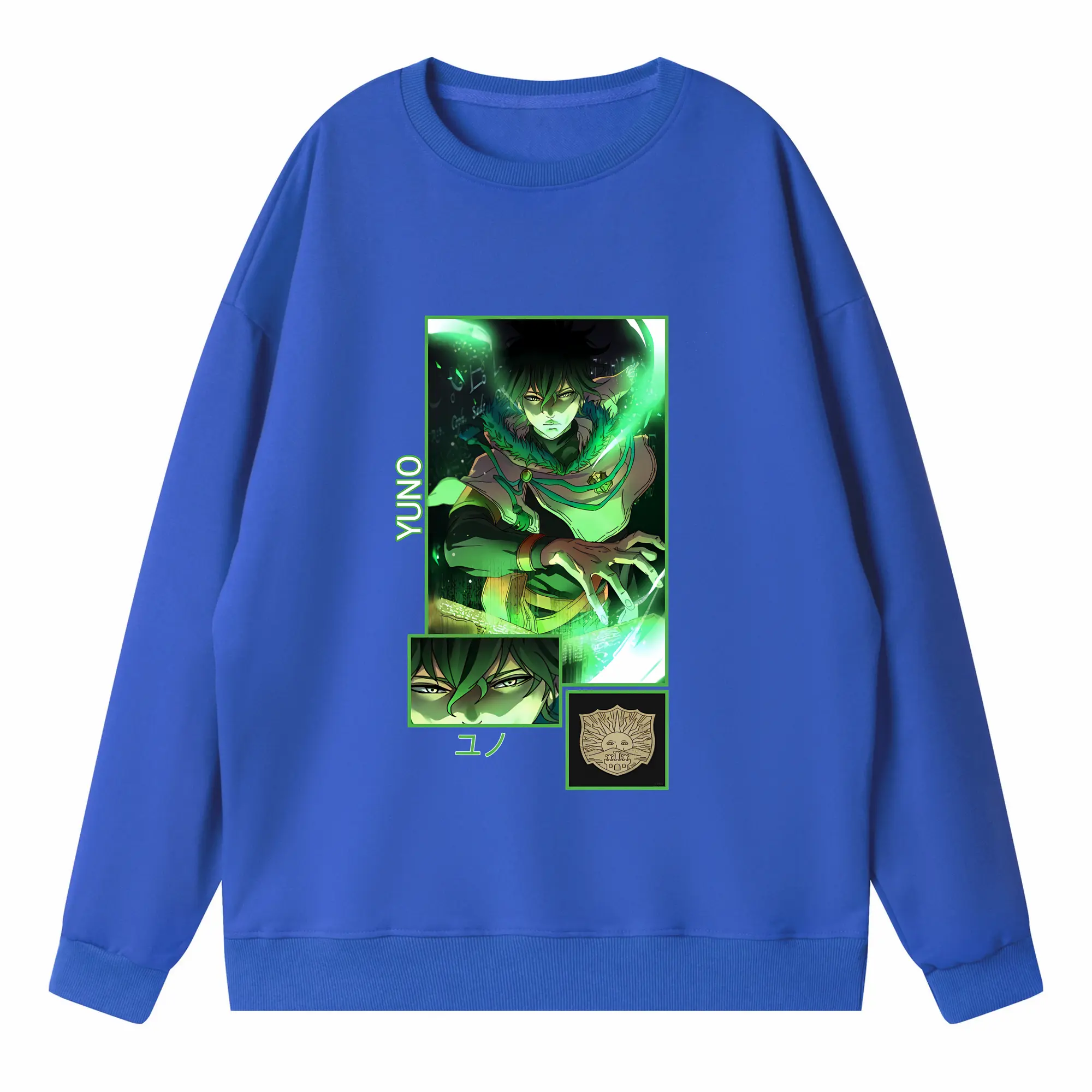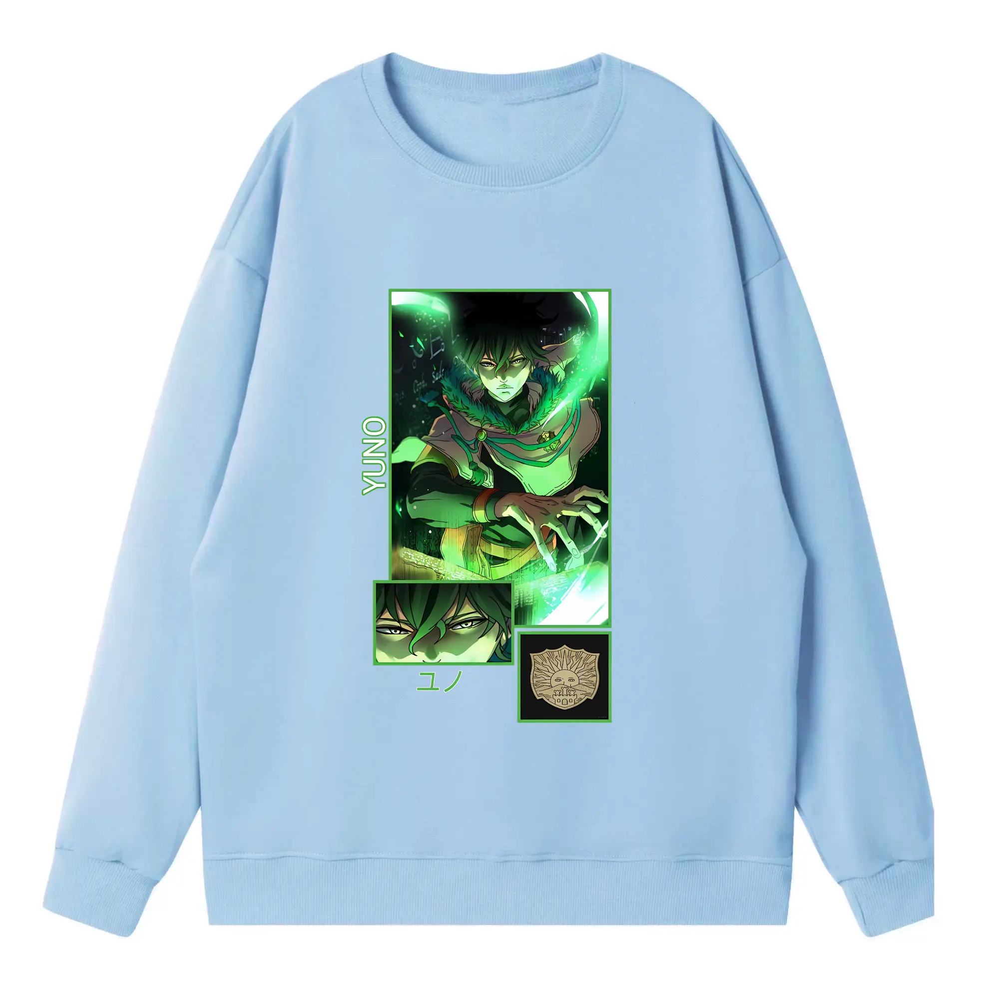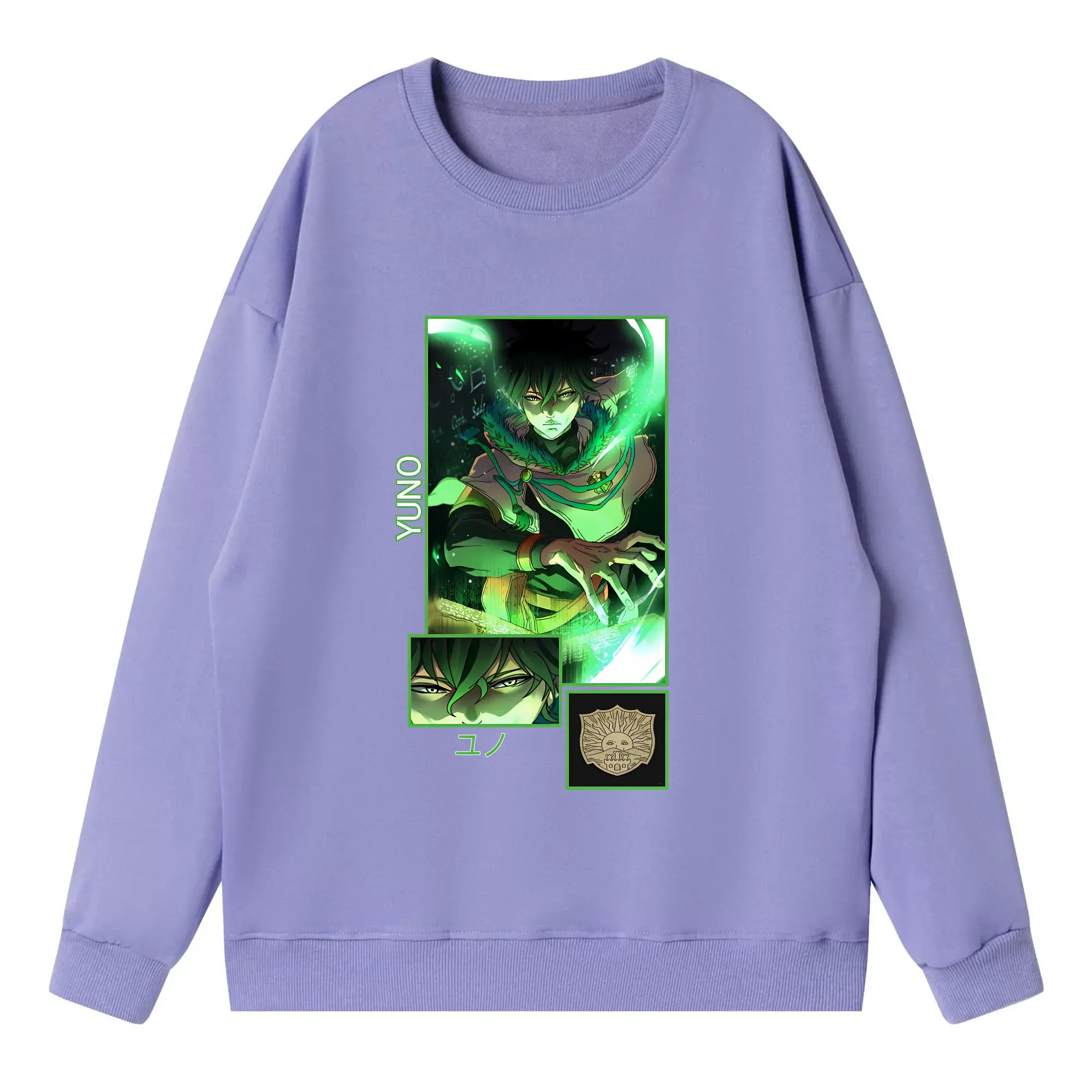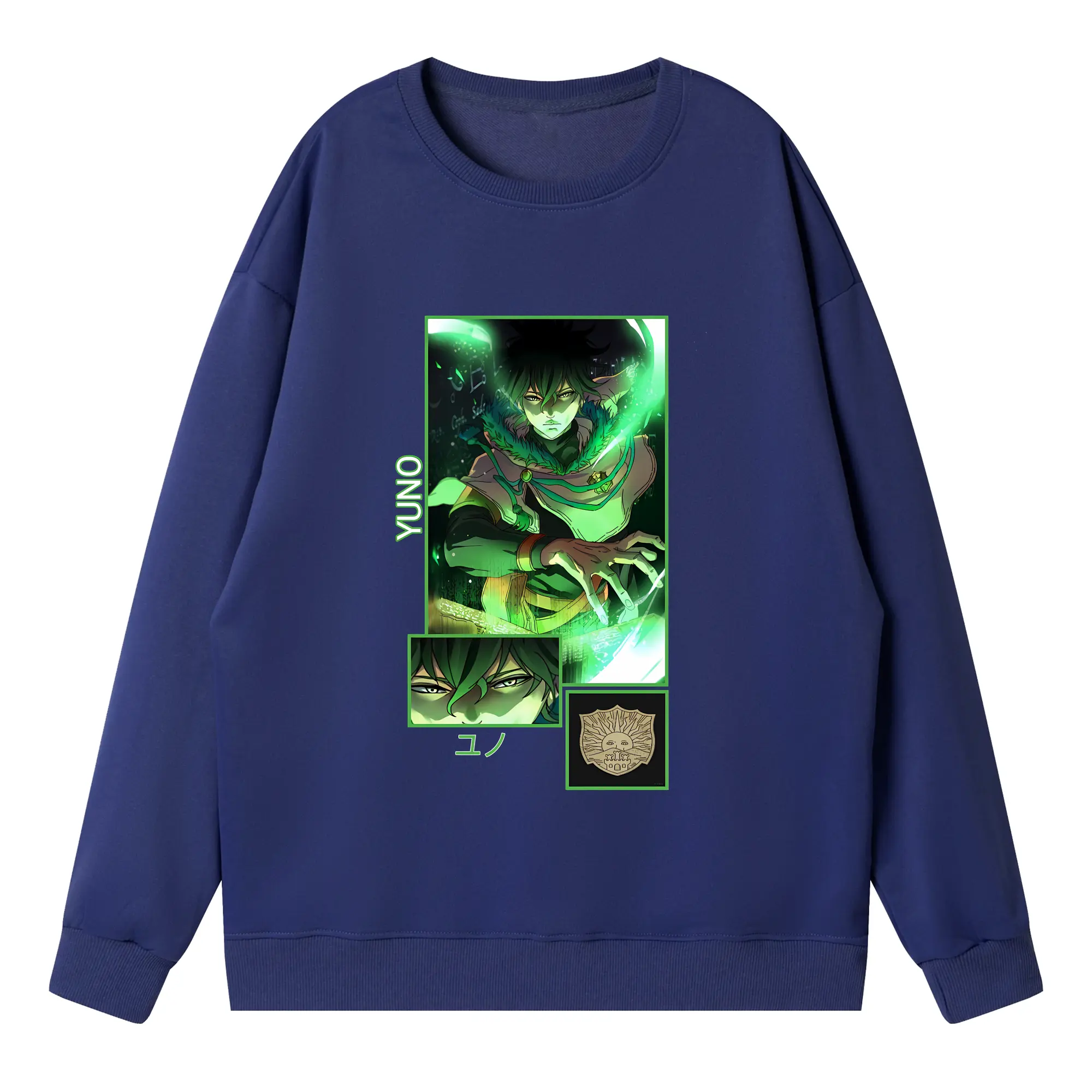 ブラッククローバー グッズ ユノ・グリンベリオール - 高品質 クルーネック スウェット ・ コットン59% ポリエステル41% ・ ユニセックス 長袖 トレーナー ・ カジュアル デイリー スポーツ 散歩用