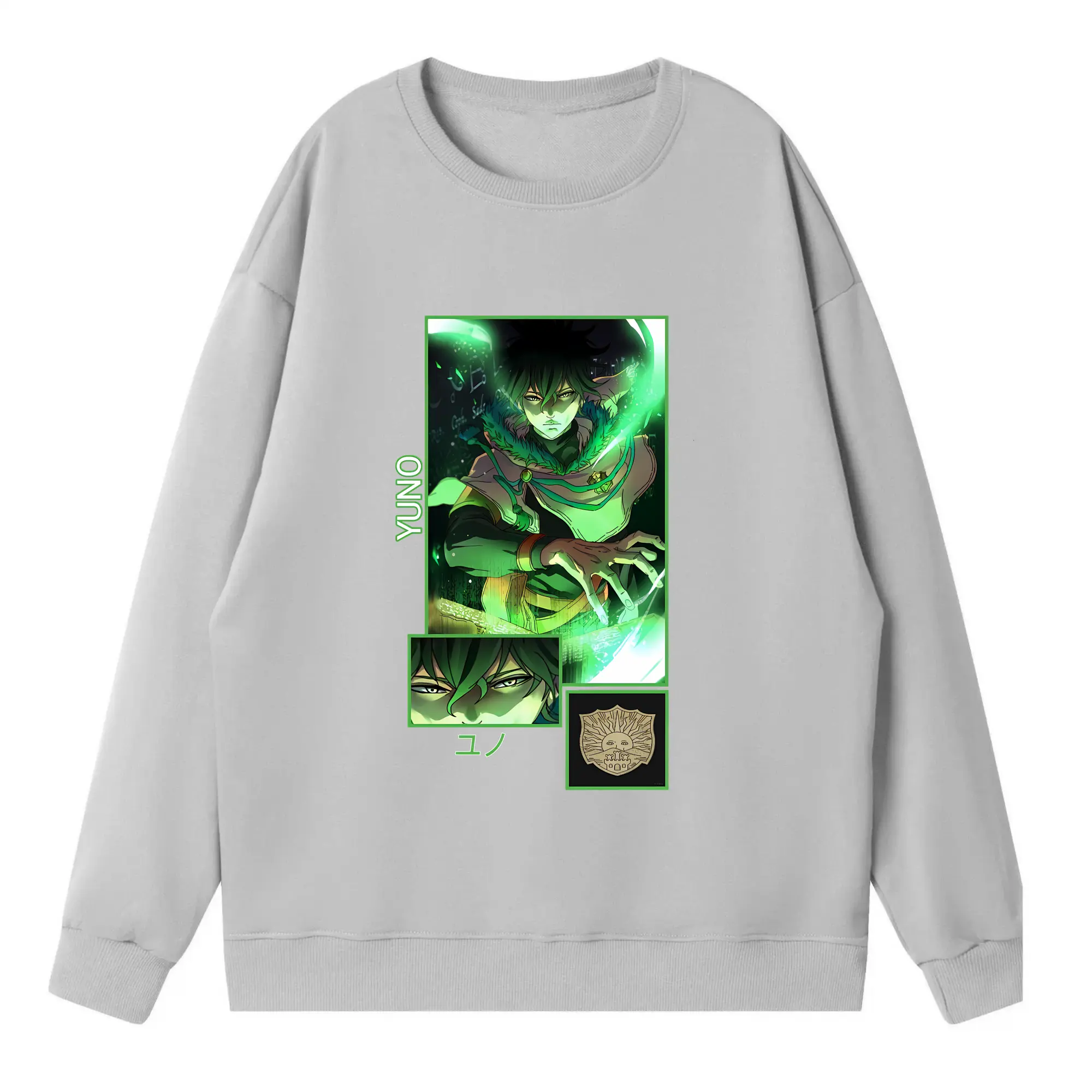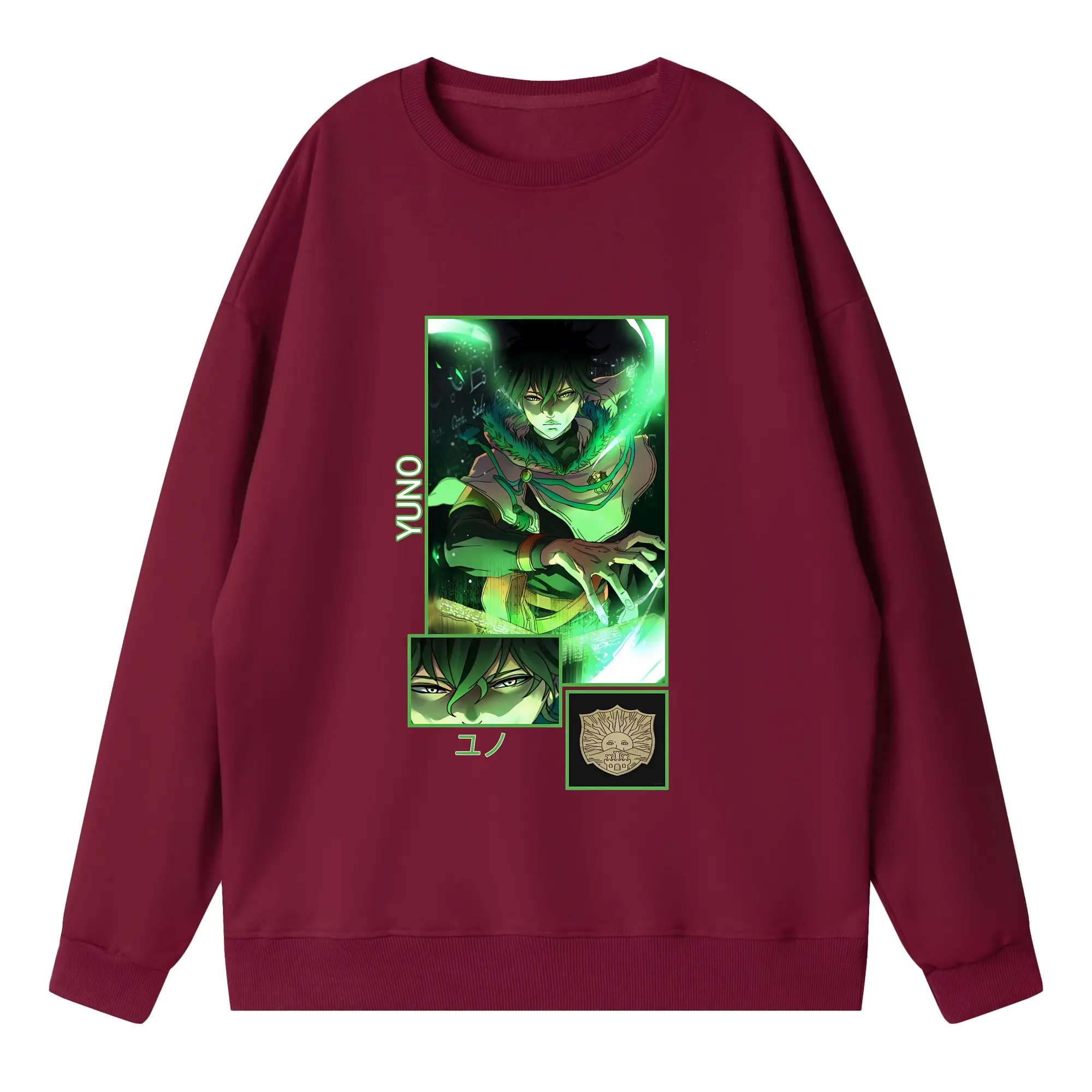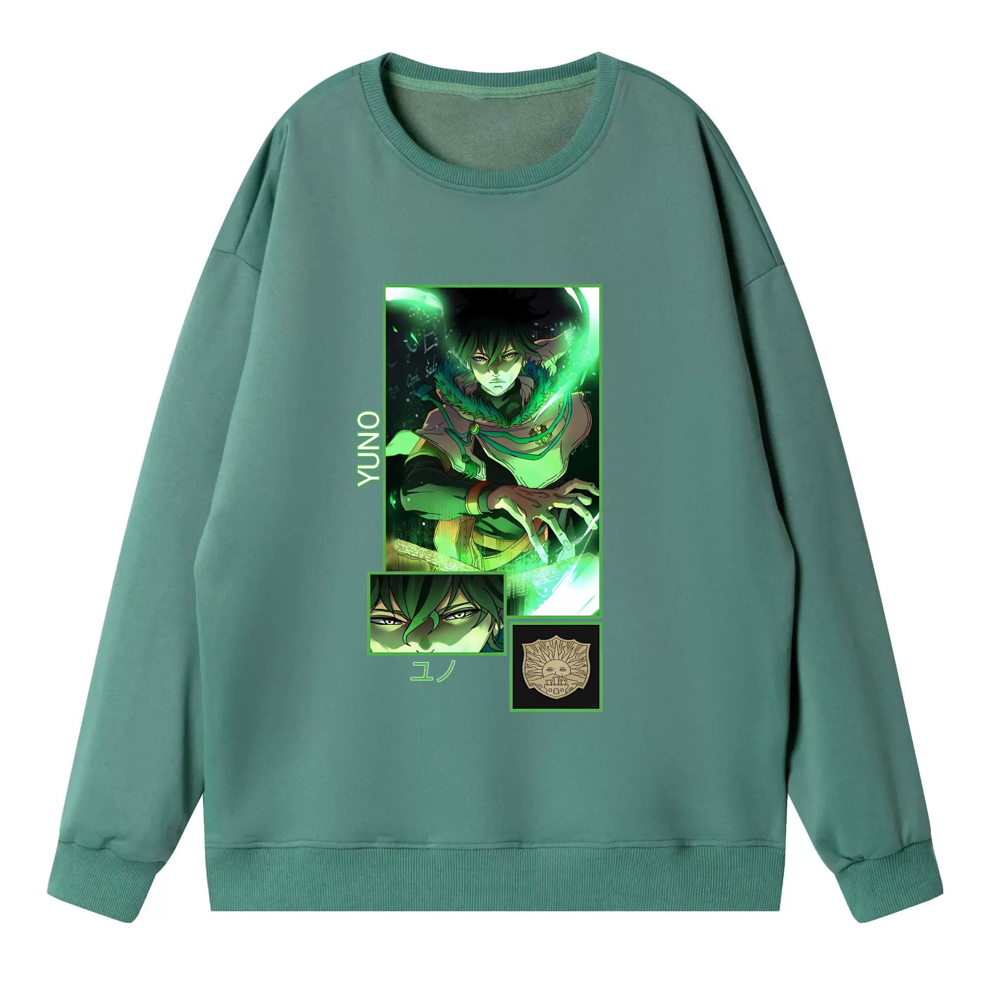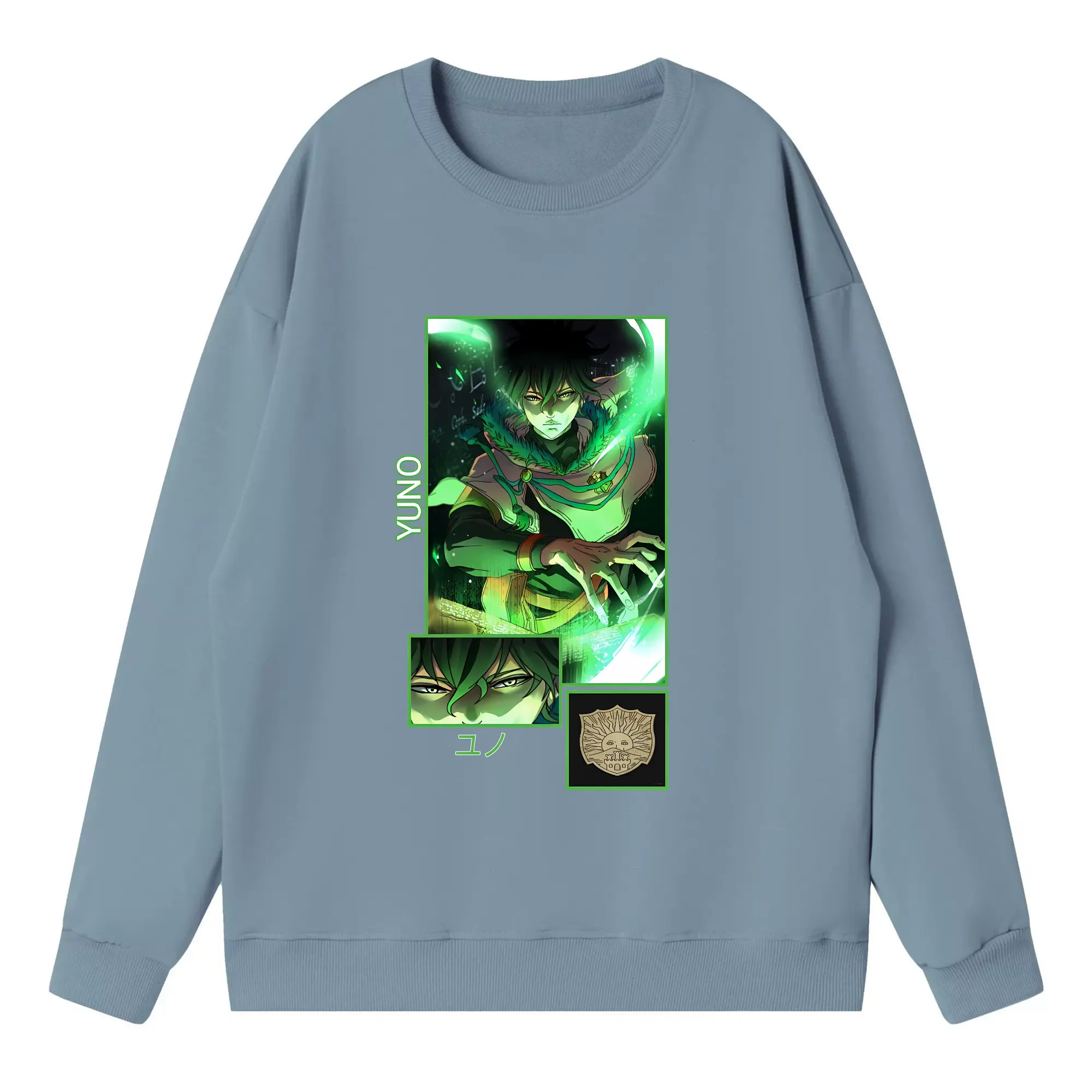 ブラッククローバー グッズ ユノ・グリンベリオール - 高品質 クルーネック スウェット ・ コットン59% ポリエステル41% ・ ユニセックス 長袖 トレーナー ・ カジュアル デイリー スポーツ 散歩用