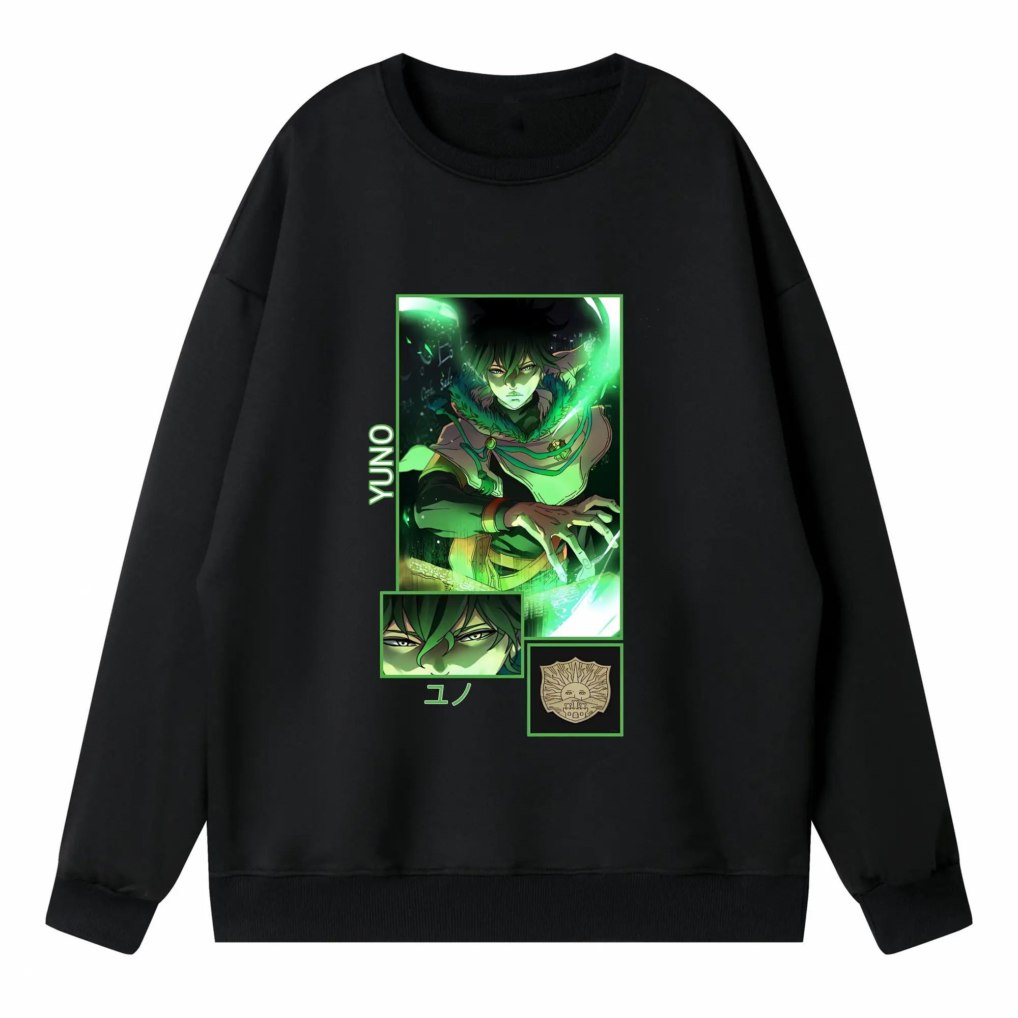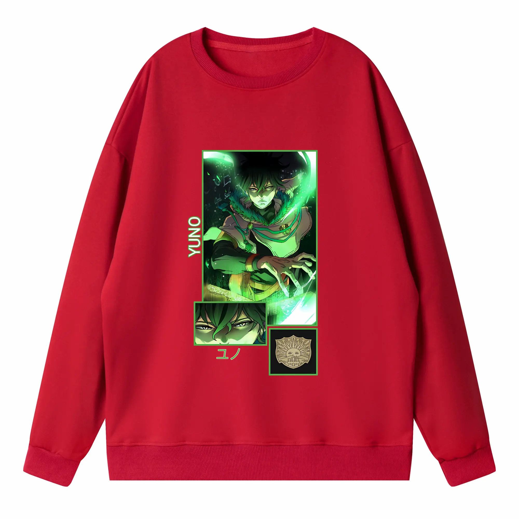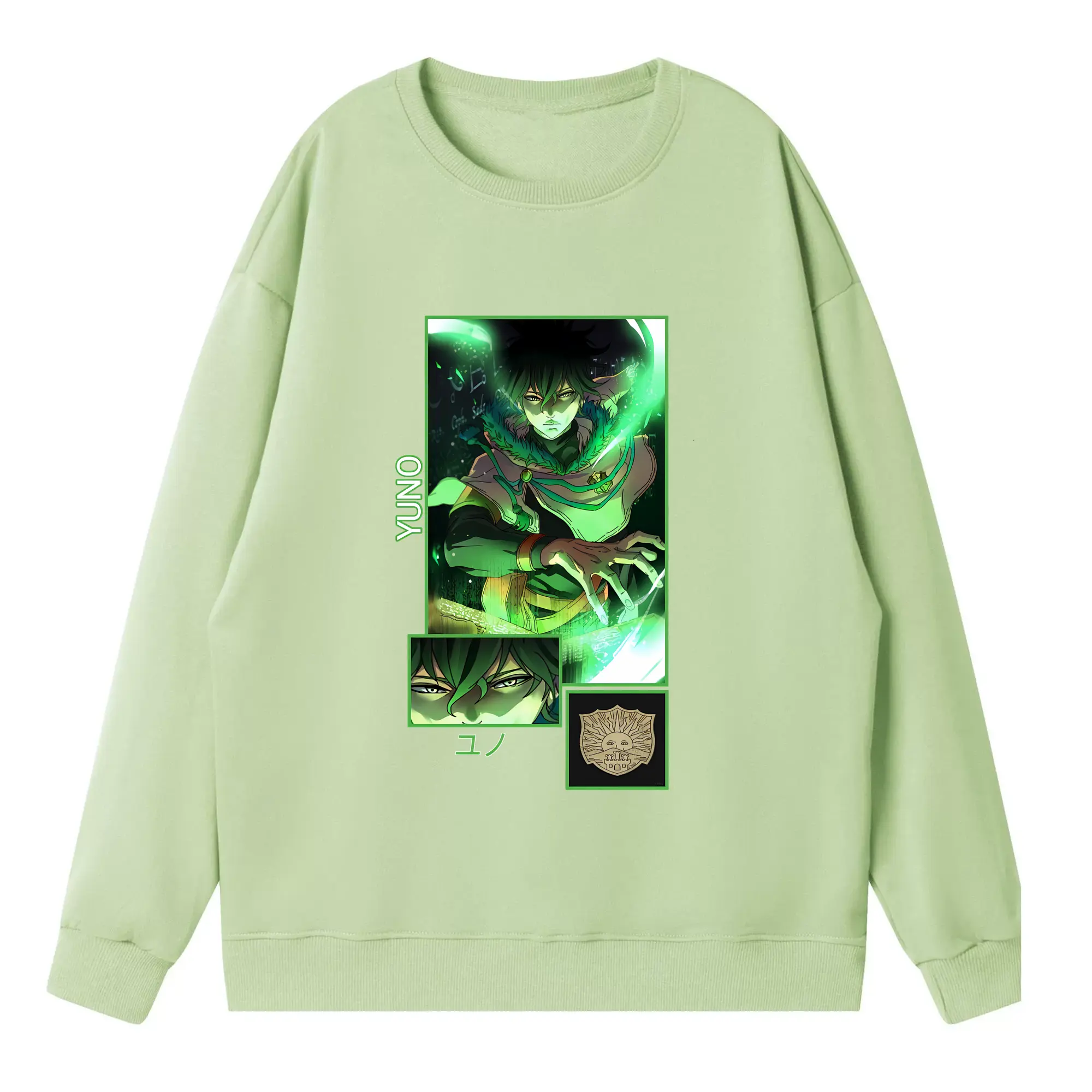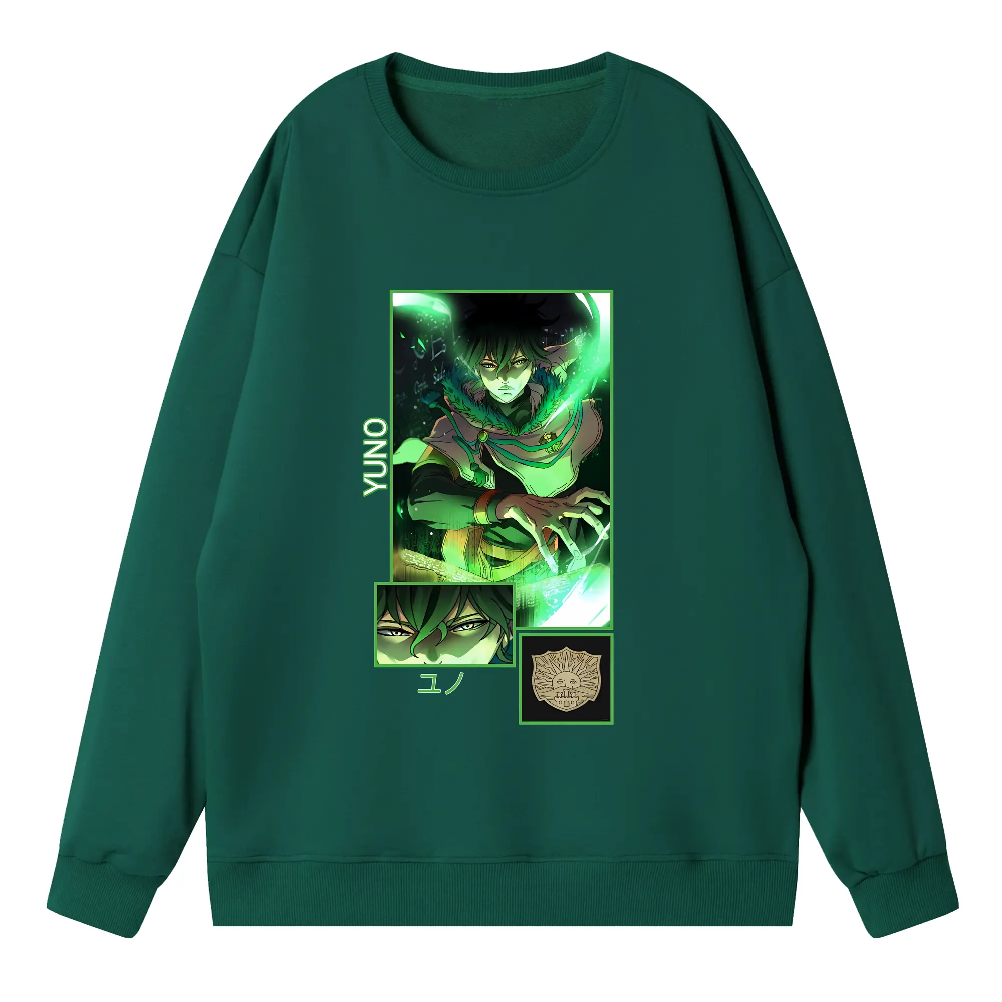 ブラッククローバー グッズ ユノ・グリンベリオール - 高品質 クルーネック スウェット ・ コットン59% ポリエステル41% ・ ユニセックス 長袖 トレーナー ・ カジュアル デイリー スポーツ 散歩用