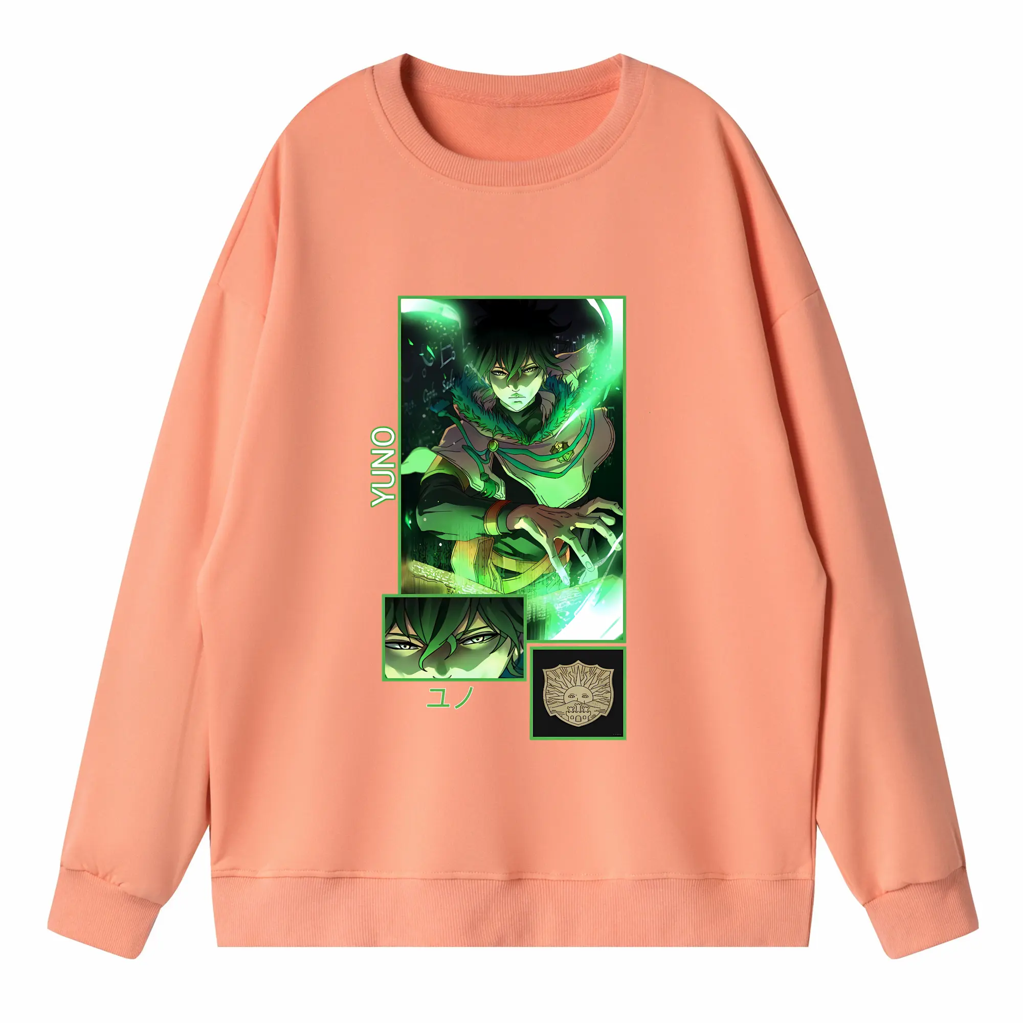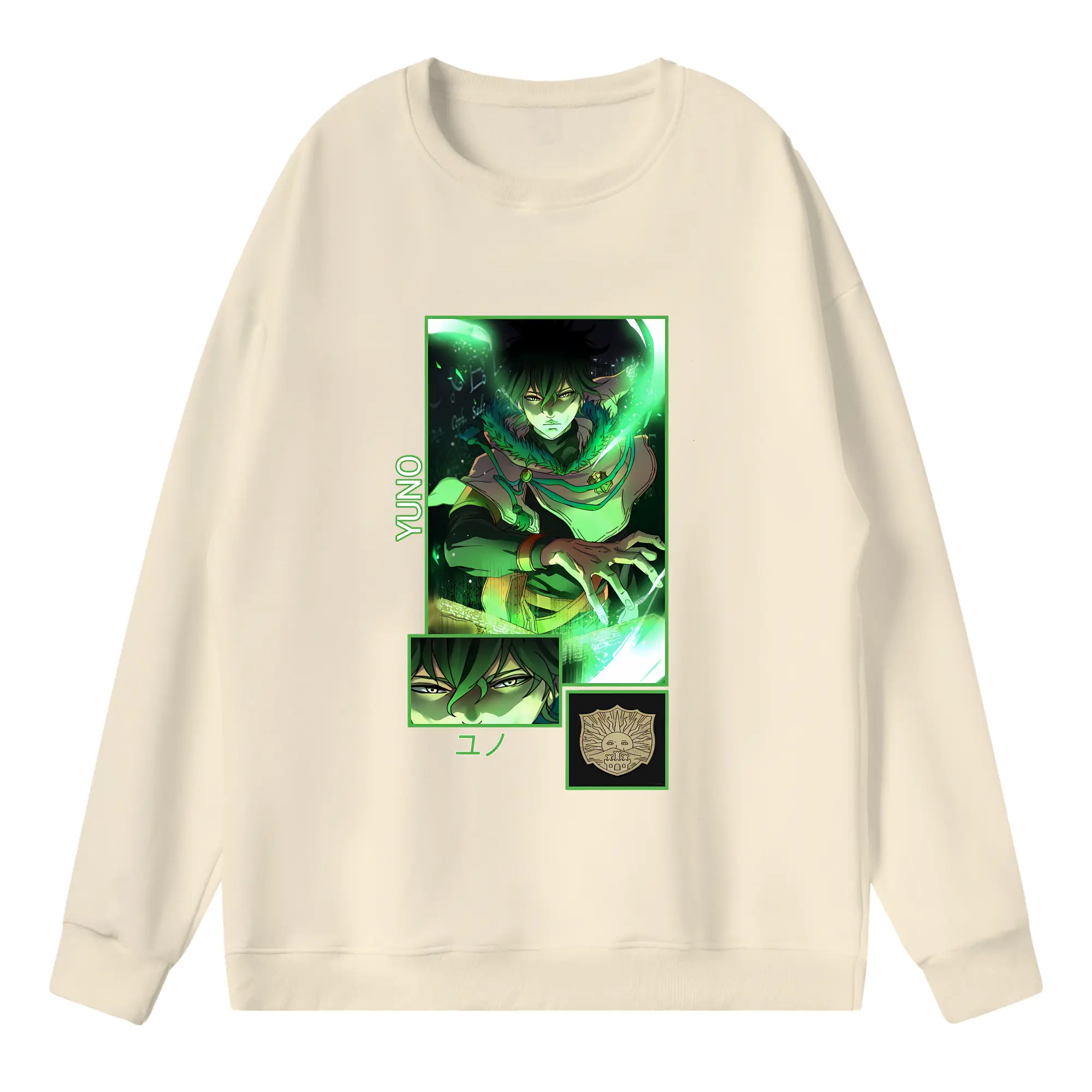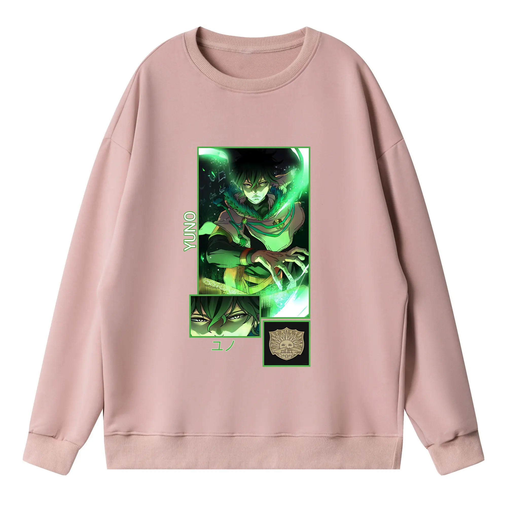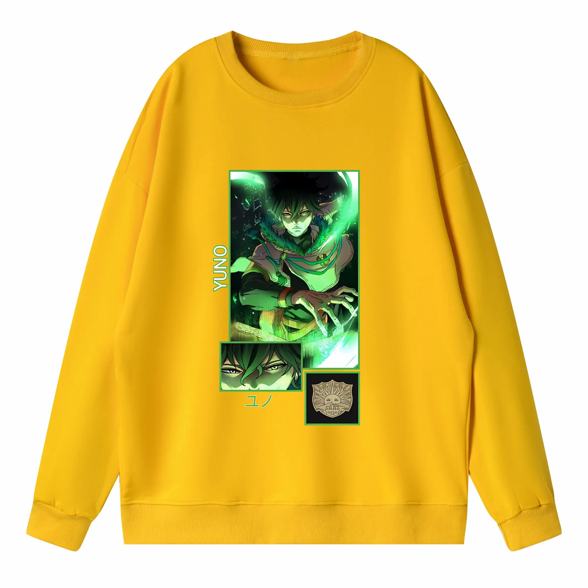 ブラッククローバー グッズ ユノ・グリンベリオール - 高品質 クルーネック スウェット ・ コットン59% ポリエステル41% ・ ユニセックス 長袖 トレーナー ・ カジュアル デイリー スポーツ 散歩用