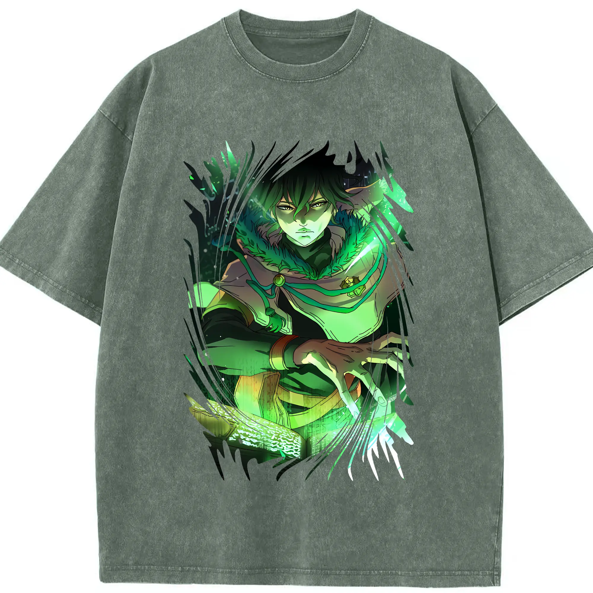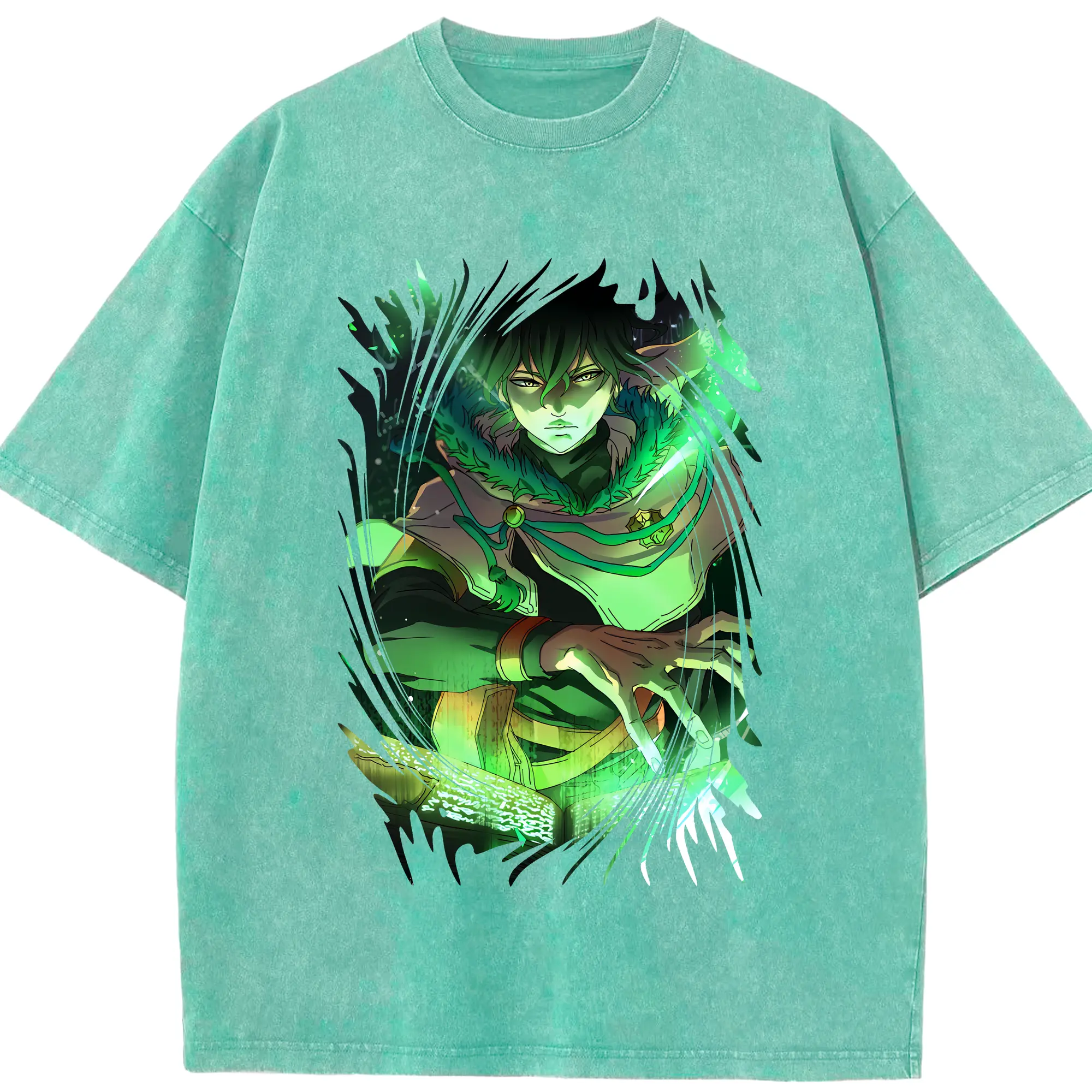 ブラッククローバー グッズ ユノ・グリンベリオール - 綿100% ヴィンテージ風 半袖Tシャツ ・ 背面プリント ・ 柔らか肌触り ・ 通気性 快適 ・ スポーツ カジュアル 外出用