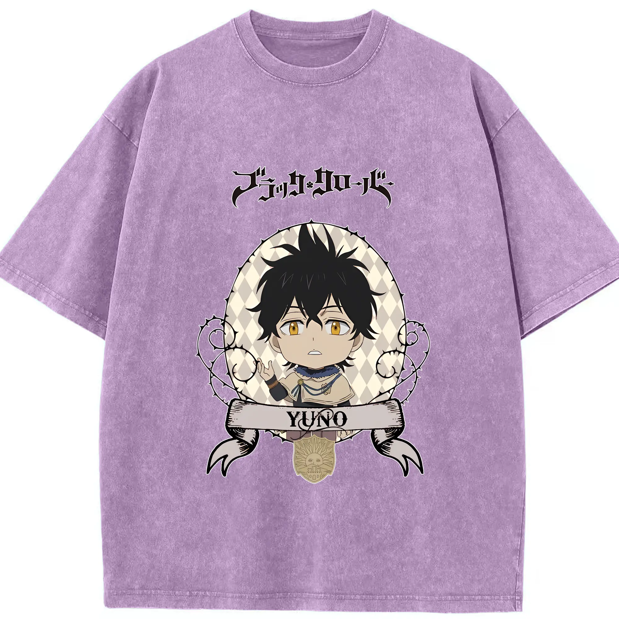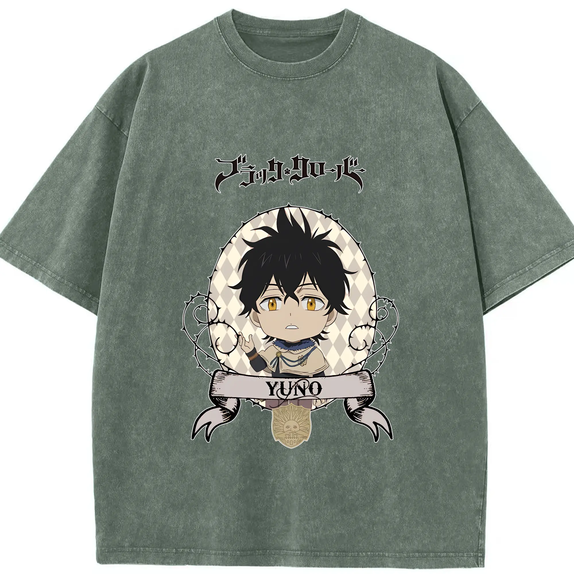 ブラッククローバー グッズ ユノ・グリンベリオール - 綿100% ヴィンテージ風 半袖Tシャツ ・ 背面プリント ・ 柔らか肌触り ・ 通気性 快適 ・ スポーツ カジュアル 外出用