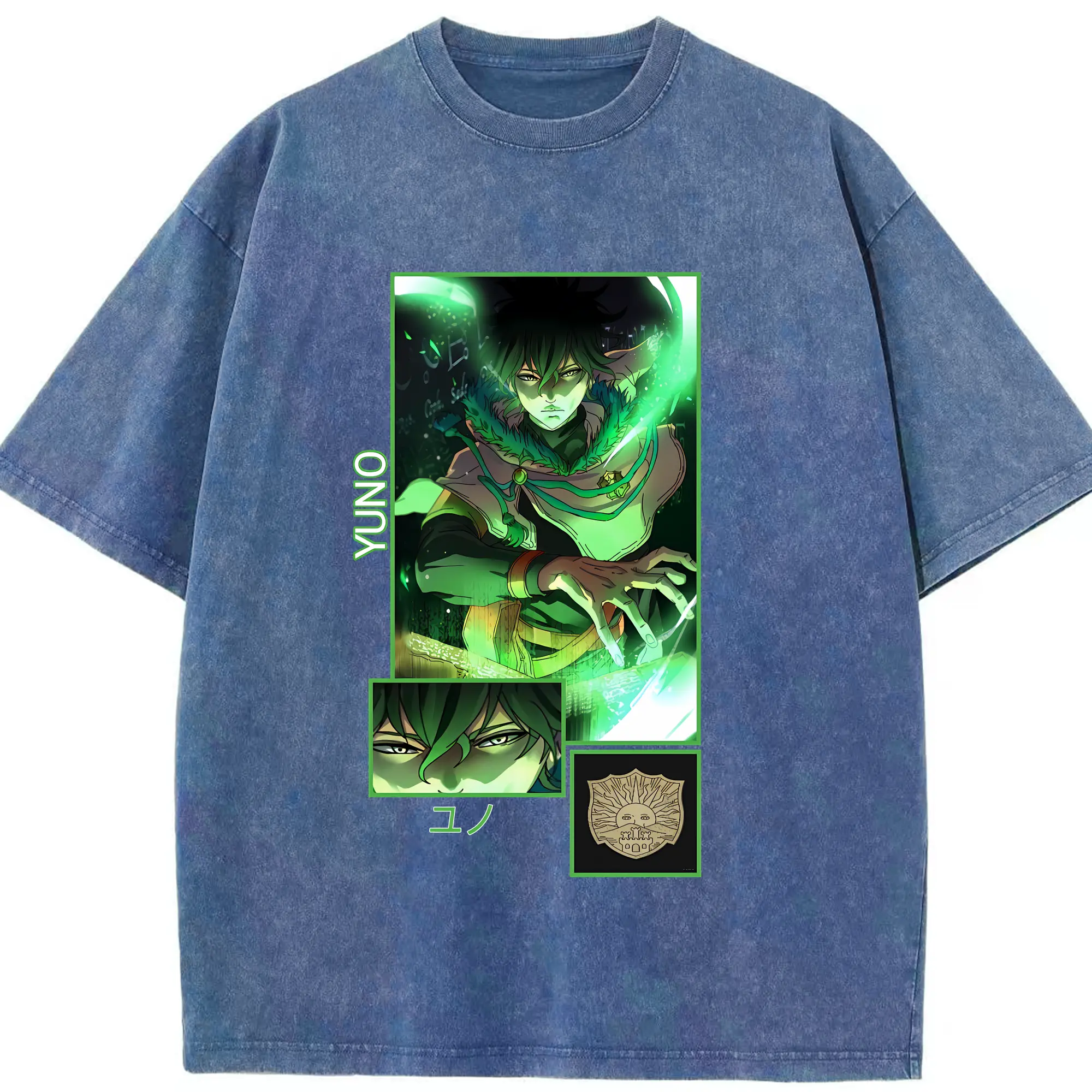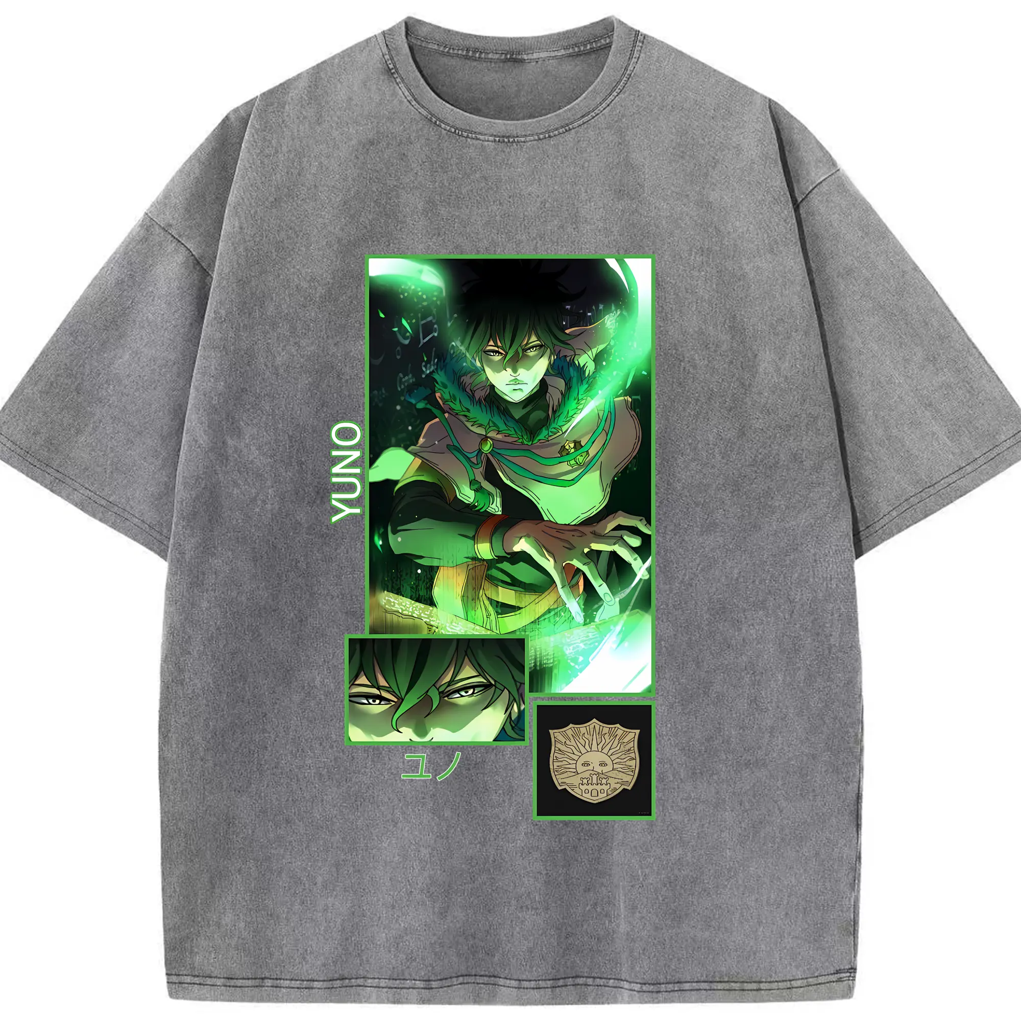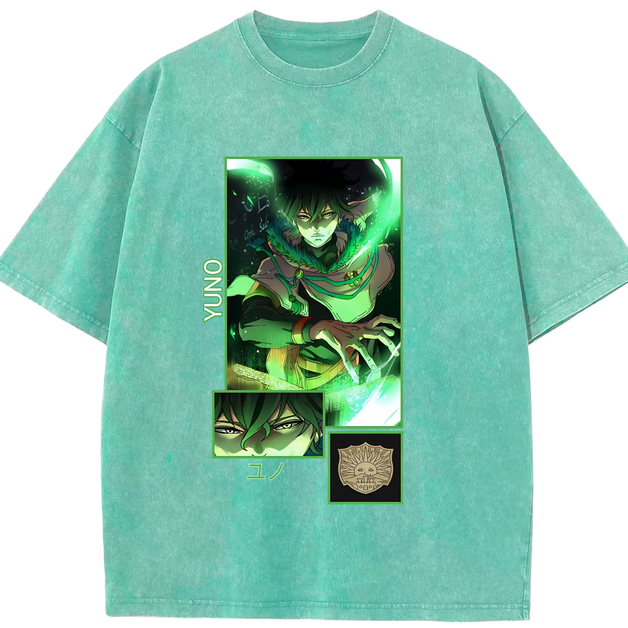 ブラッククローバー グッズ ユノ・グリンベリオール - 綿100% ヴィンテージ風 半袖Tシャツ ・ 背面プリント ・ 柔らか肌触り ・ 通気性 快適 ・ スポーツ カジュアル 外出用