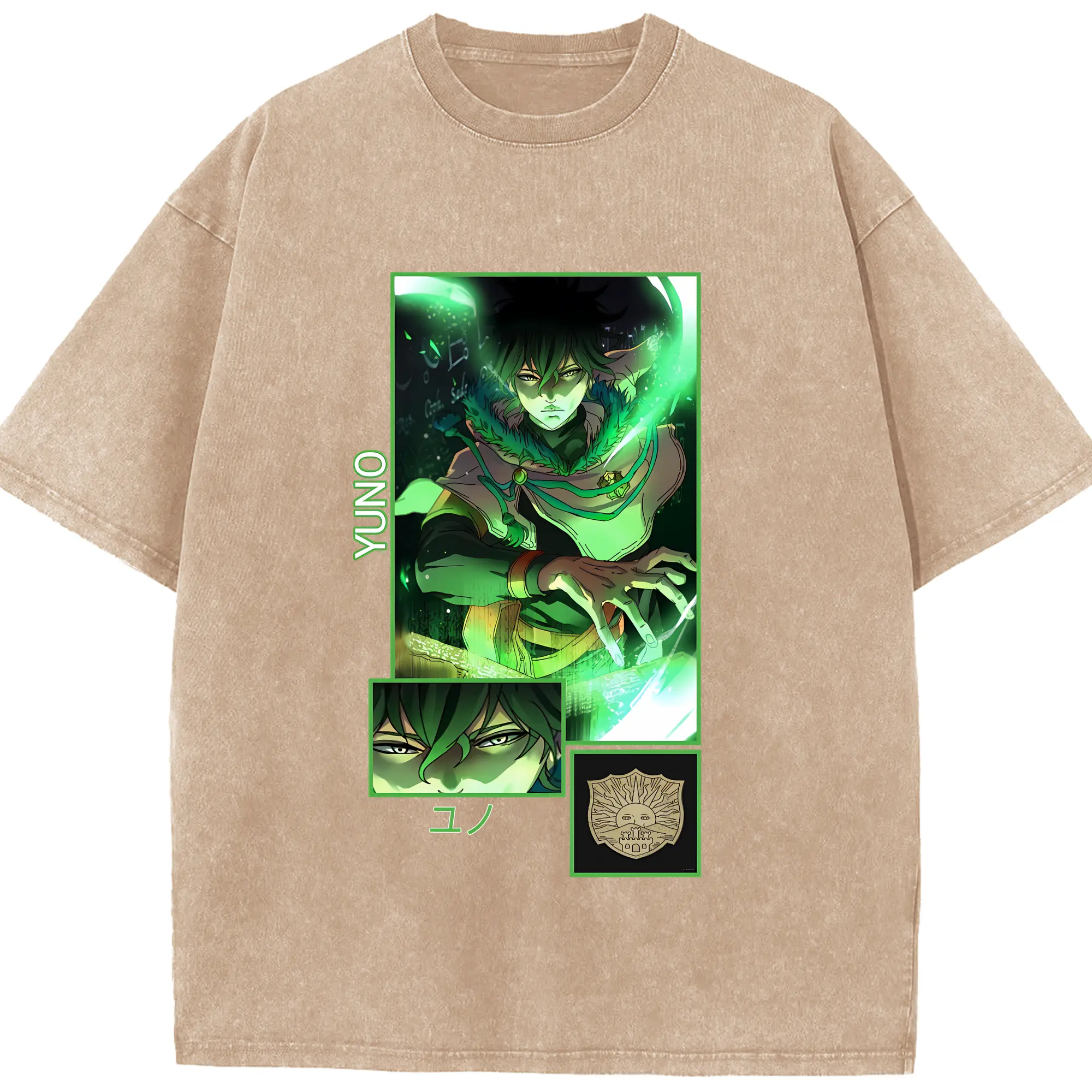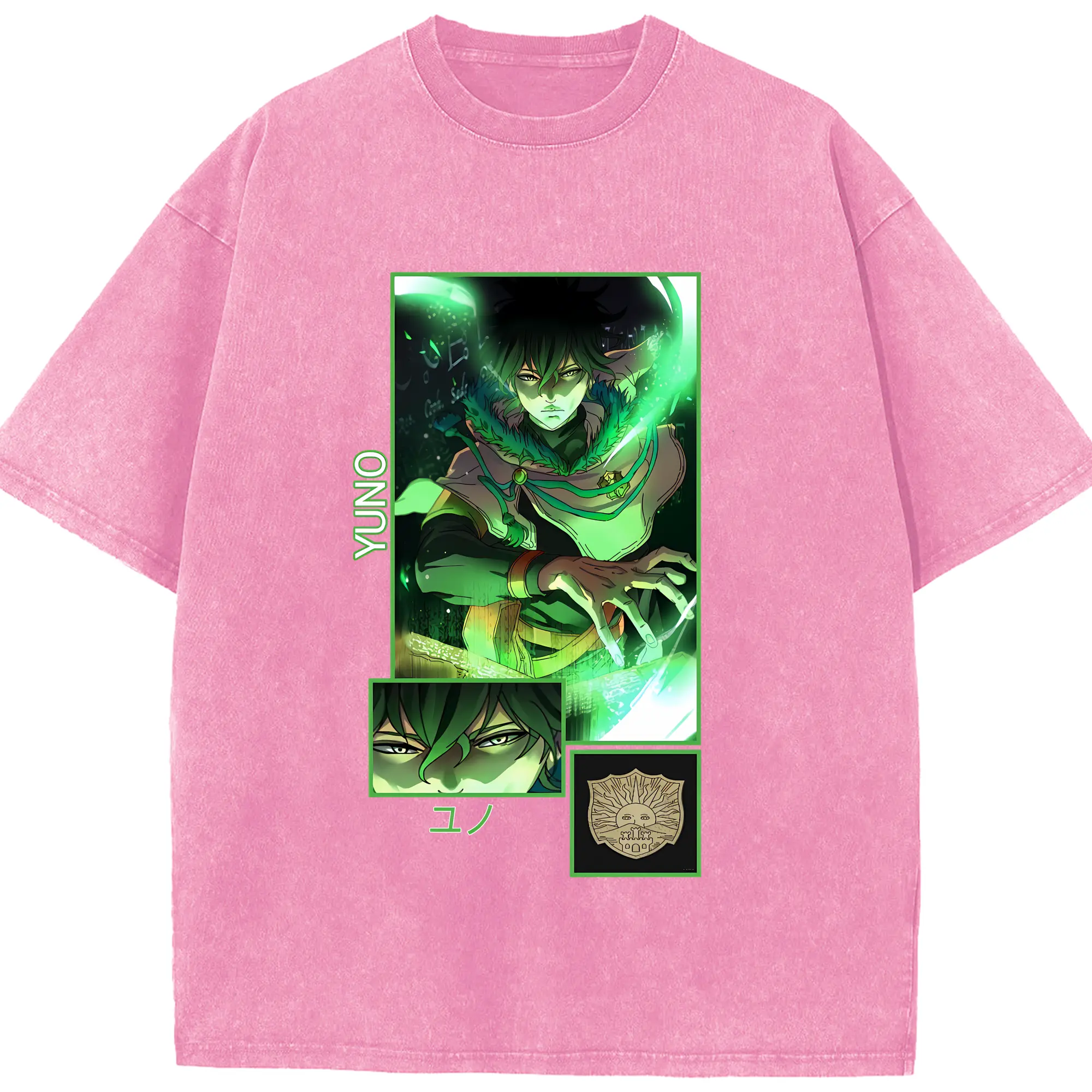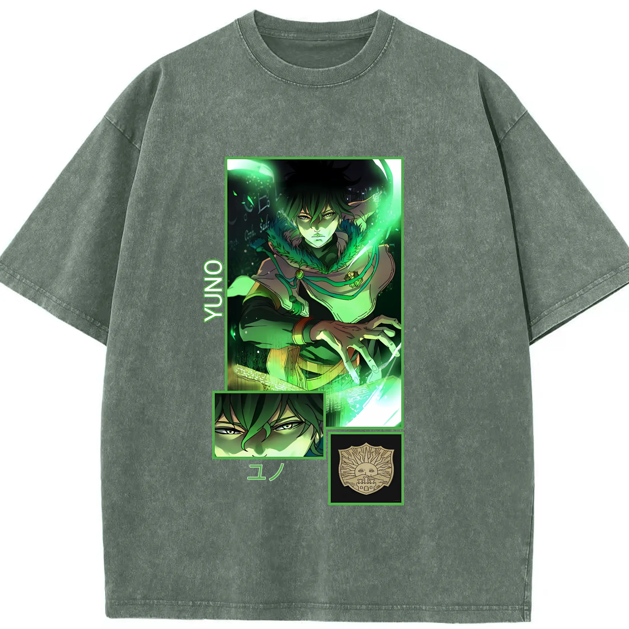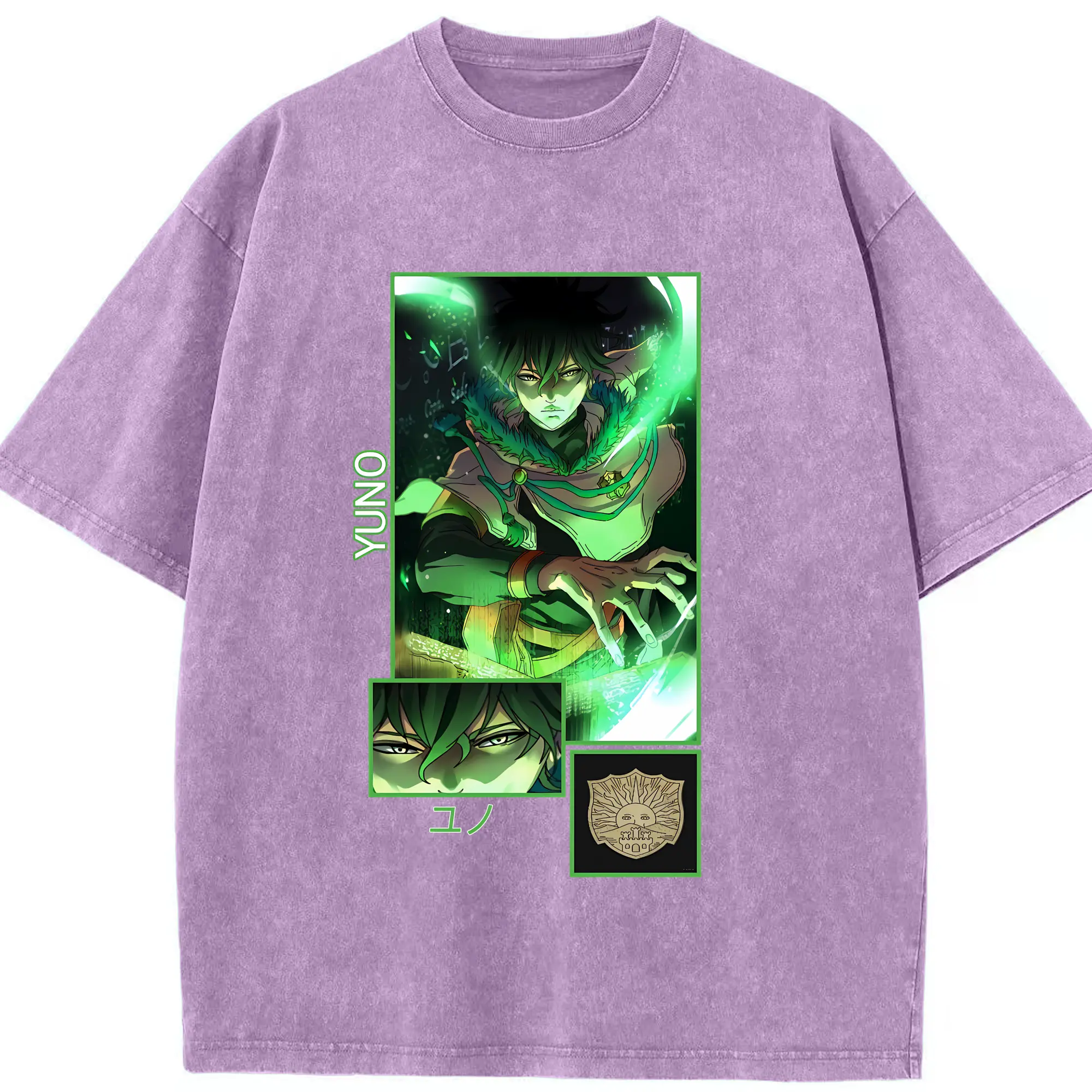 ブラッククローバー グッズ ユノ・グリンベリオール - 綿100% ヴィンテージ風 半袖Tシャツ ・ 背面プリント ・ 柔らか肌触り ・ 通気性 快適 ・ スポーツ カジュアル 外出用