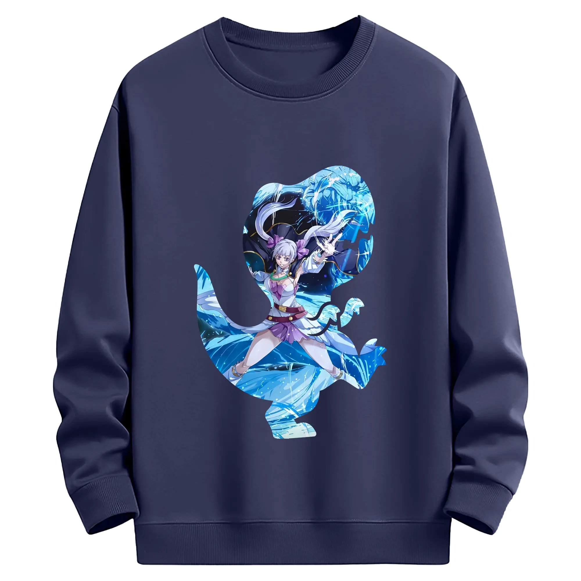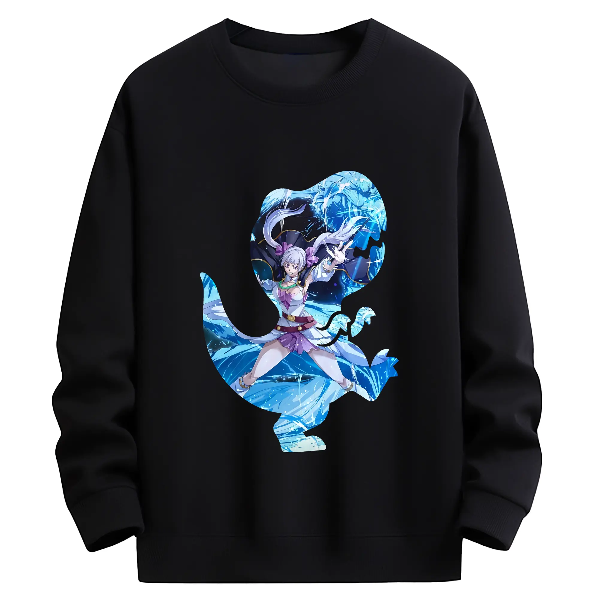 ブラッククローバー グッズ ノエル・シルヴァ - 薄手 クルーネック スウェット 裏毛260g · ポリエステル 春秋向け カジュアル 男女兼用 · トレーナー デイリー スポーツ 散歩に最適