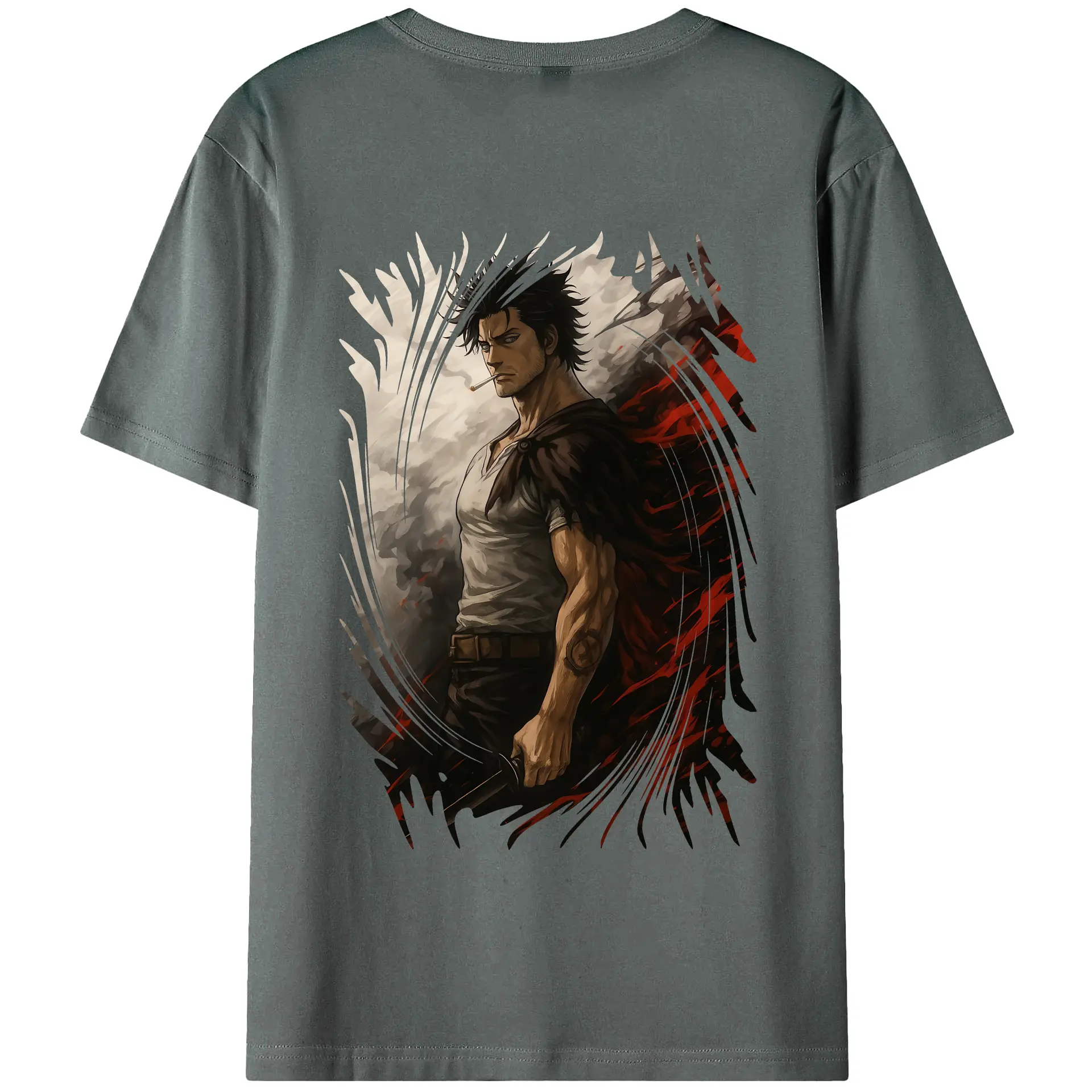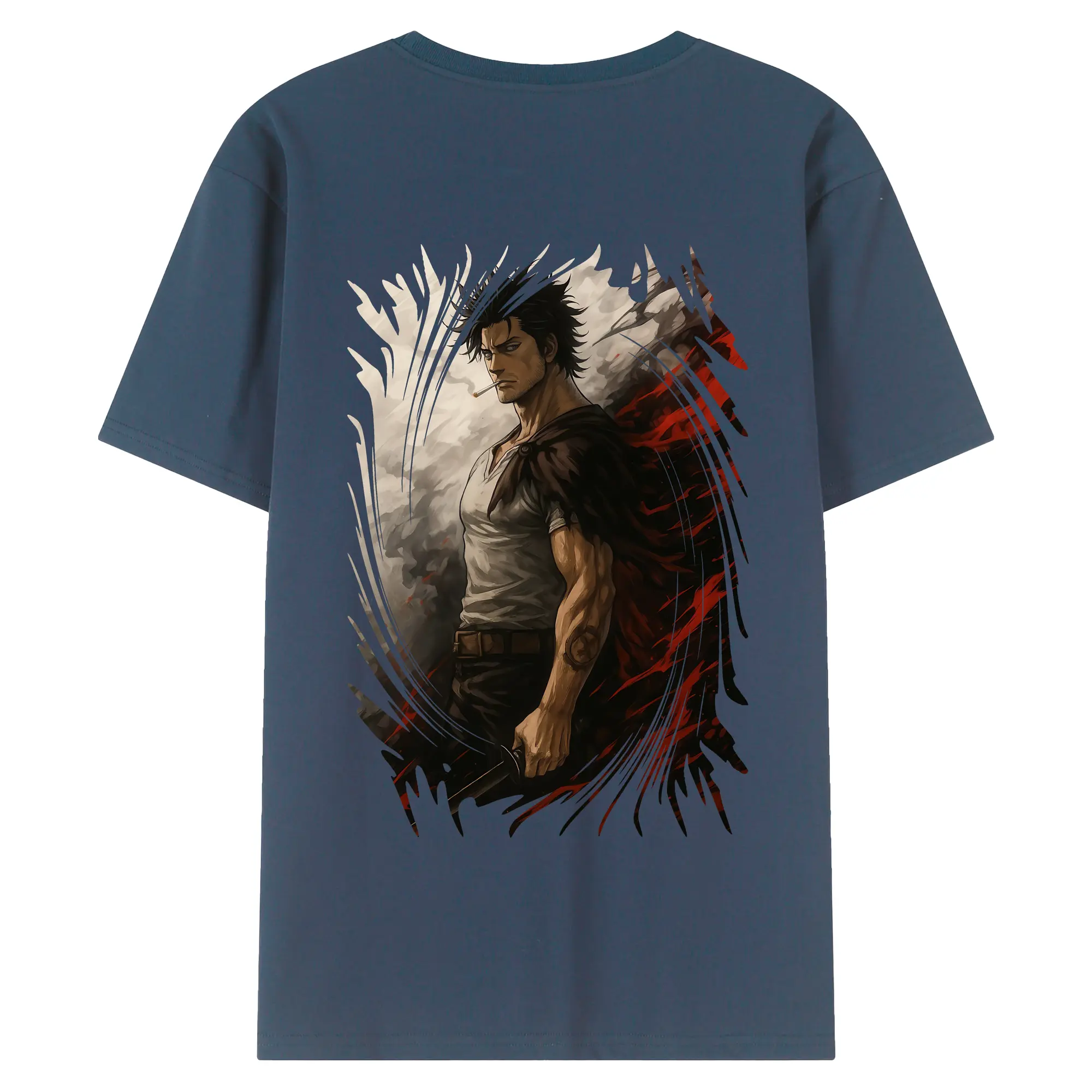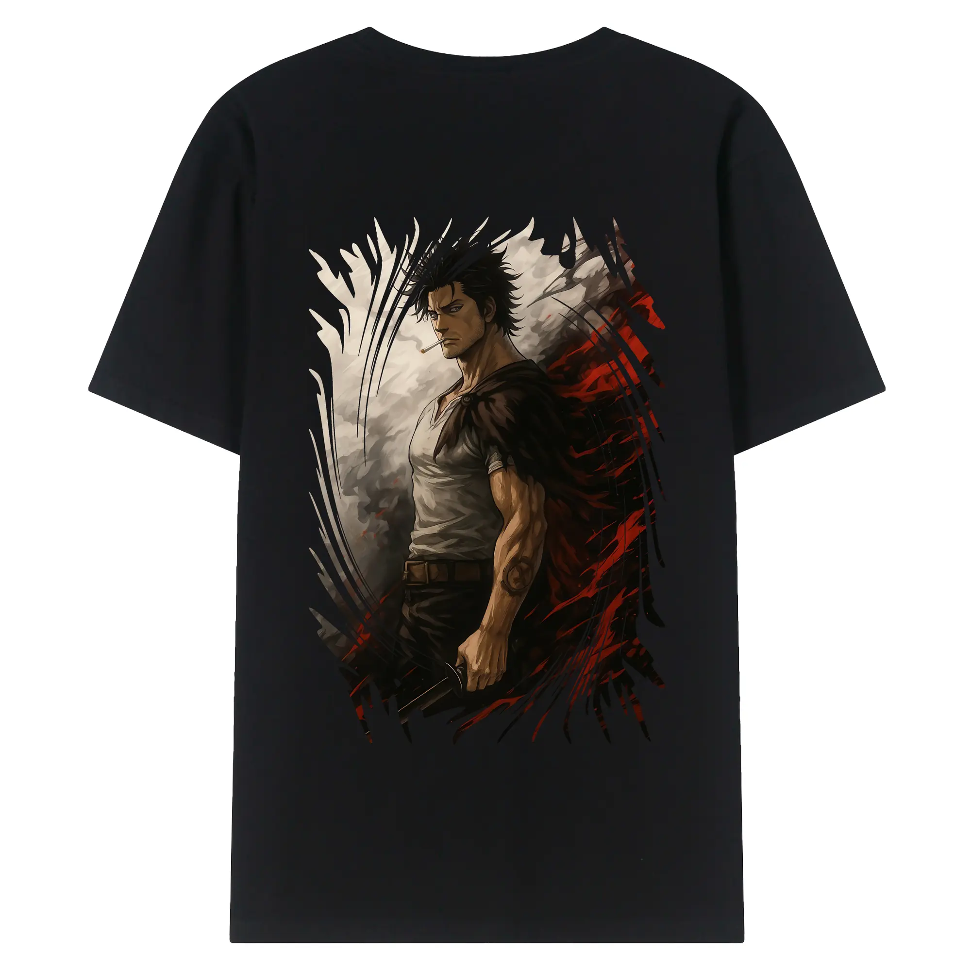 ブラッククローバー グッズ ヤミ・スケヒロ - 綿100% ヴィンテージ風 半袖Tシャツ ・ 背面プリント ・ 柔らか肌触り ・ 通気性 快適 ・ スポーツ カジュアル 外出用