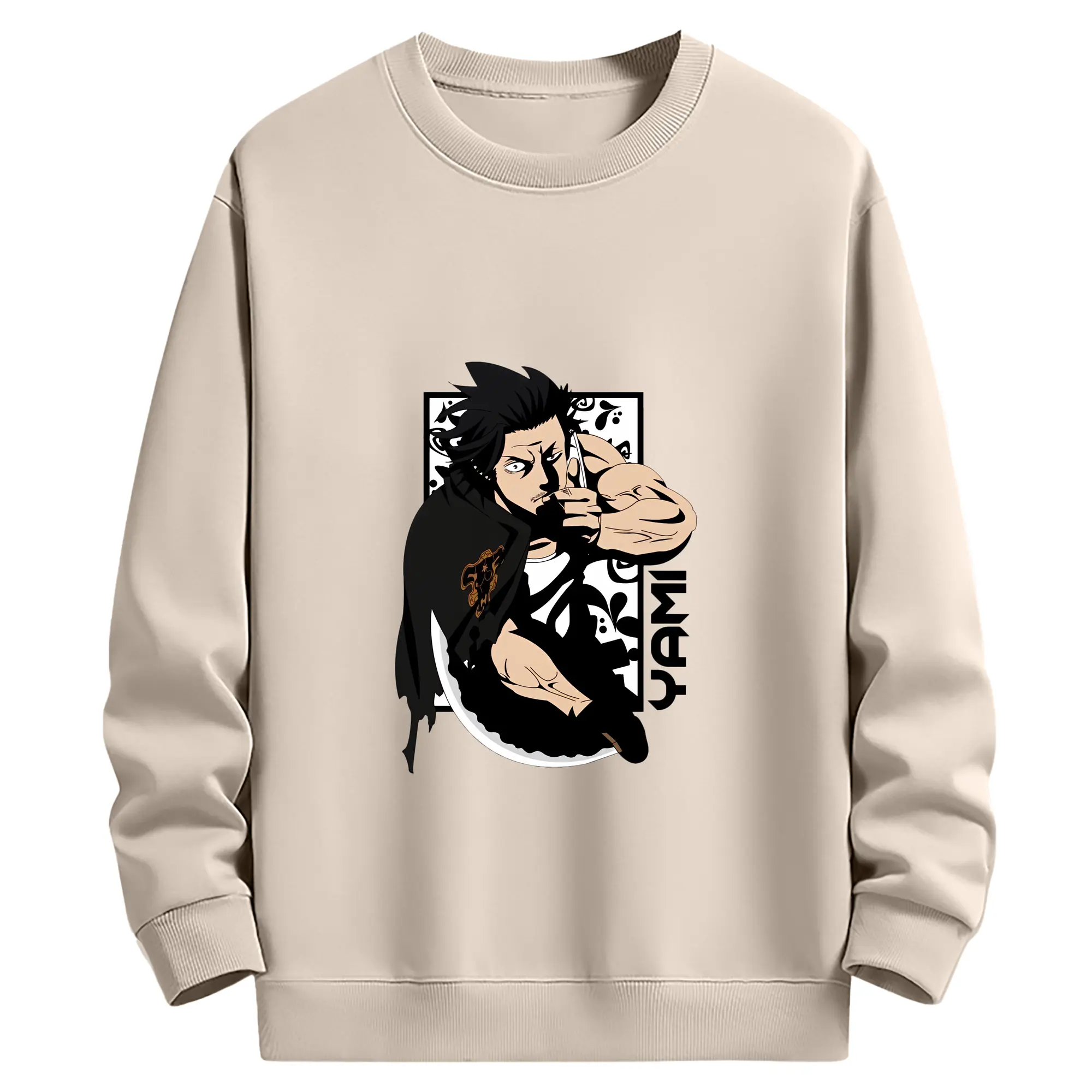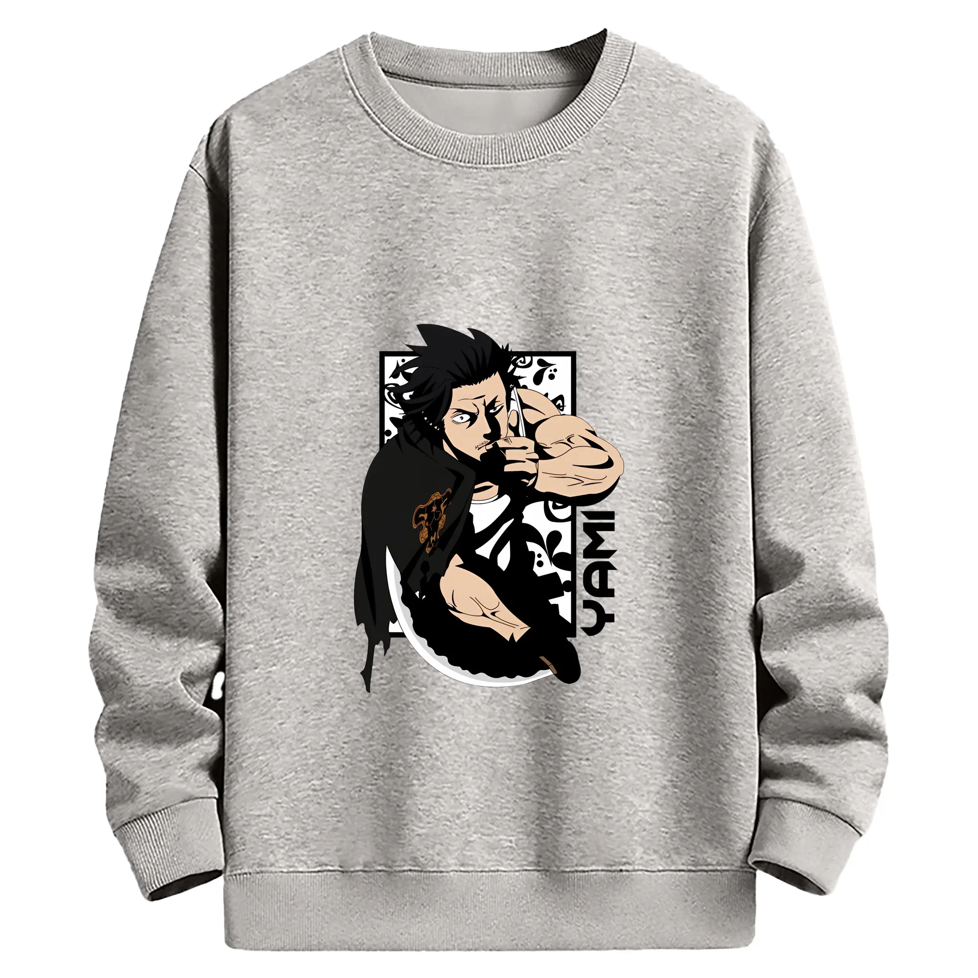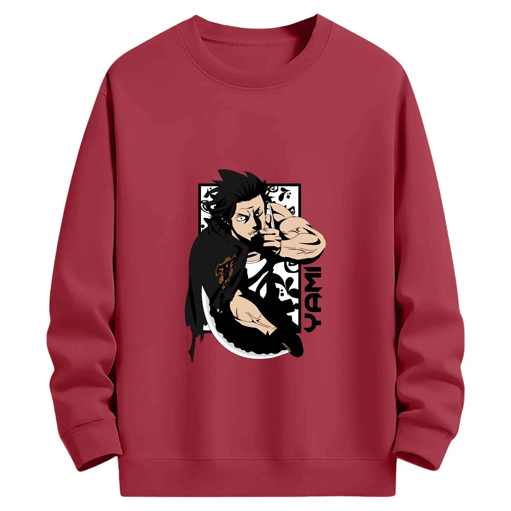 ブラッククローバー グッズ ヤミ・スケヒロ - 薄手 クルーネック スウェット 裏毛260g · ポリエステル 春秋向け カジュアル 男女兼用 · トレーナー デイリー スポーツ 散歩に最適