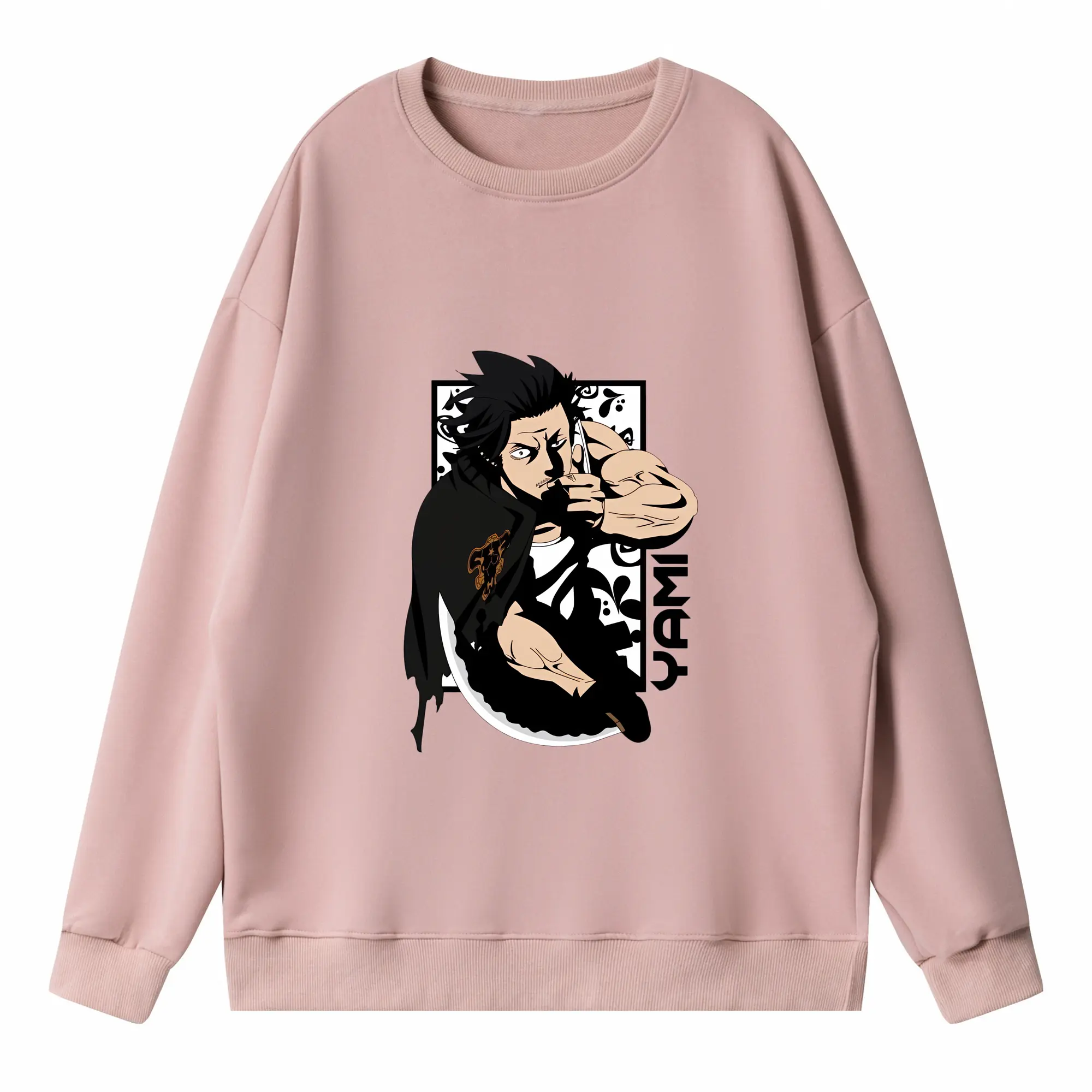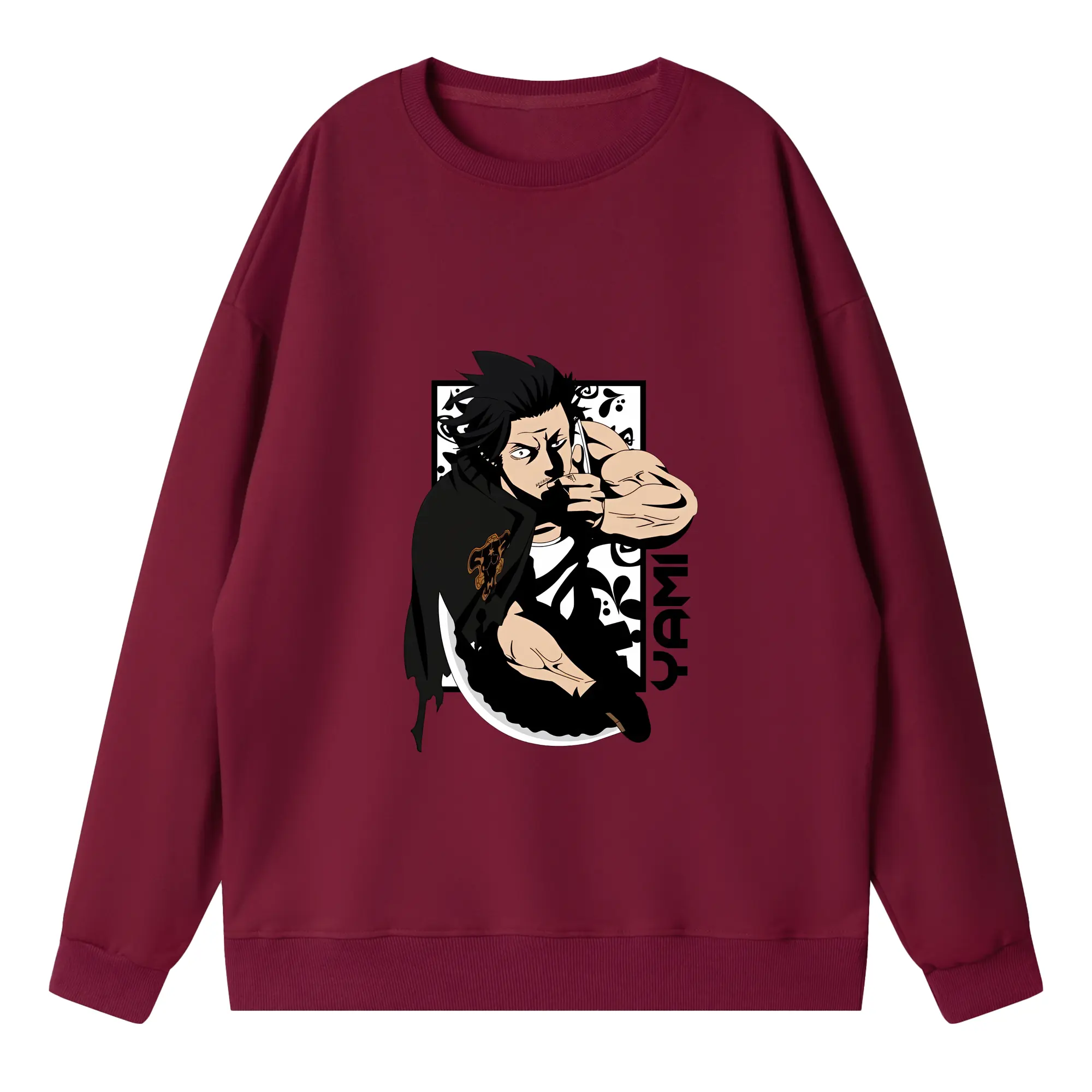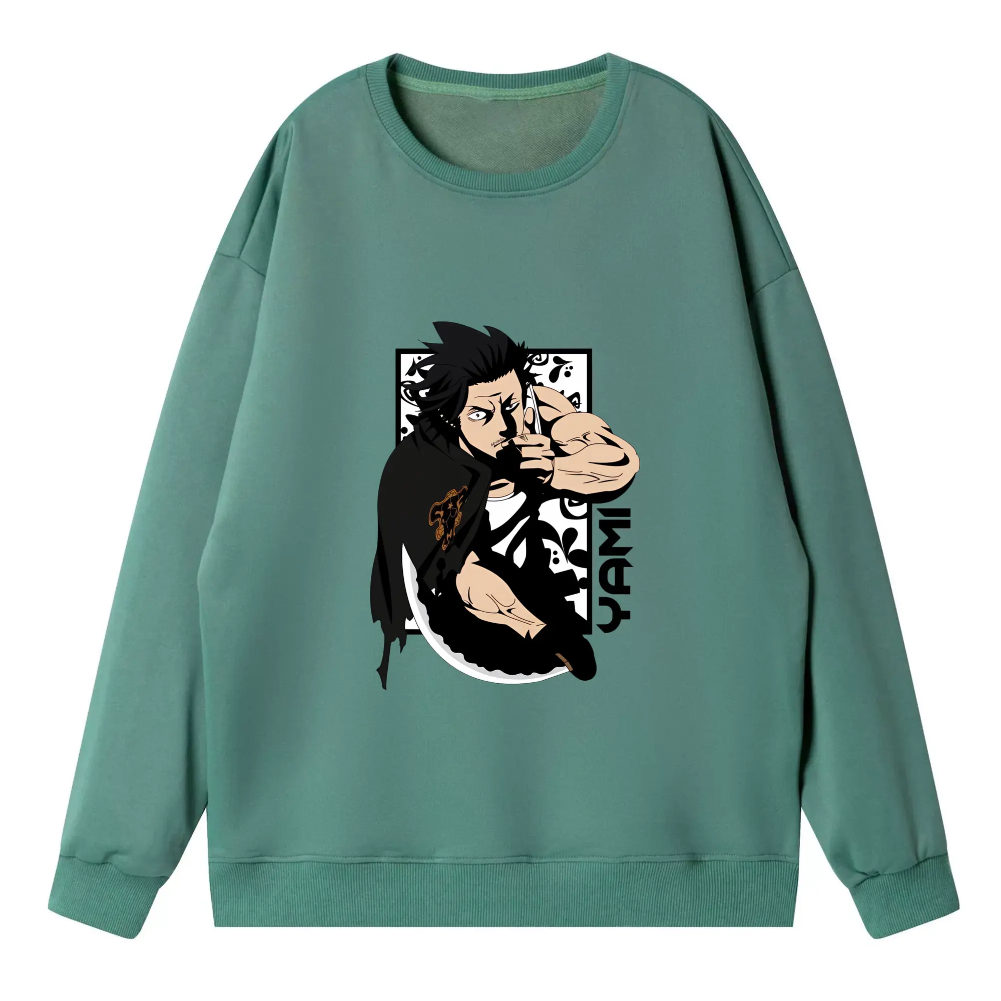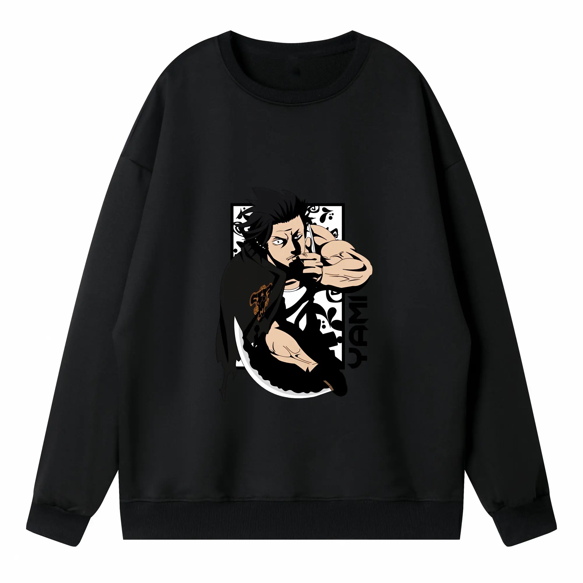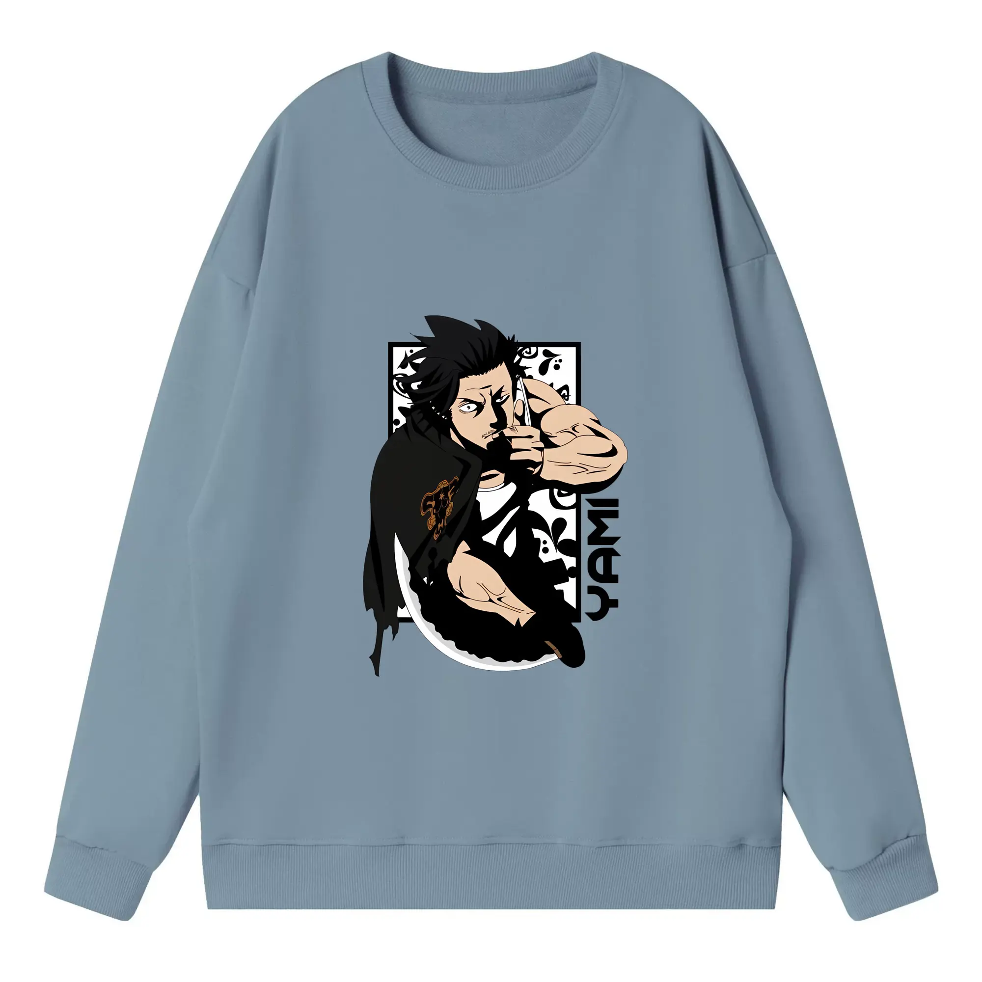 ブラッククローバー グッズ ヤミ・スケヒロ - 高品質 クルーネック スウェット ・ コットン59% ポリエステル41% ・ ユニセックス 長袖 トレーナー ・ カジュアル デイリー スポーツ 散歩用