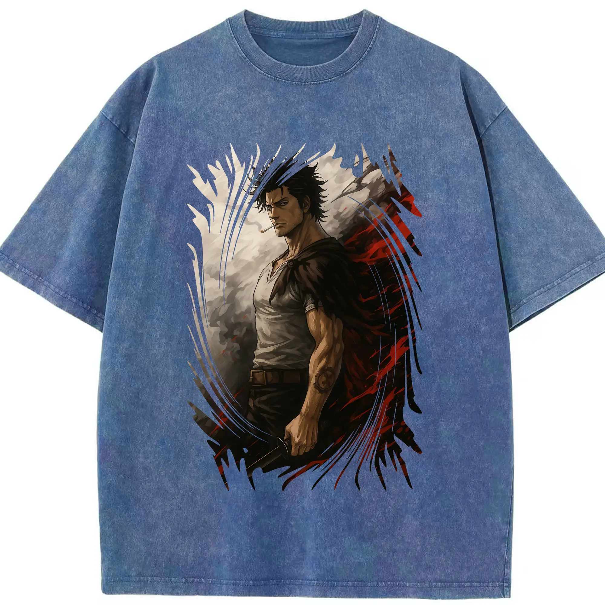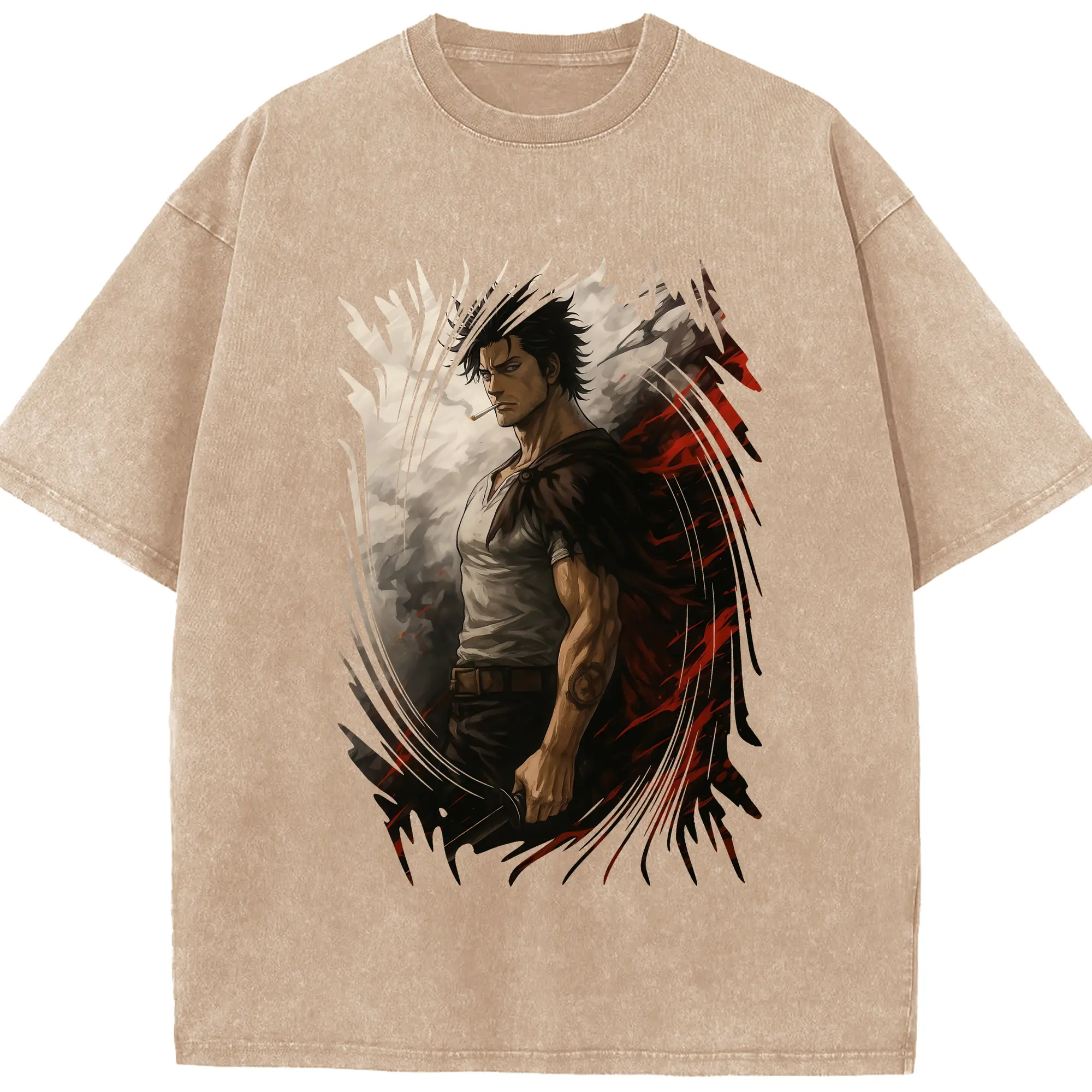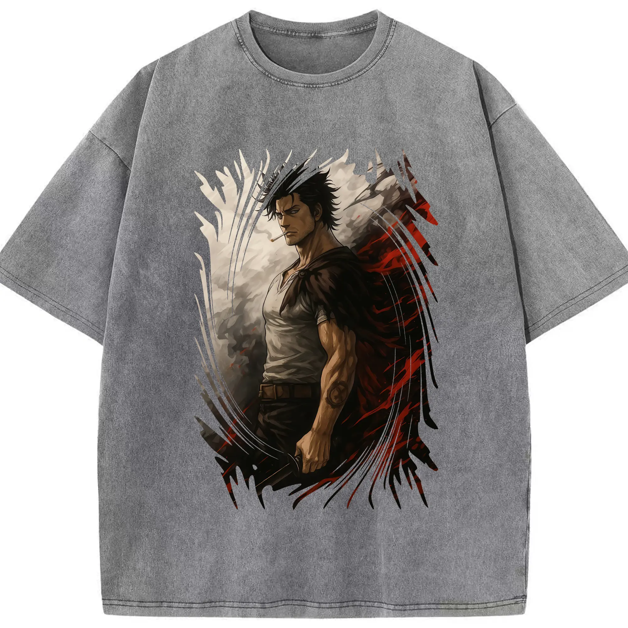 ブラッククローバー グッズ ヤミ・スケヒロ - 綿100% ヴィンテージ風 半袖Tシャツ ・ 背面プリント ・ 柔らか肌触り ・ 通気性 快適 ・ スポーツ カジュアル 外出用