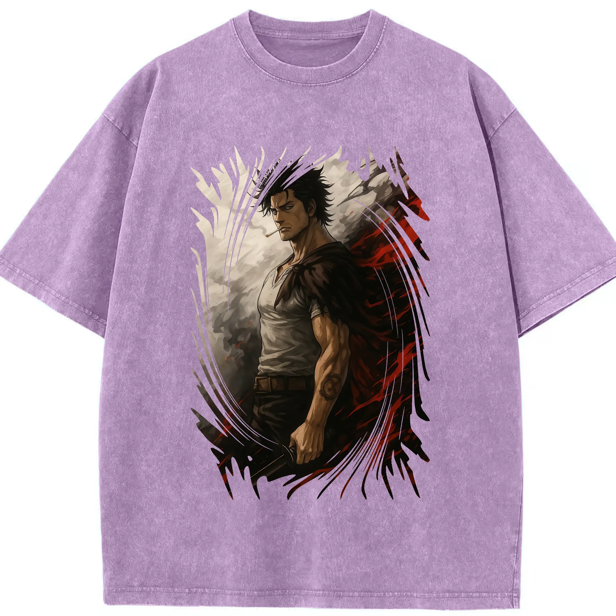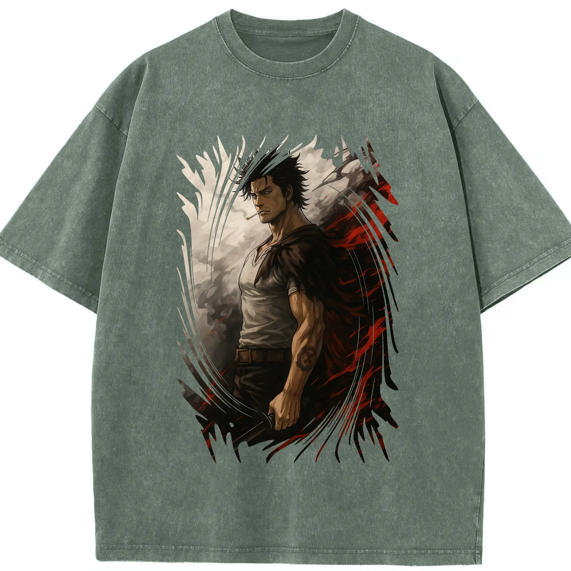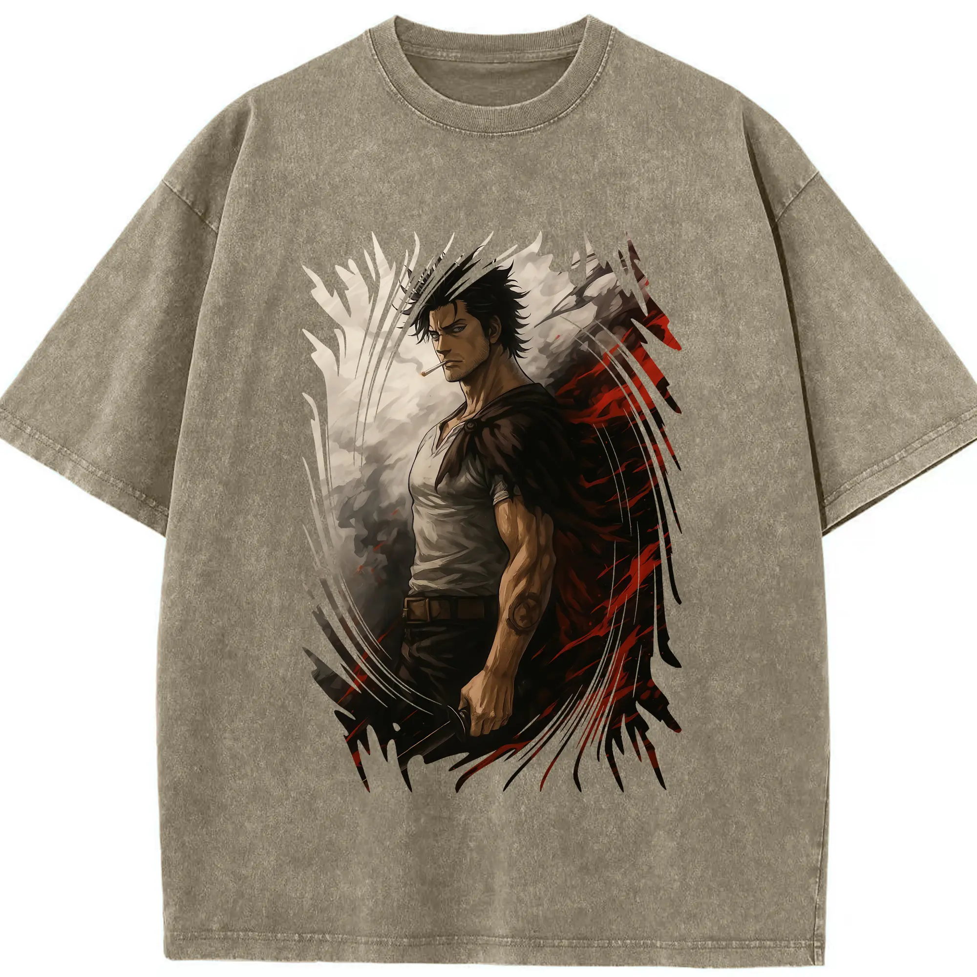 ブラッククローバー グッズ ヤミ・スケヒロ - 綿100% ヴィンテージ風 半袖Tシャツ ・ 背面プリント ・ 柔らか肌触り ・ 通気性 快適 ・ スポーツ カジュアル 外出用