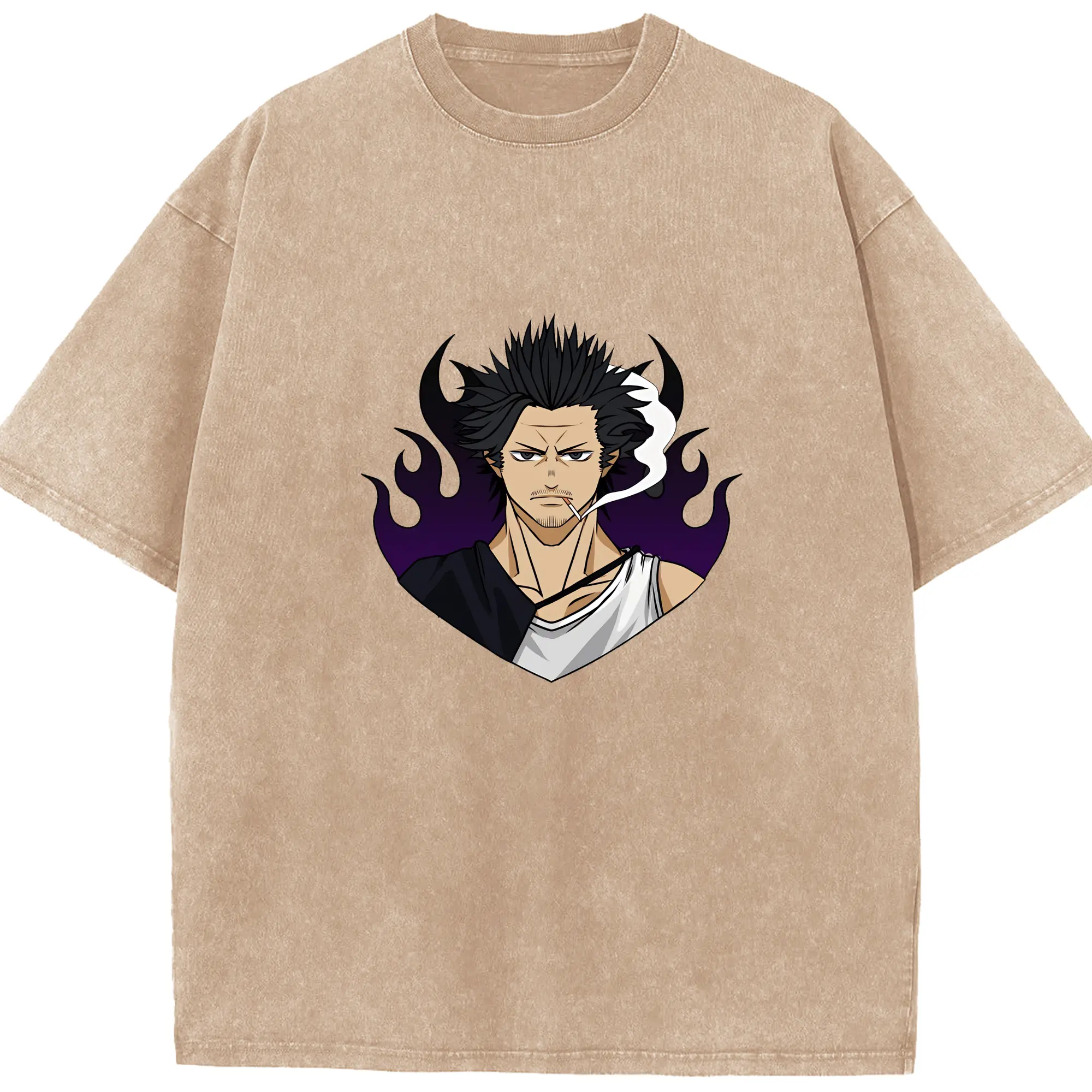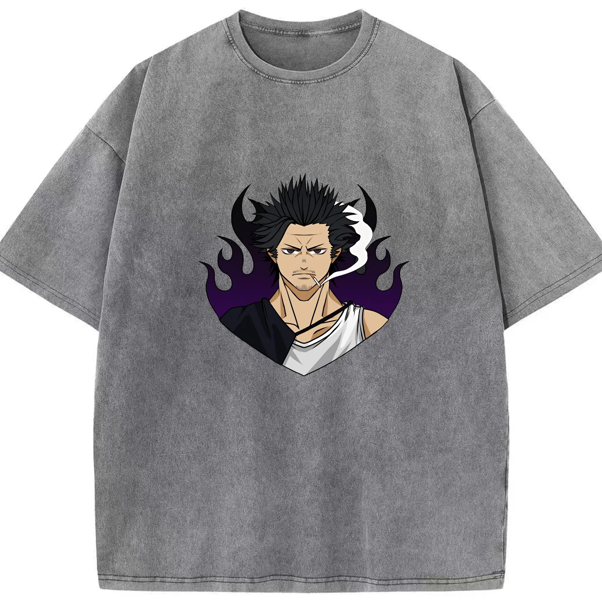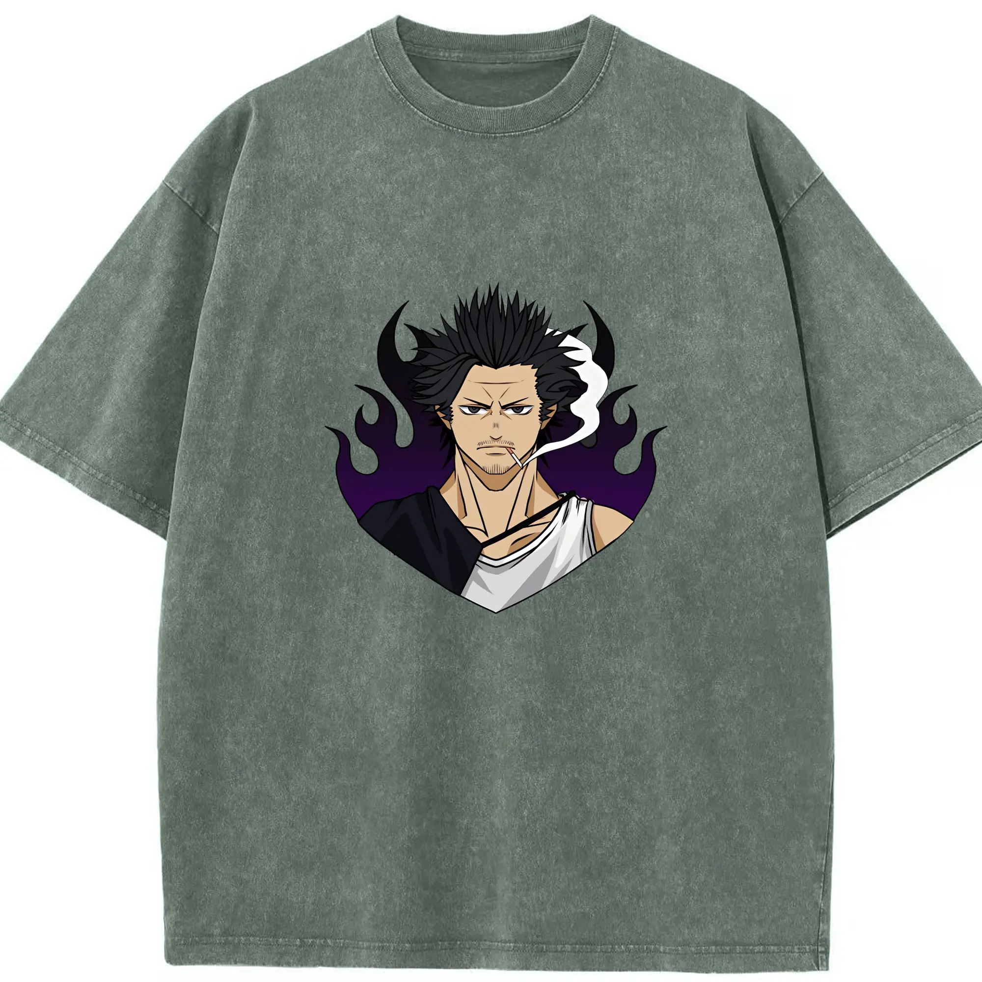 ブラッククローバー グッズ ヤミ・スケヒロ - 綿100% ヴィンテージ風 半袖Tシャツ ・ 背面プリント ・ 柔らか肌触り ・ 通気性 快適 ・ スポーツ カジュアル 外出用