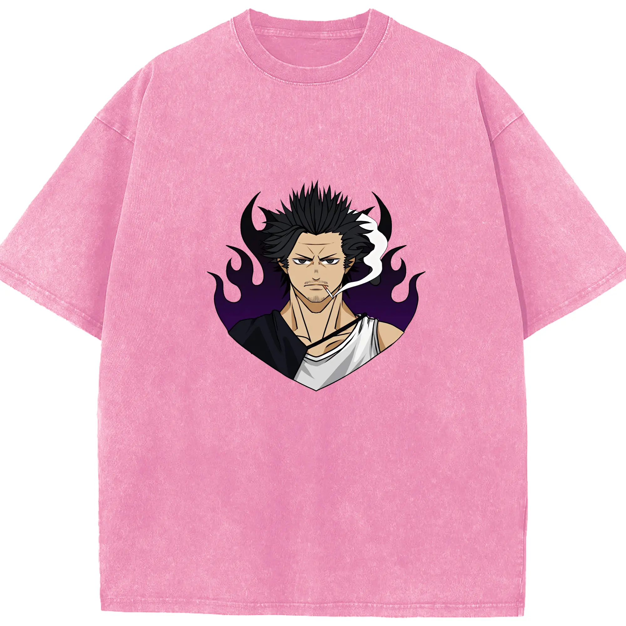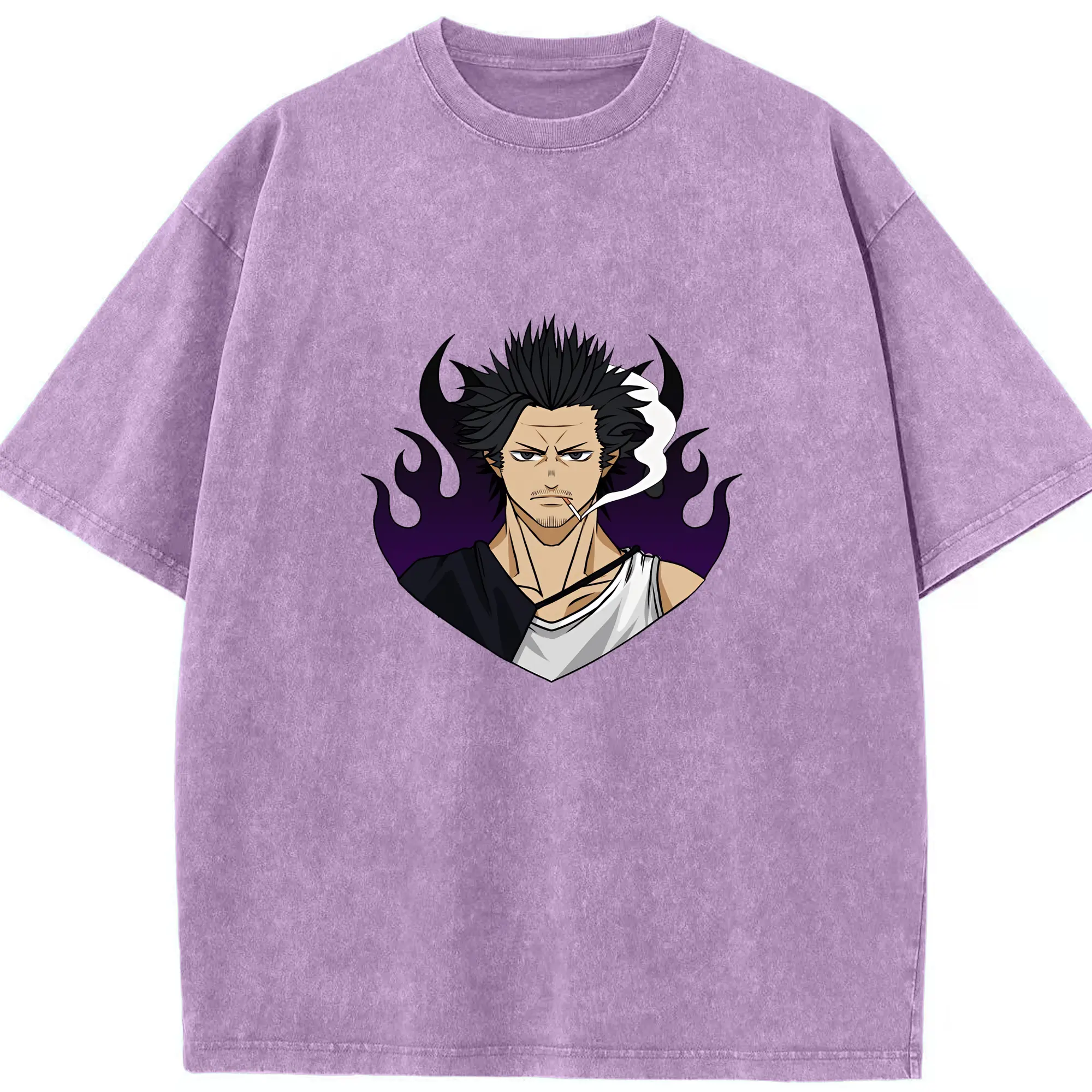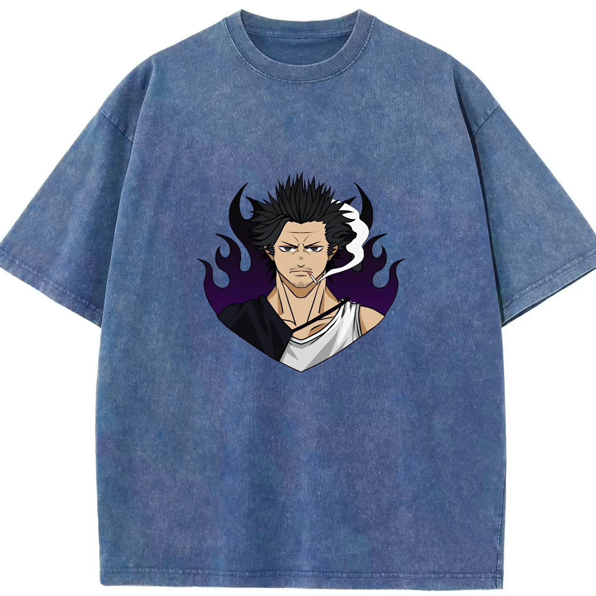 ブラッククローバー グッズ ヤミ・スケヒロ - 綿100% ヴィンテージ風 半袖Tシャツ ・ 背面プリント ・ 柔らか肌触り ・ 通気性 快適 ・ スポーツ カジュアル 外出用