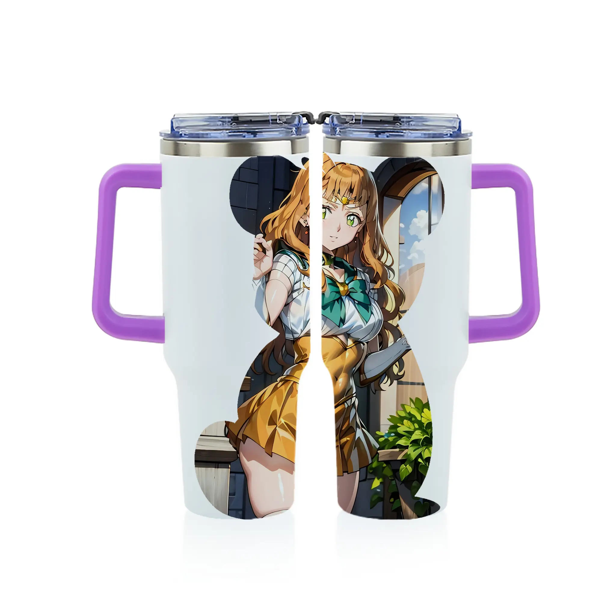 ブラッククローバー グッズ ミモザ・ヴァーミリオン - 1200mL フルプリント車用タンブラー ・ 304ステンレス 内側 ・ 201ステンレス 外側 ・ 保温 保冷 ・ 通勤 ドライブ アウトドア用
