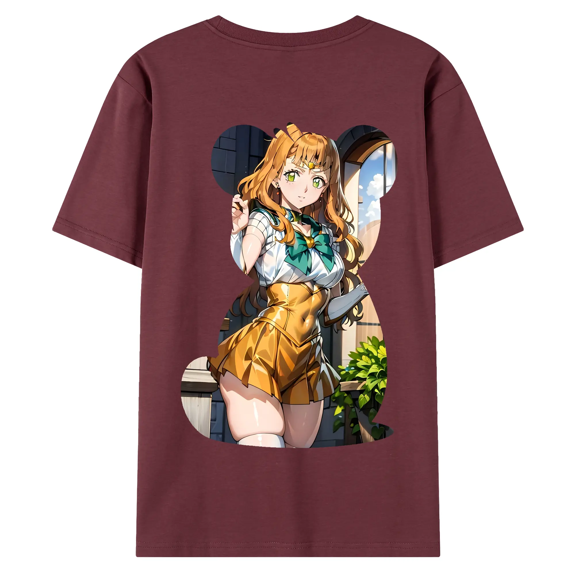 ブラッククローバー グッズ ミモザ・ヴァーミリオン - 綿100% ヴィンテージ風 半袖Tシャツ ・ 背面プリント ・ 柔らか肌触り ・ 通気性 快適 ・ スポーツ カジュアル 外出用