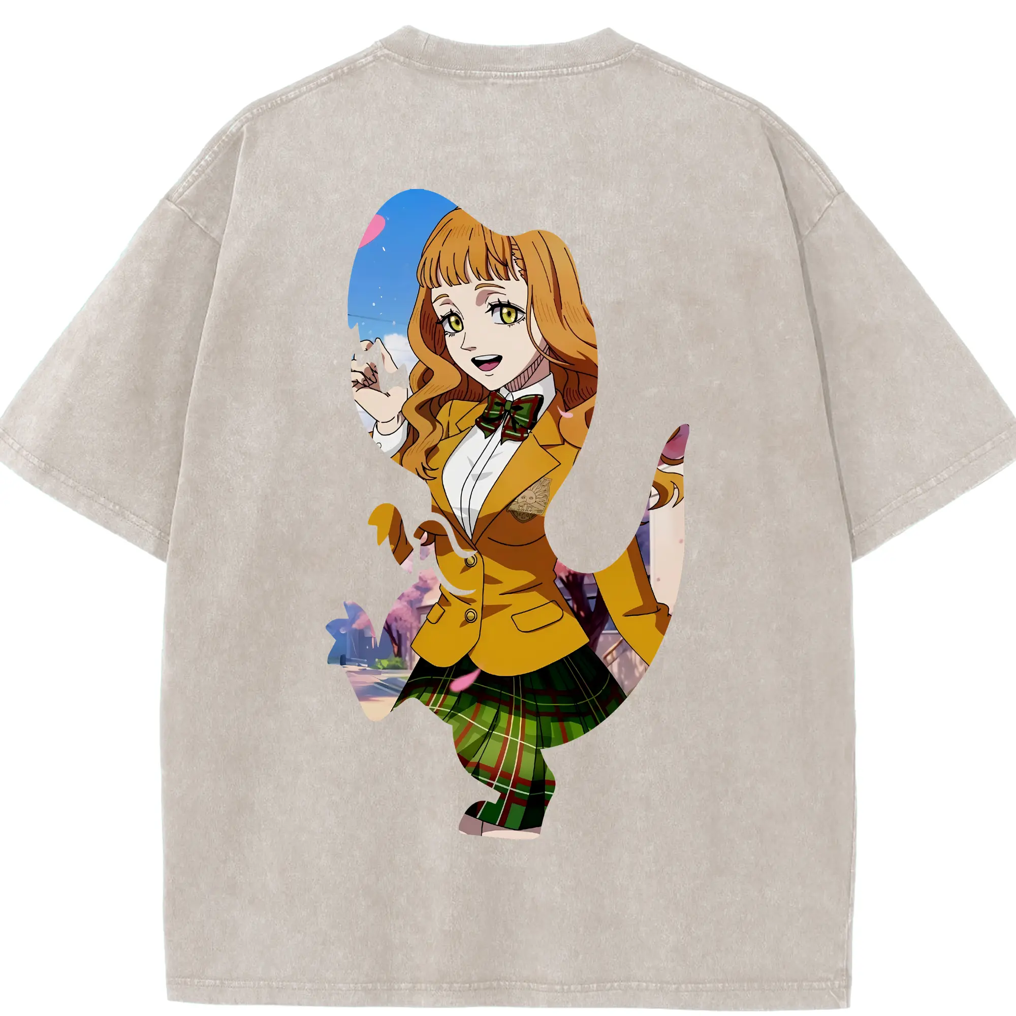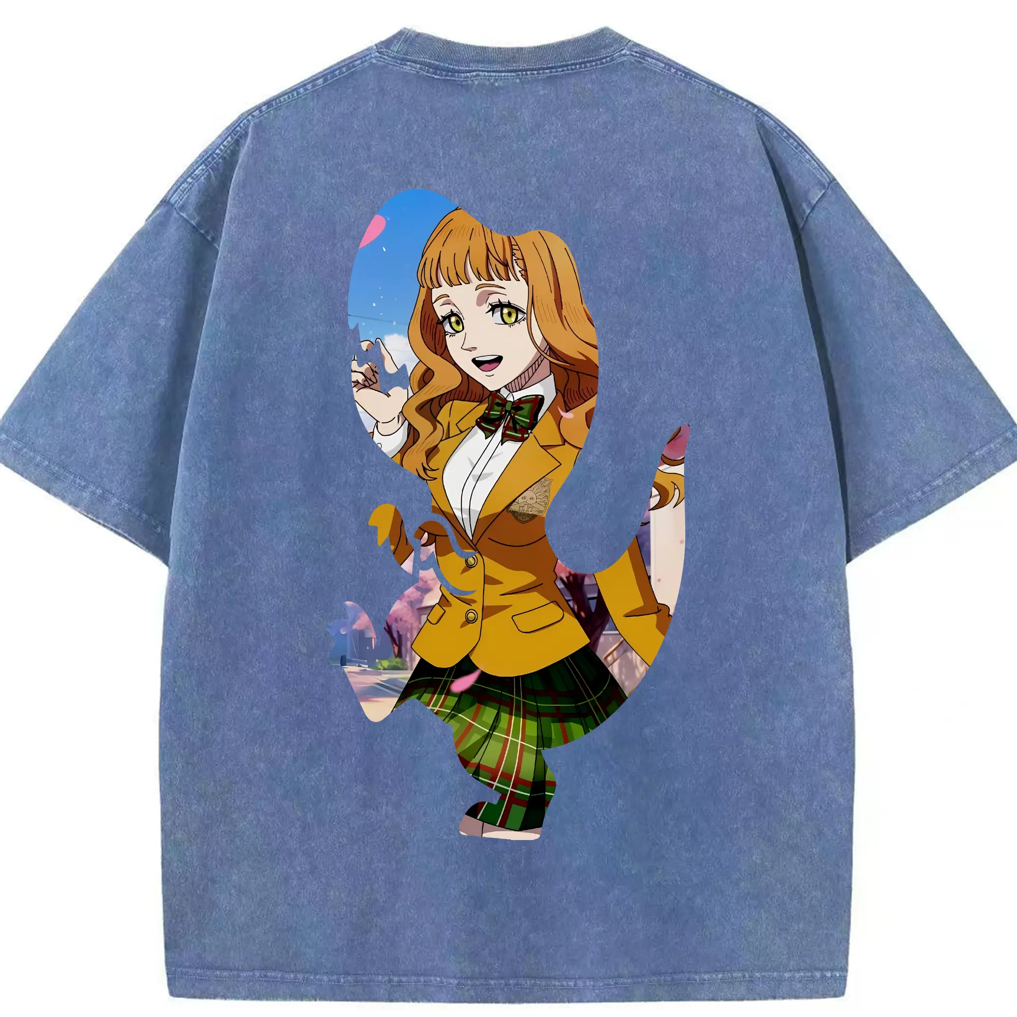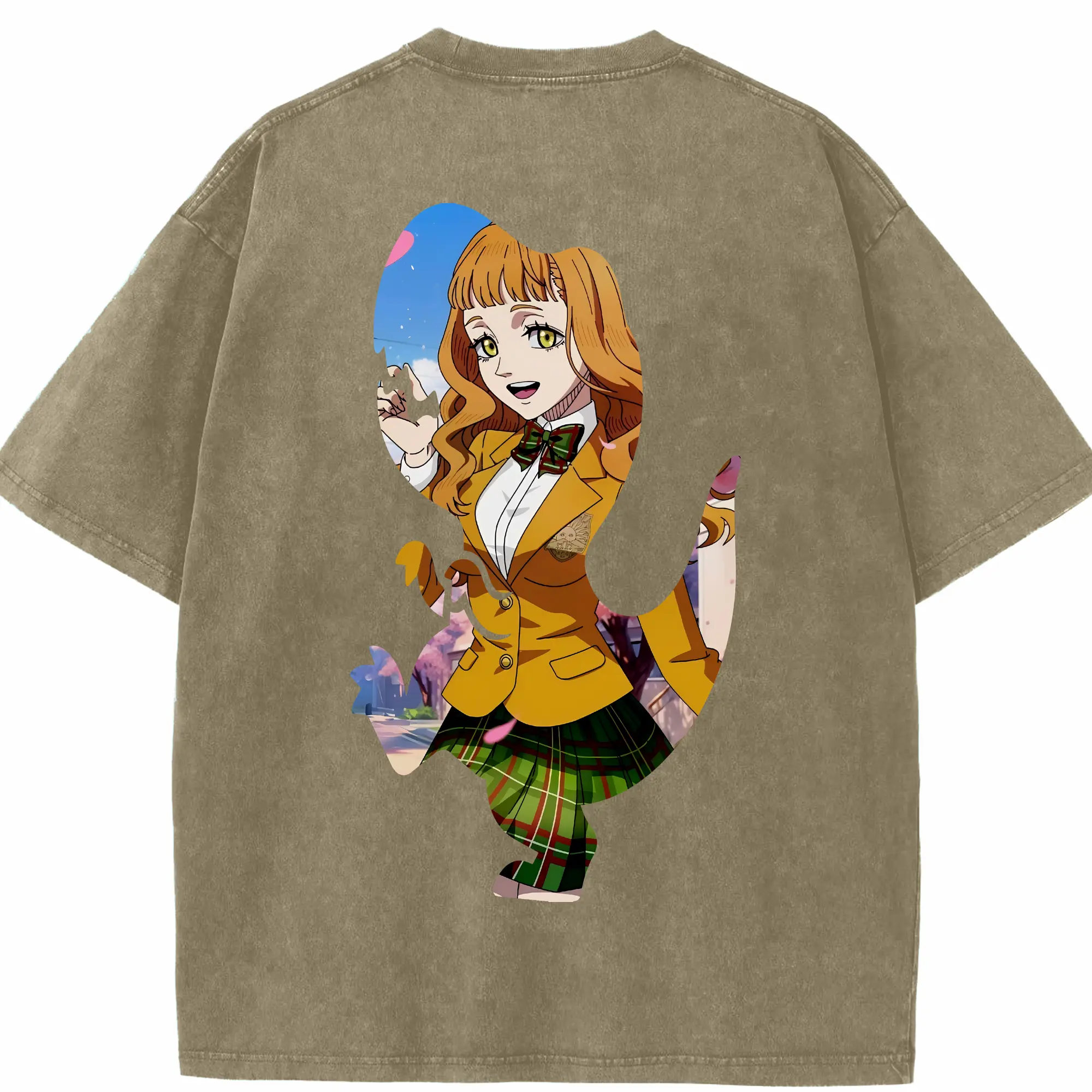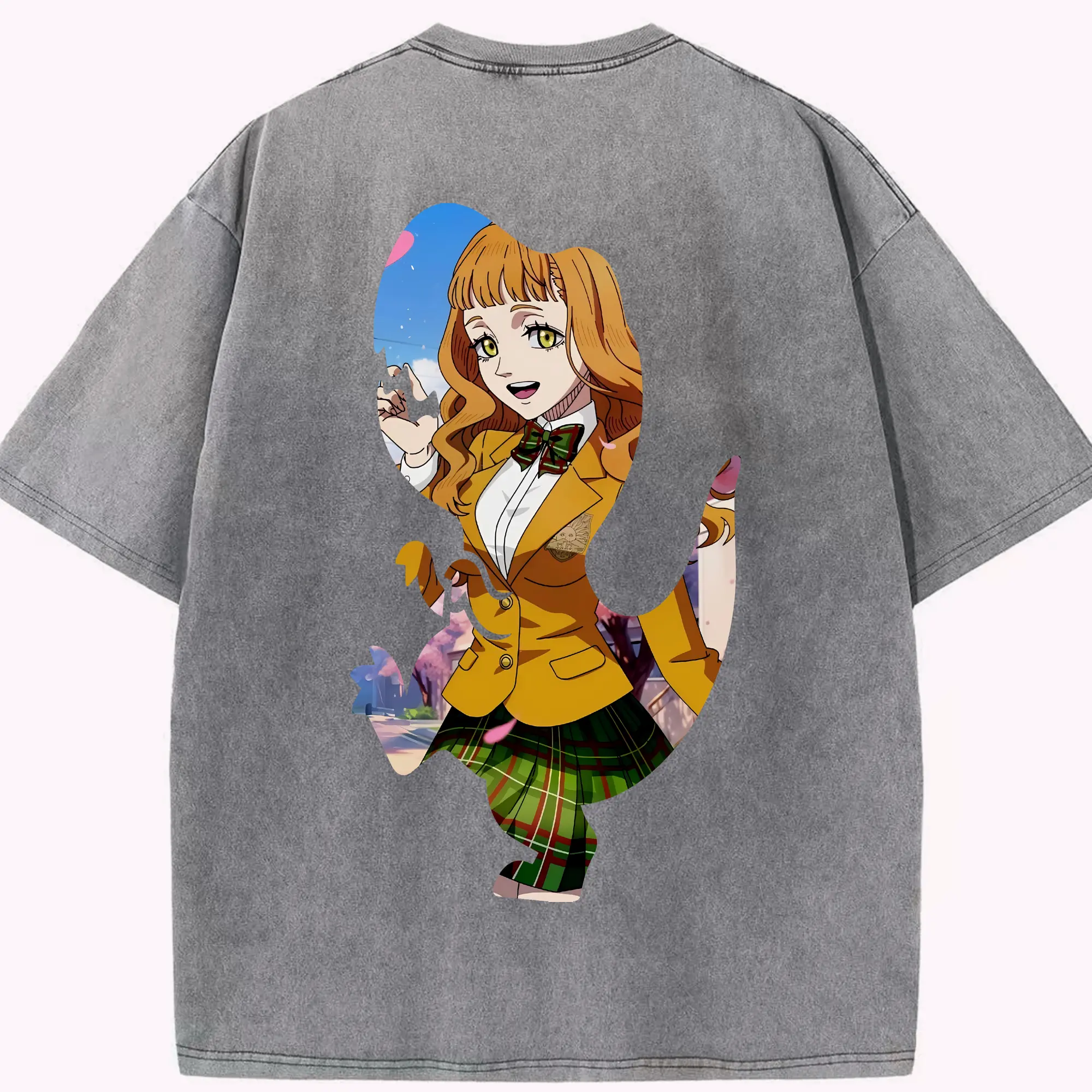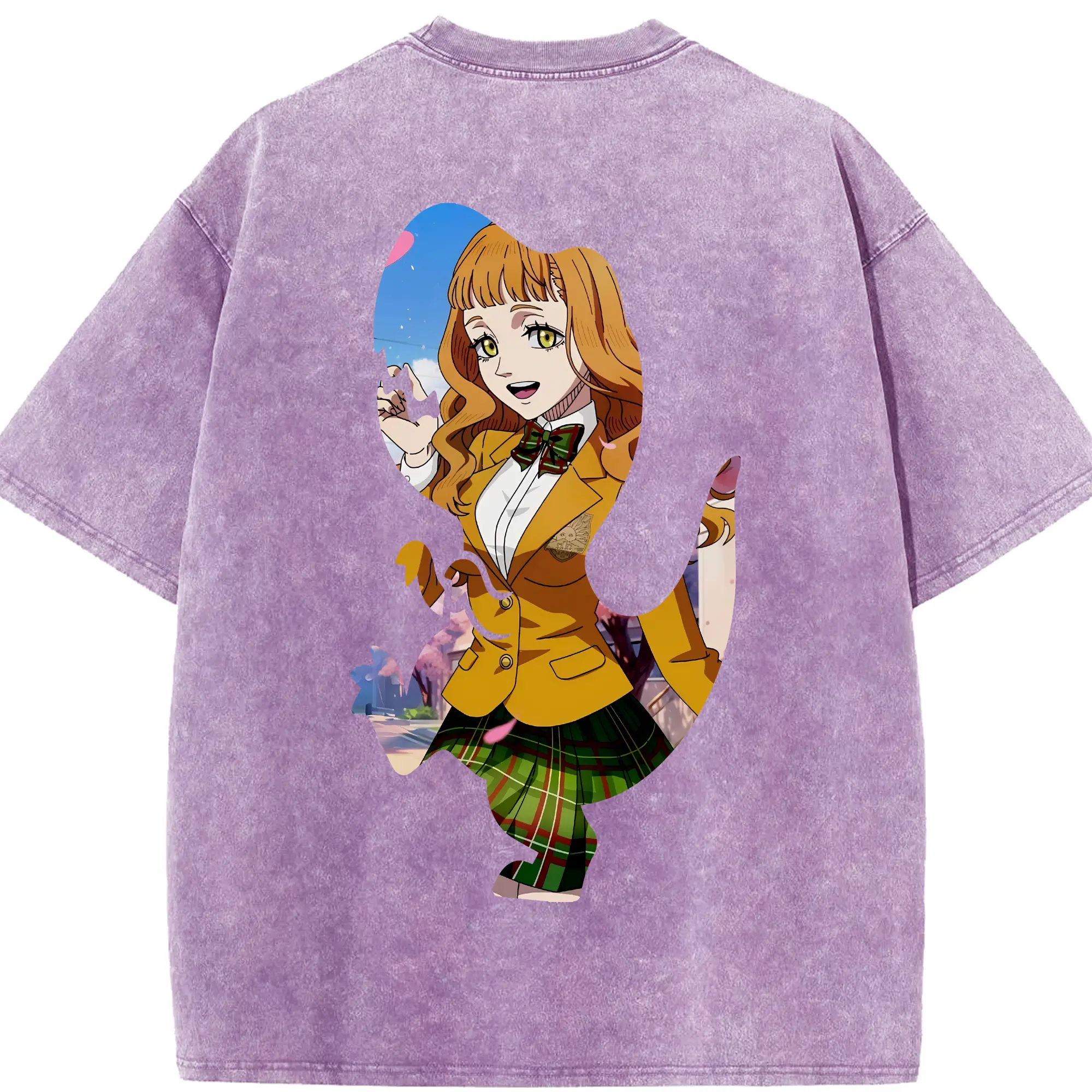 ブラッククローバー グッズ ミモザ・ヴァーミリオン - 綿100% ヴィンテージ風 半袖Tシャツ ・ フロントプリント ・ 柔らか肌触り ・ 通気性 快適 ・ スポーツ カジュアル 外出用