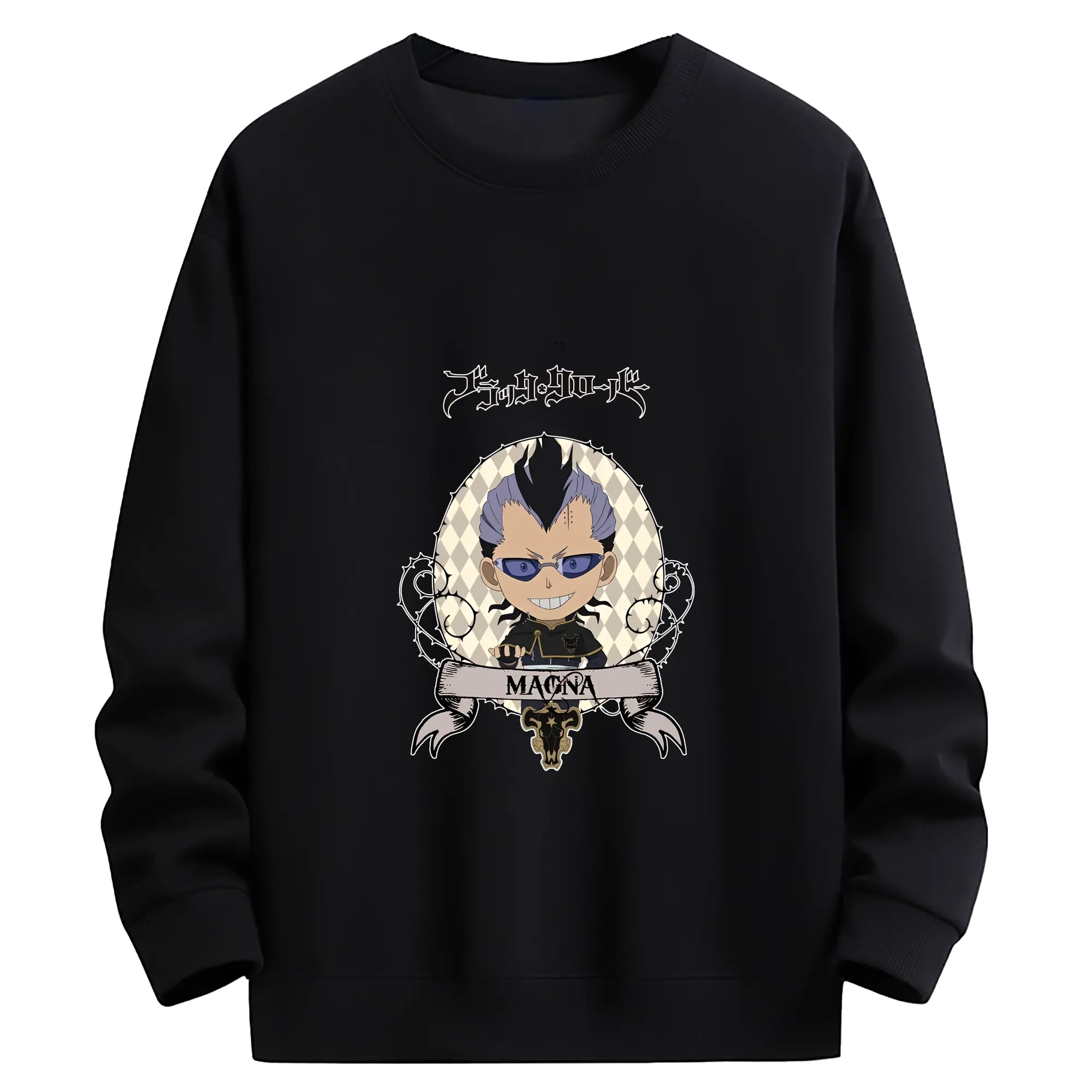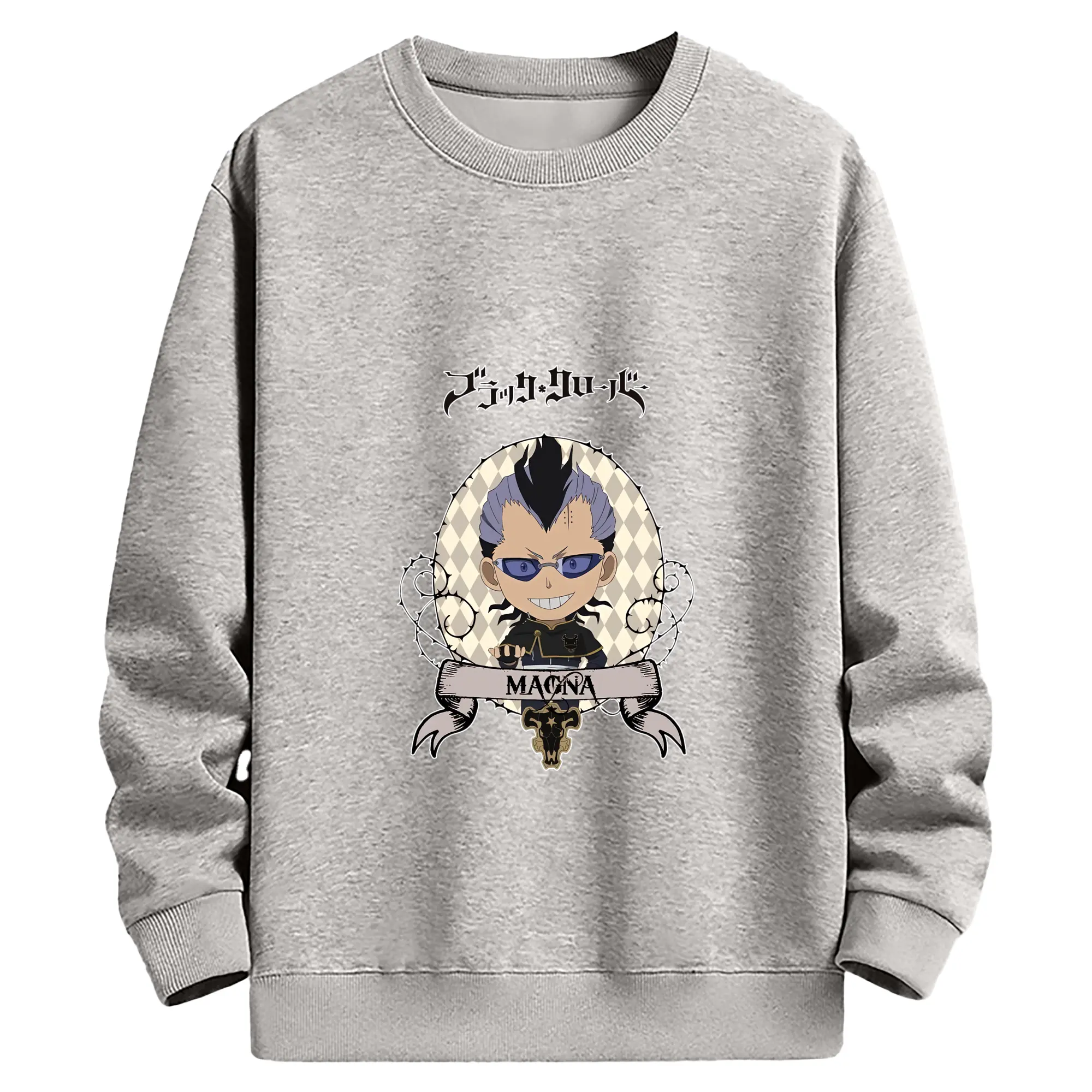 ブラッククローバー グッズ マグナ・スウィング - 高品質 クルーネック スウェット ・ コットン59% ポリエステル41% ・ ユニセックス 長袖 トレーナー ・ カジュアル デイリー スポーツ 散歩用