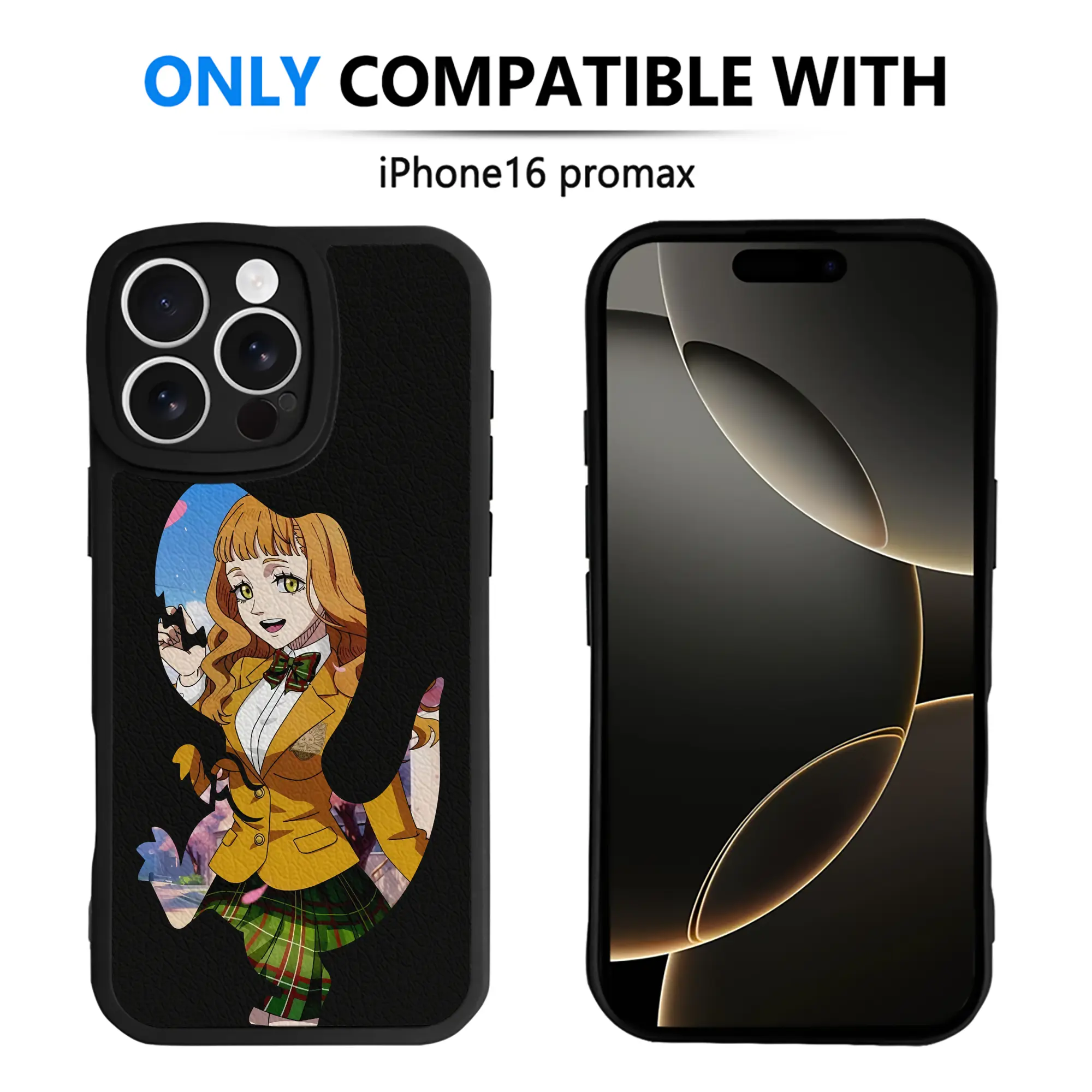 ブラッククローバー グッズ ミモザ・ヴァーミリオン - IPhone 16シリーズ対応 ・ シリコンスマホケース ・ レザー調 ・ 高精度フィット ・ 耐衝撃 ・ ワイヤレス充電対応 ・ 精密カット